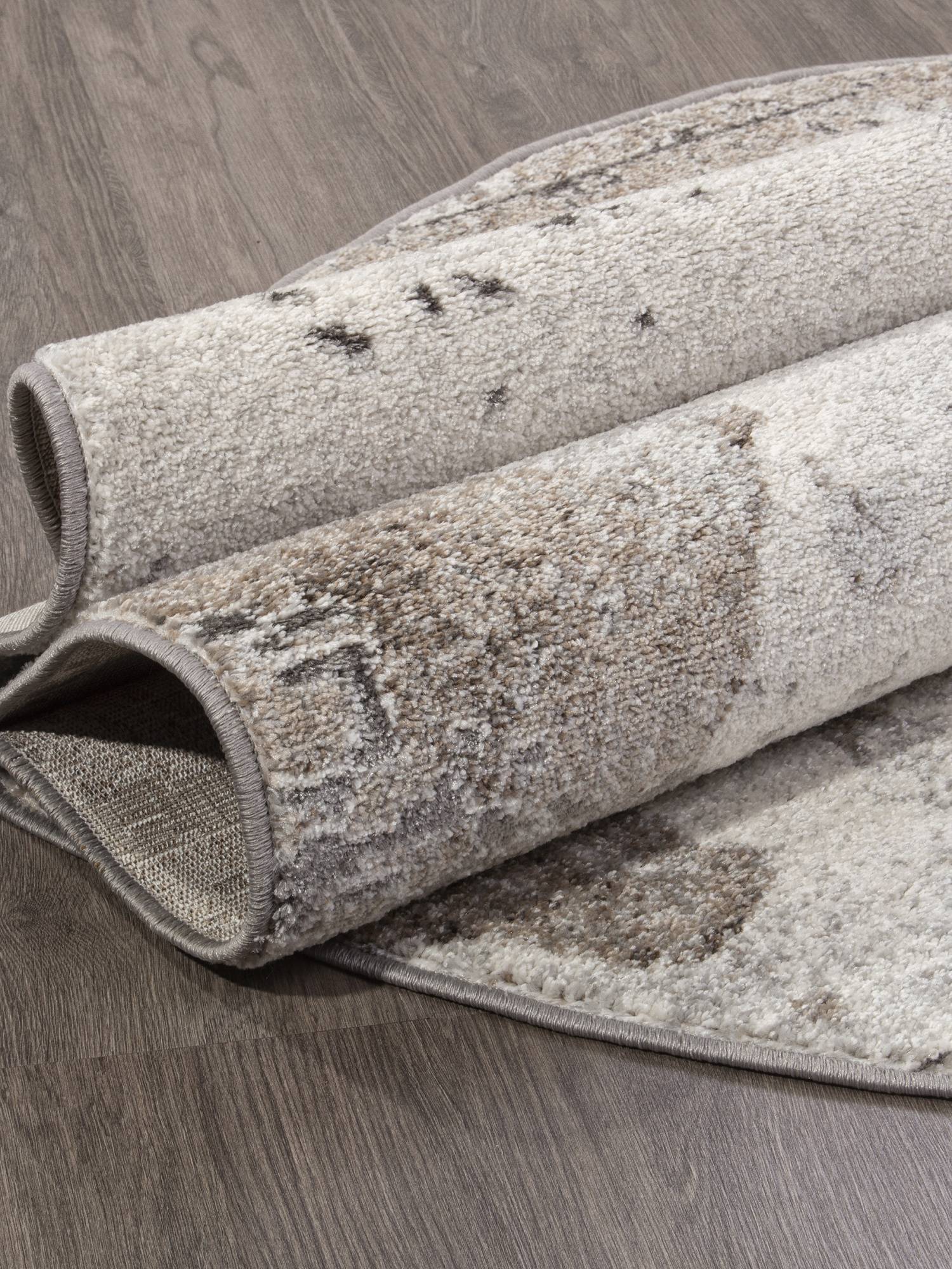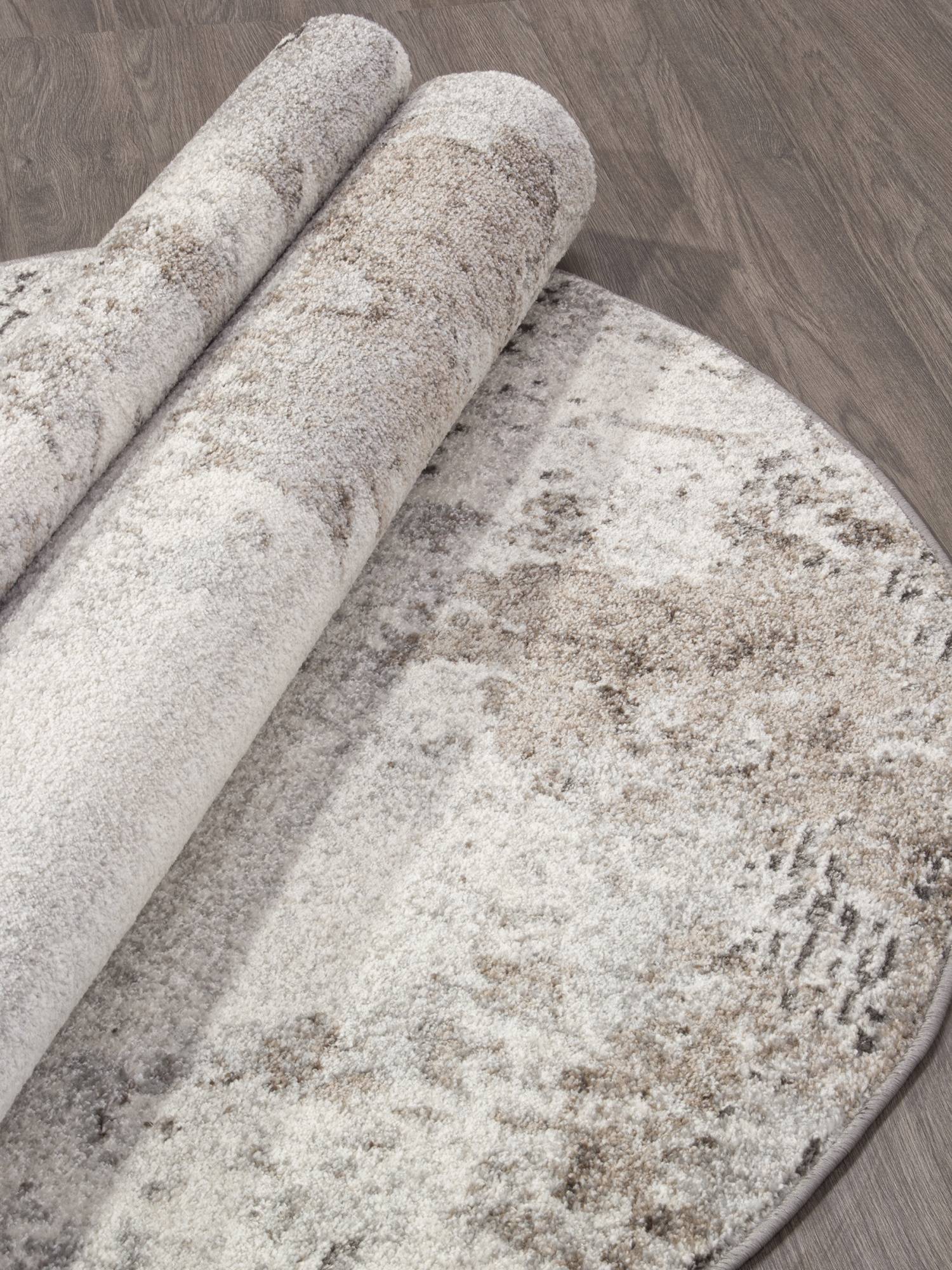 Серо-кремовая расцветка, модная овальная форма и высокое качество изготовления позволяют этому ковру стать хорошим украшением для гостиной или зала.