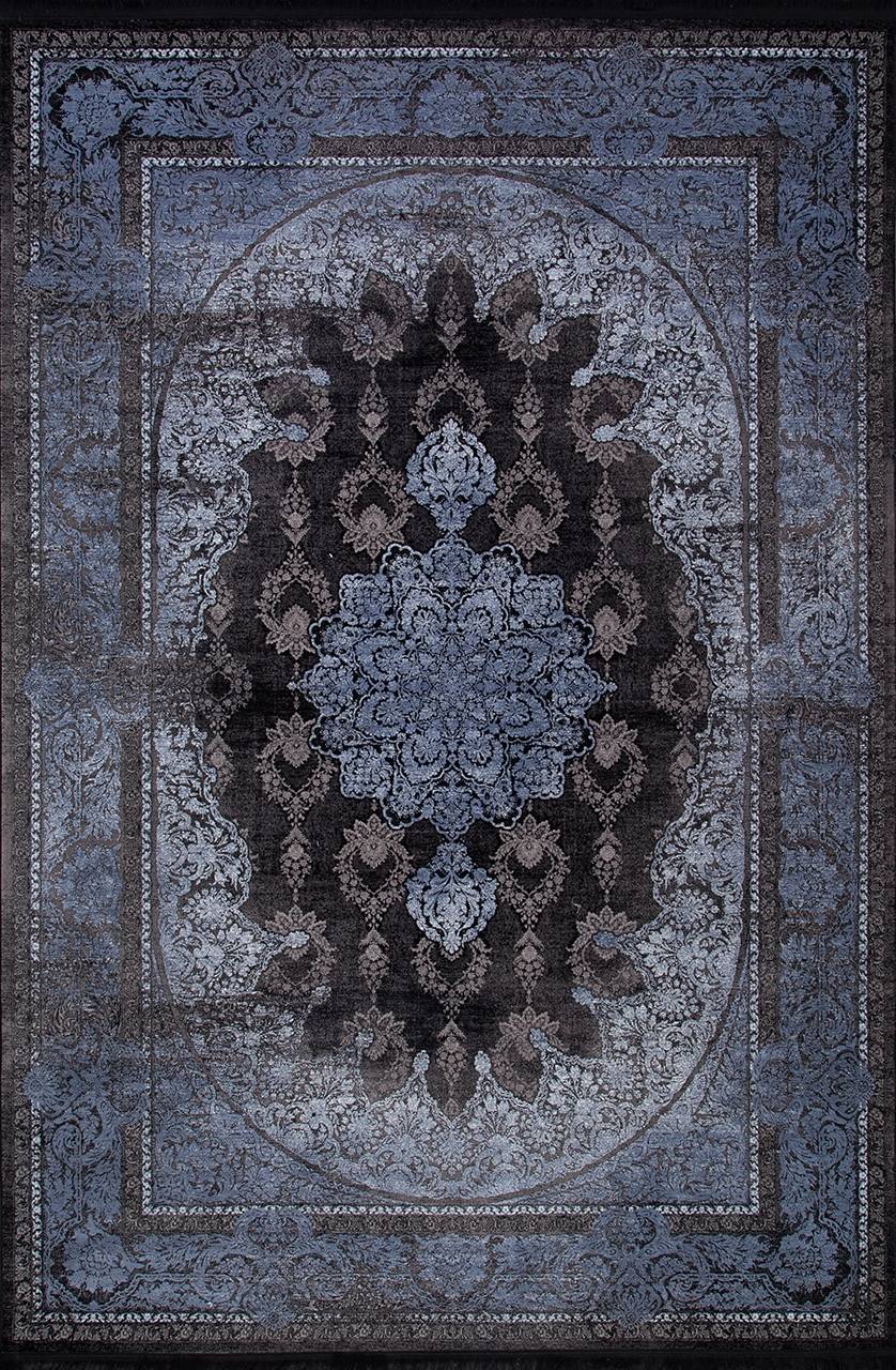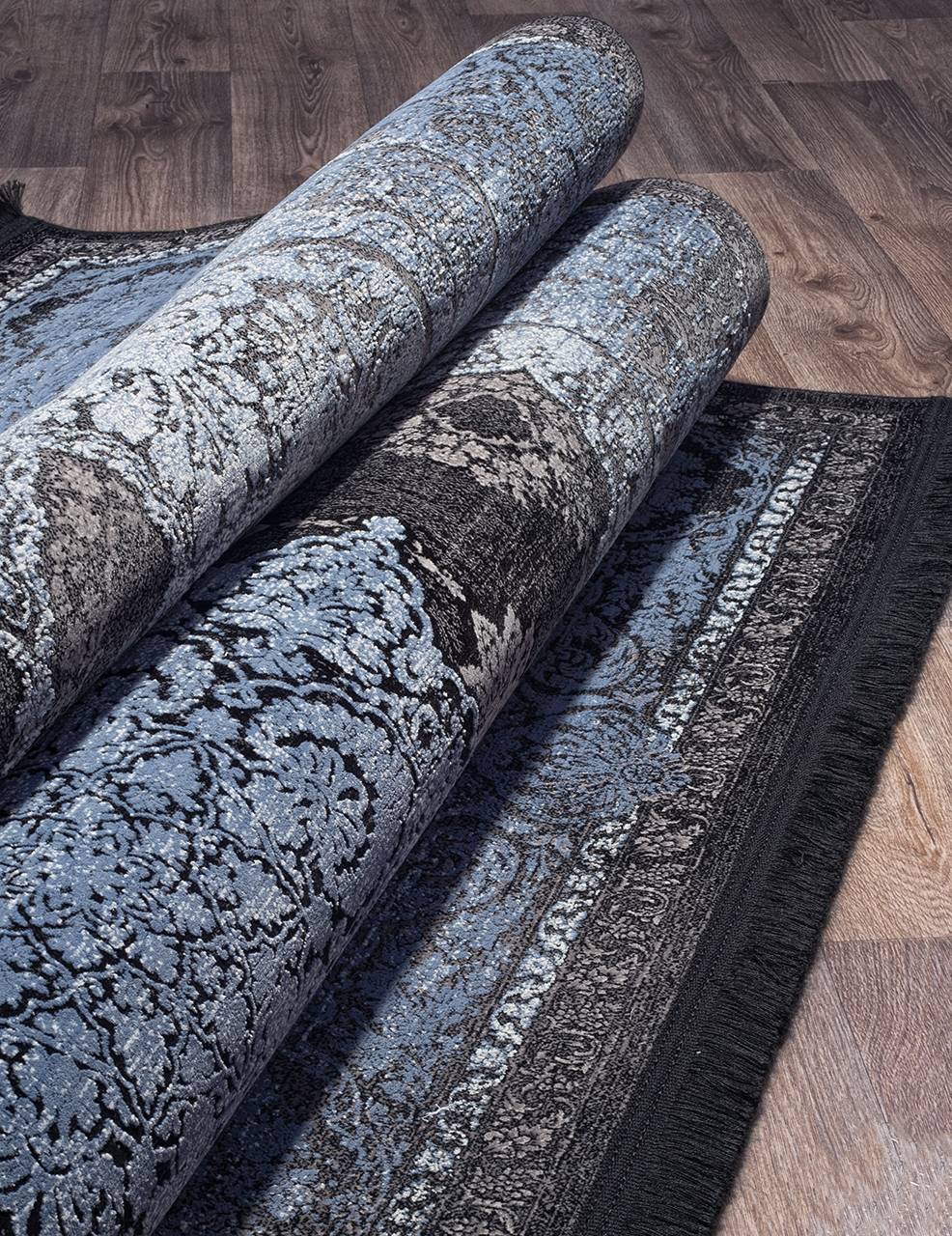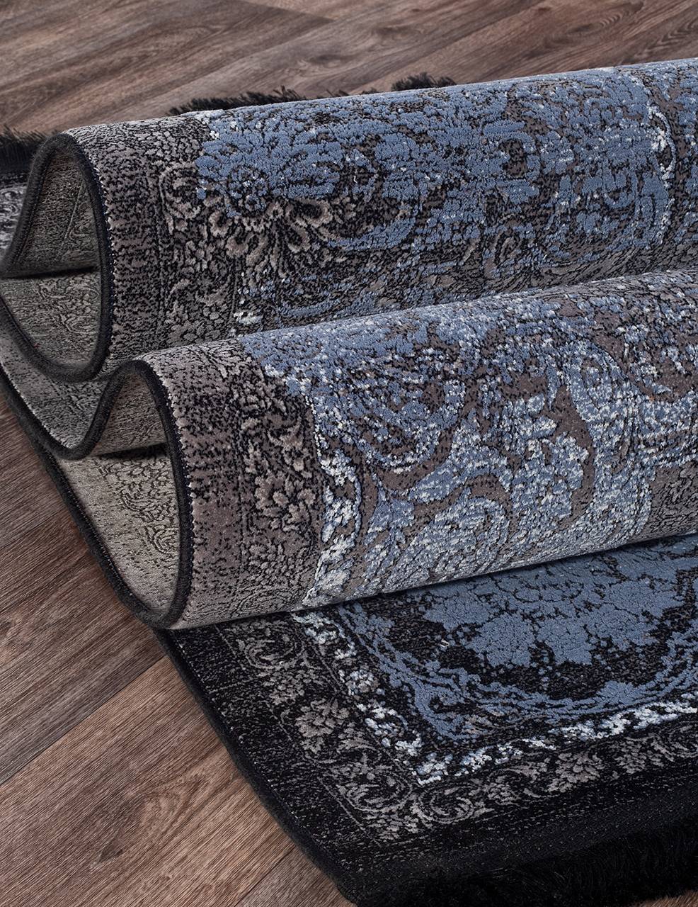 Красивое сочетание синего и черного цветов, а также оригинального детализированного орнамента позволяют этому ковру стать модным и благородным украшением для любого интерьера.