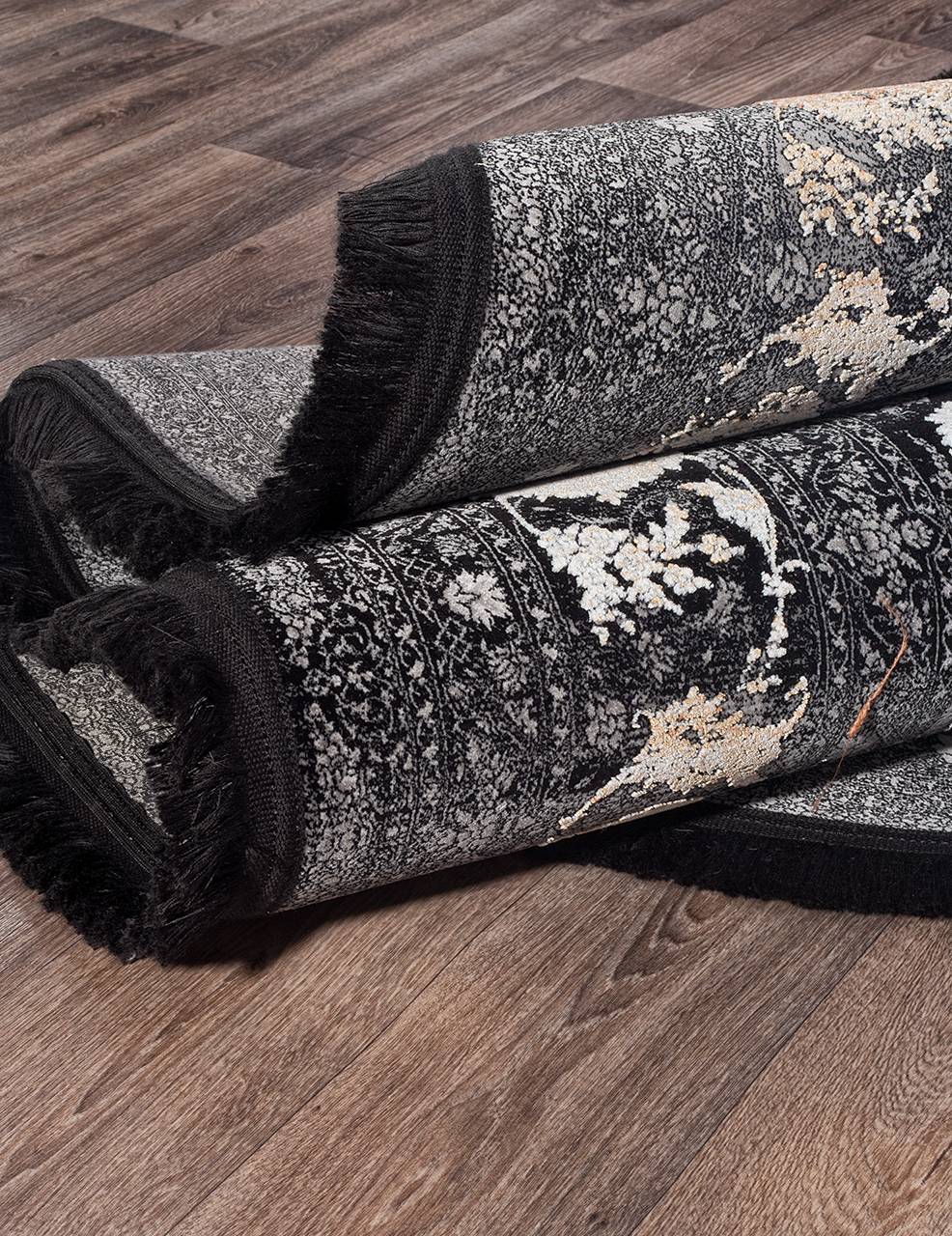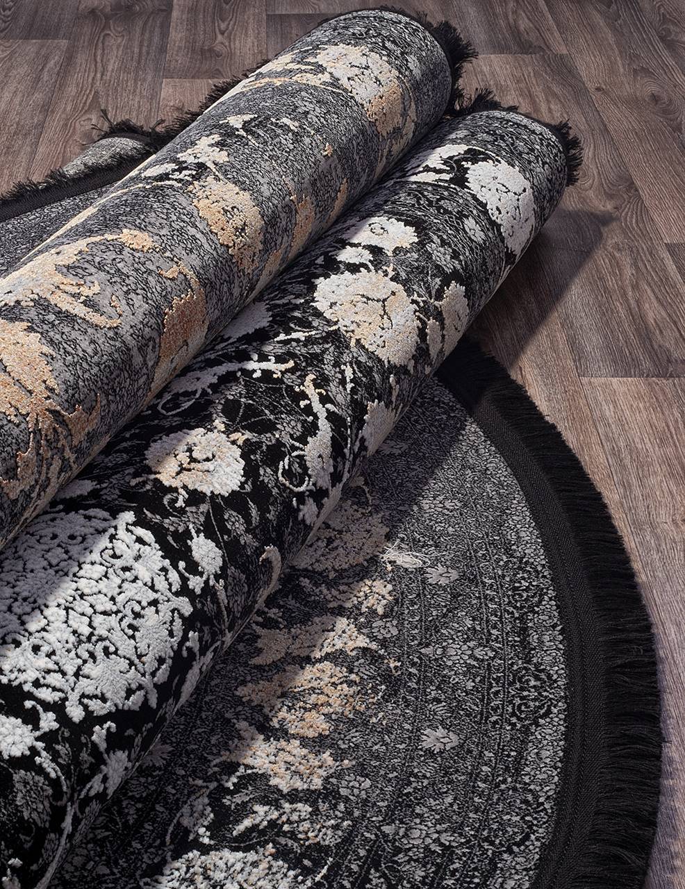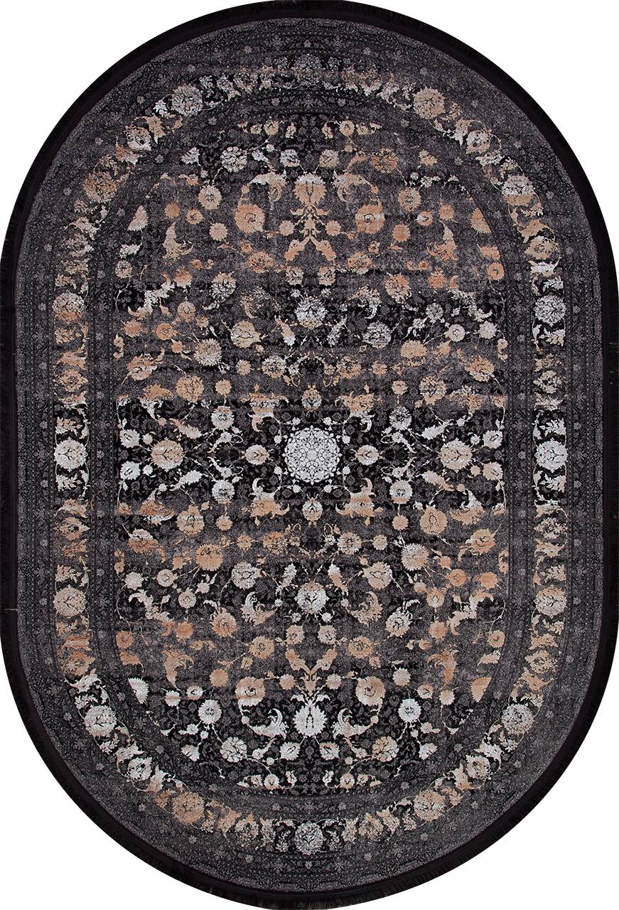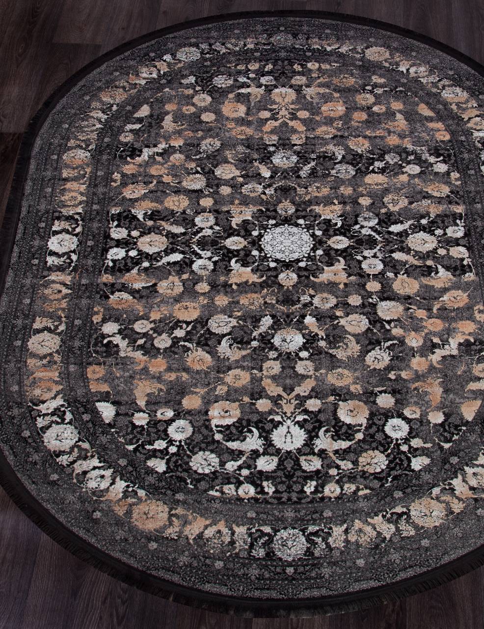 Стильный овальный ковер с детализированным рисунком. Благодаря тому, что он имеет невысокий ворс - 5 мм. и оформлен в темной цветовой гамме, ковер отлично подойдет для зала или гостиной.