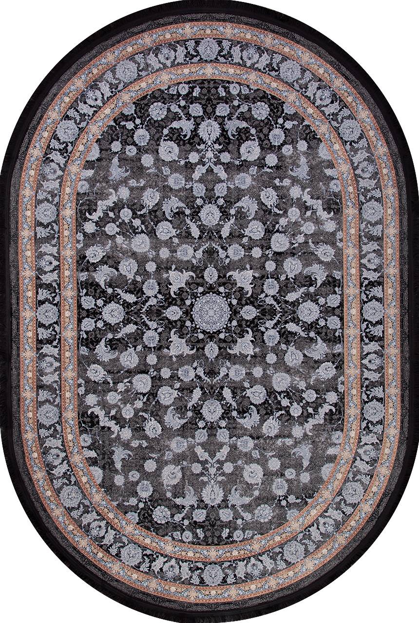 Иранский овальный ковер из коллекции MUSKAT в серо-черной расцветке. Ковровое покрытие из бамбуковог...