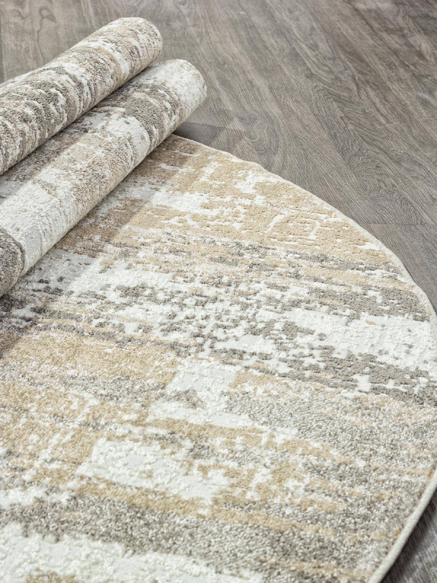Интересный ковер в оригинальной расцветке бежевого, серого и кремового цвета. Модный дизайн и высоко...