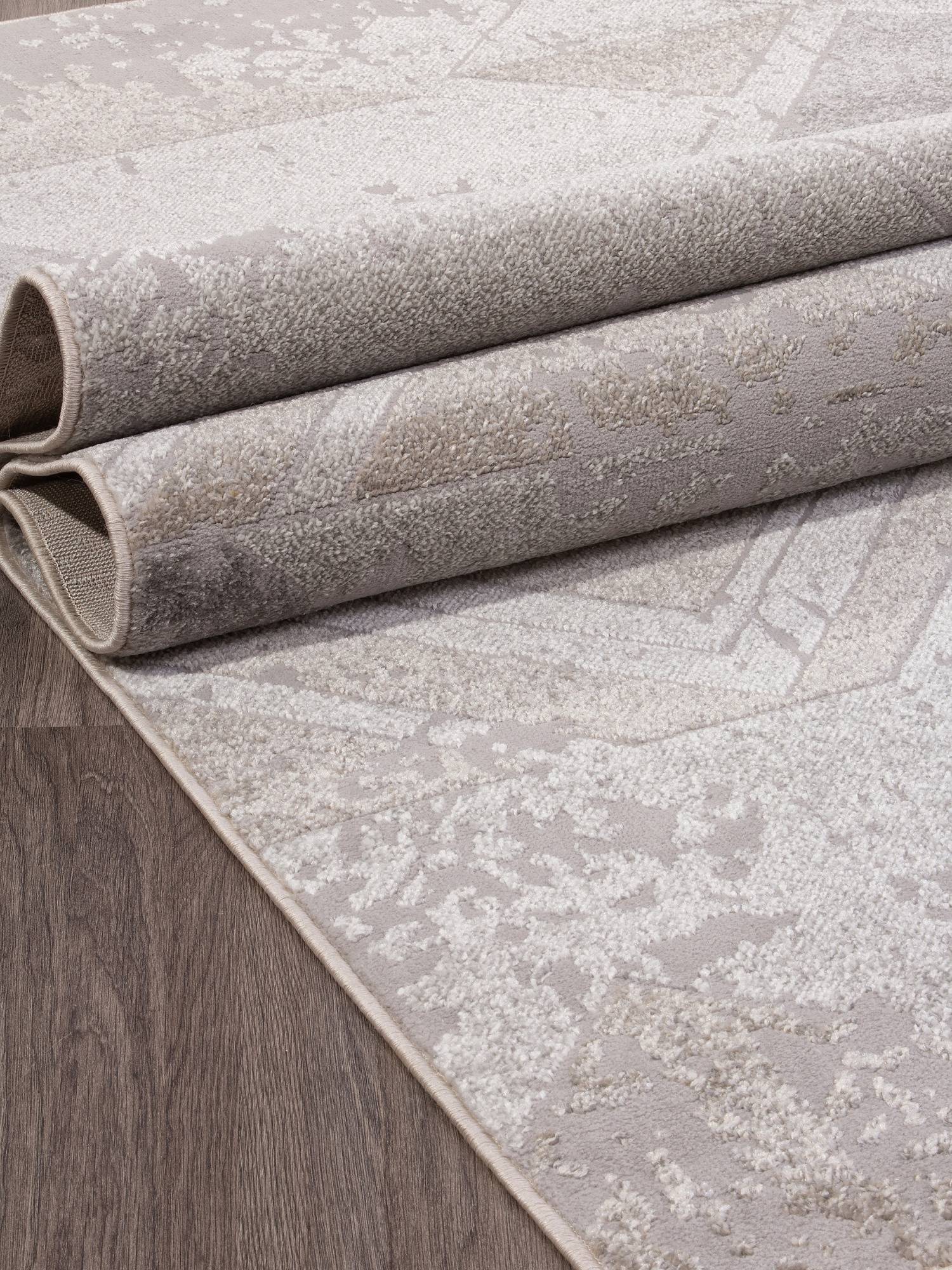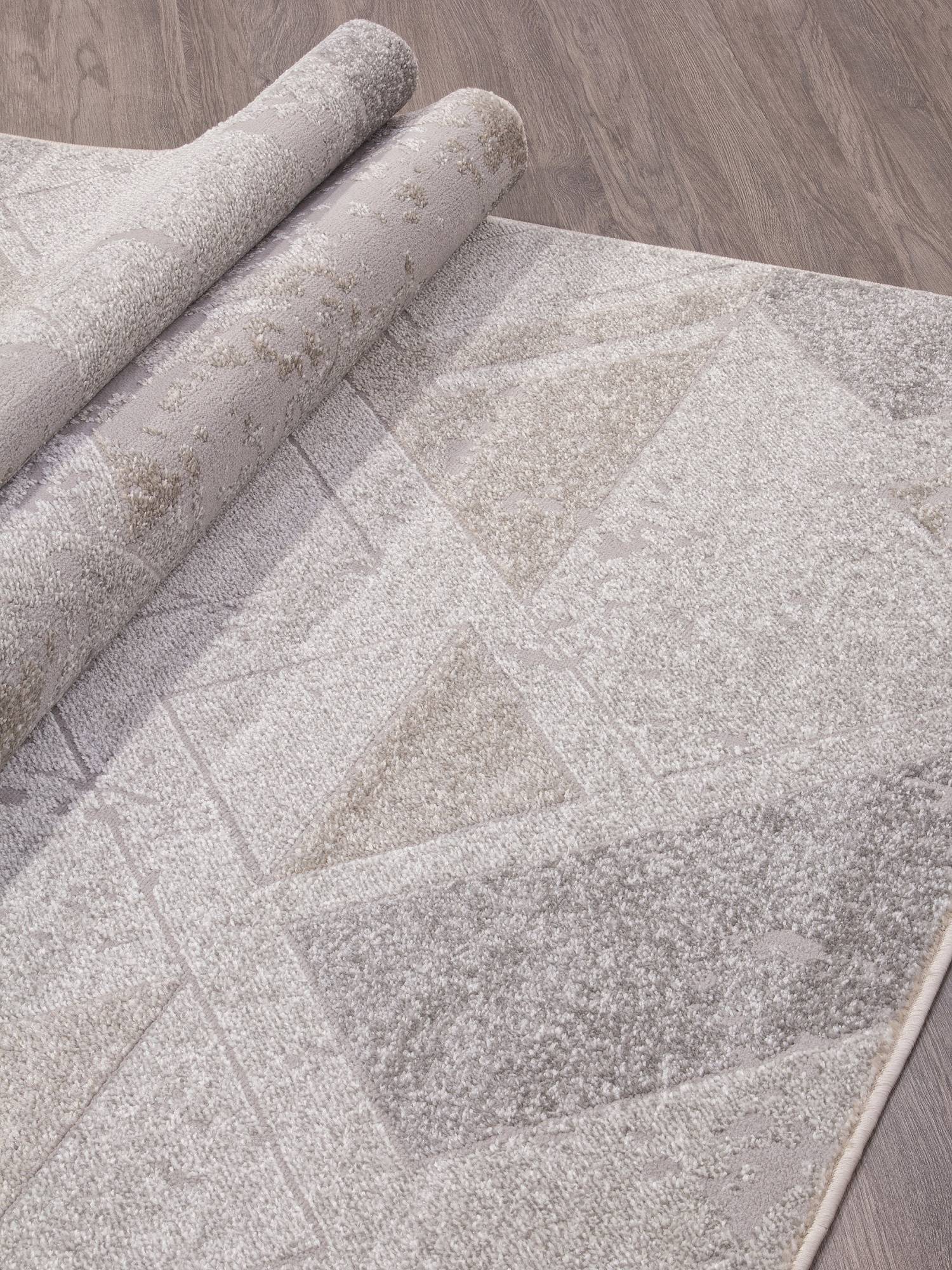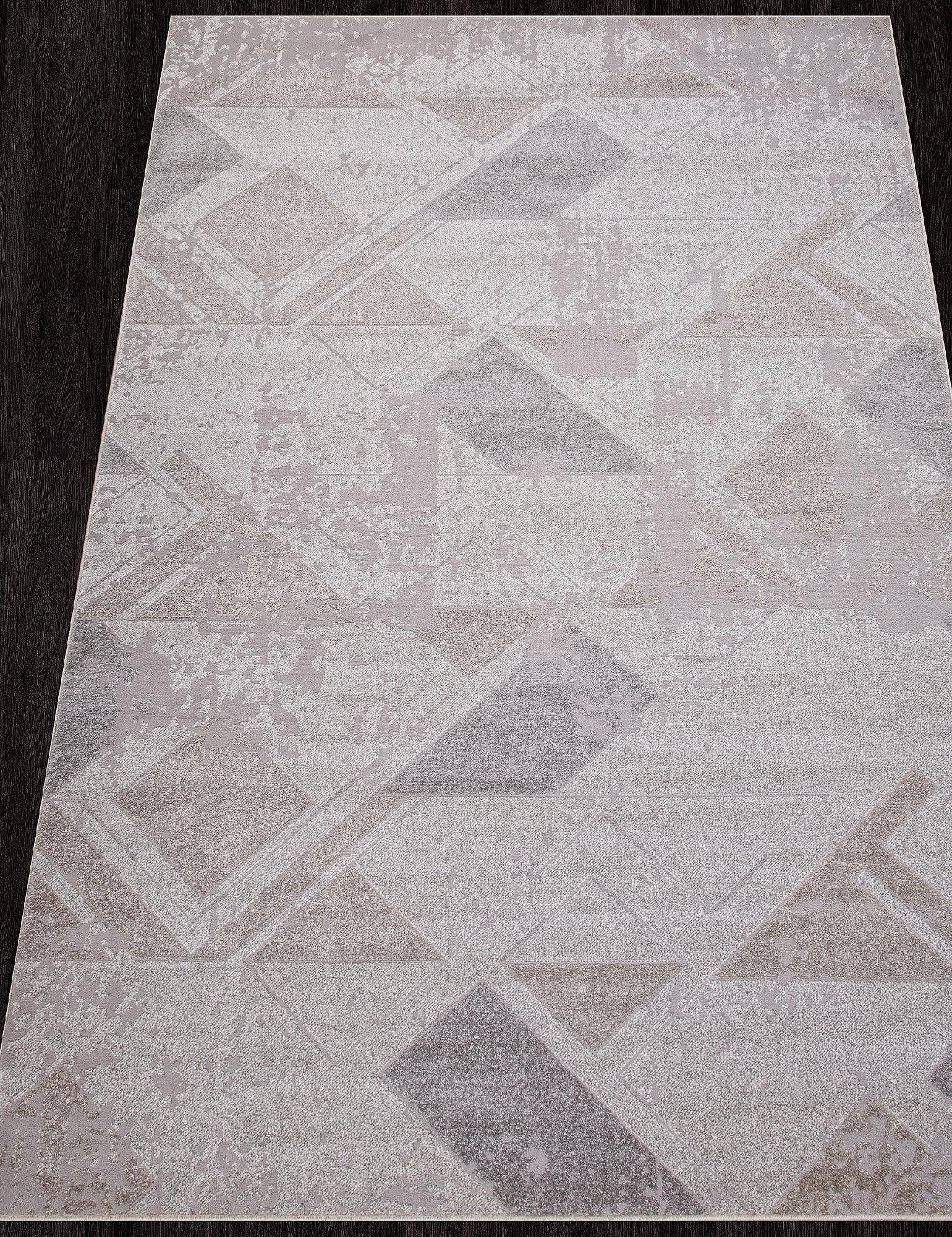 Бежево-серая расцветка, геометрический рисунок и высокая качество изготовления позволяют этому ковру стать хорошим украшением для интерьера вашего дома.