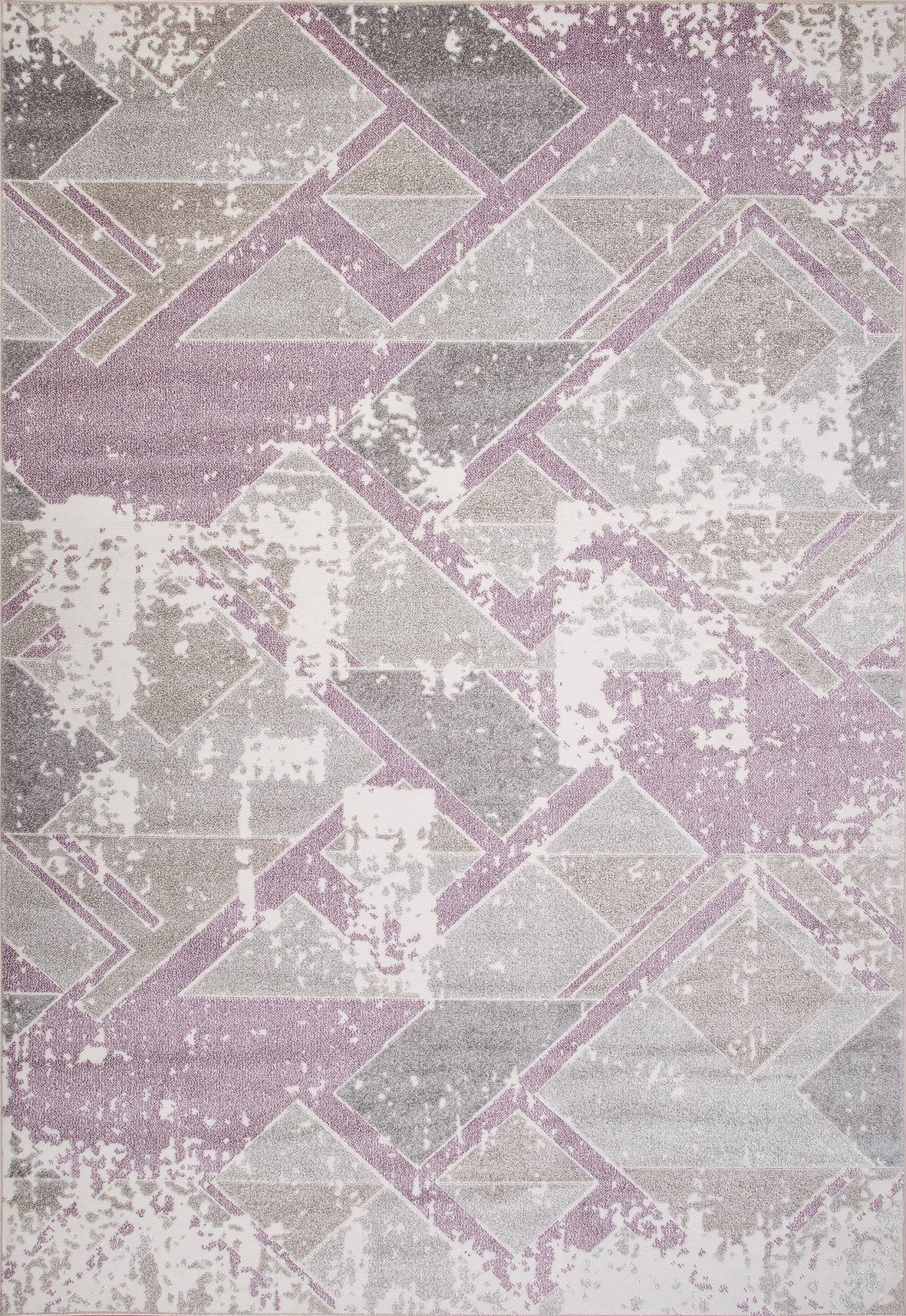Сочетания геометрического и абстрактного рисунка, а также оригинальная кремово-фиолетовая расцветка позволяет этому ковру стать интересным украшением для интерьера гостиной или зала.