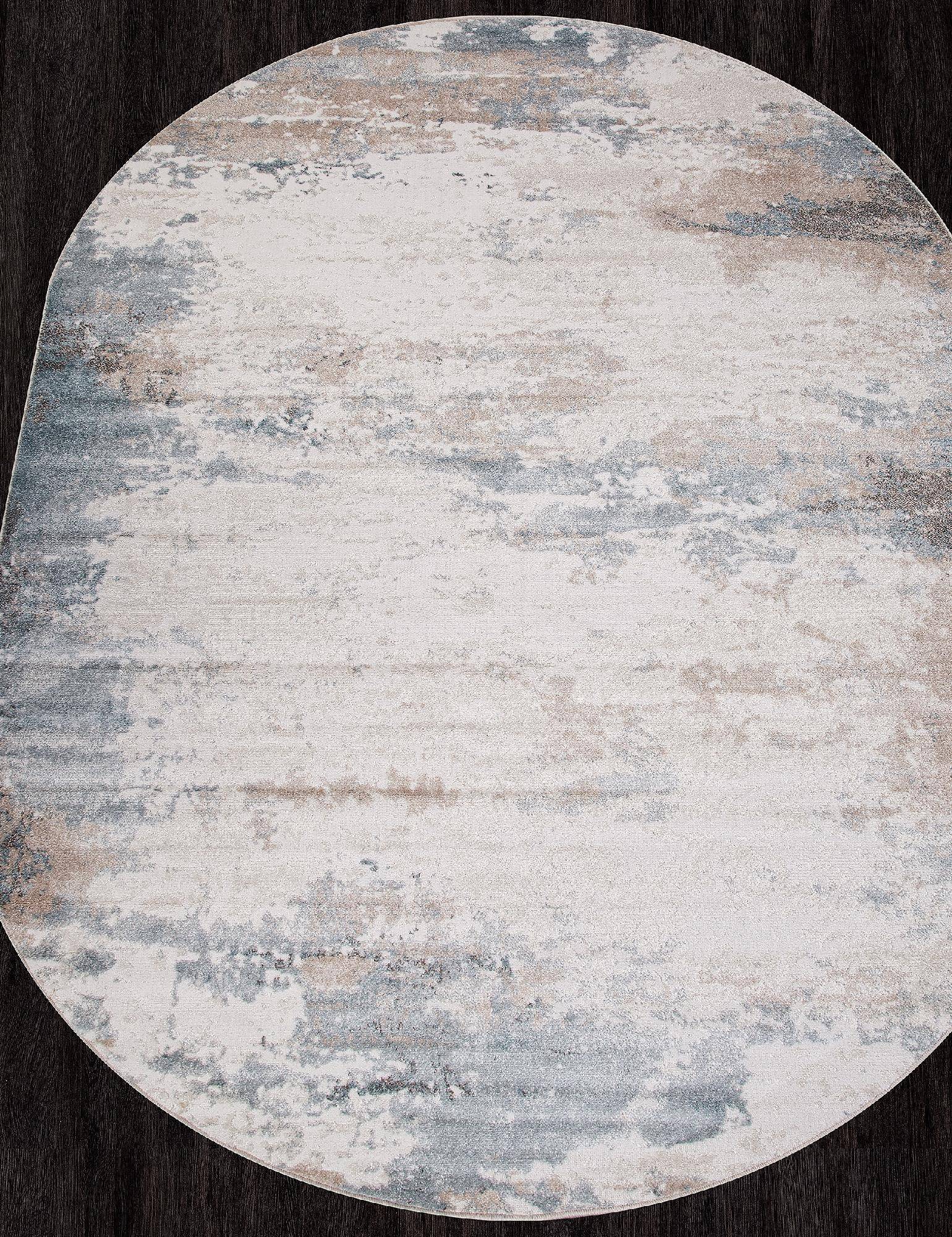 Интересный овальный ковер в светлой расцветке. Такое ковровое изделие станет хорошим дополнением к интерьеру в современном стиле.