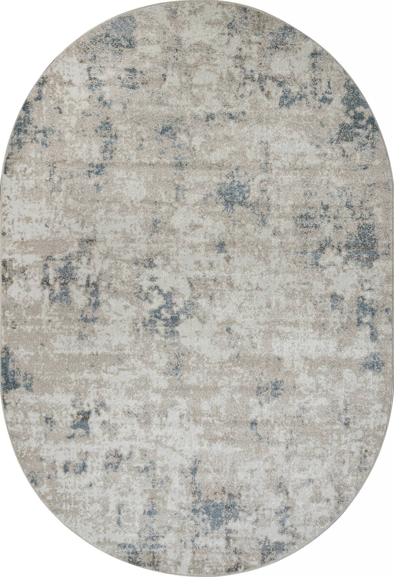 Бежево-синяя расцветка и оригинальный рисунок позволяют этому модному овальному ковру стать отличным дополнением для интерьера вашего дома.