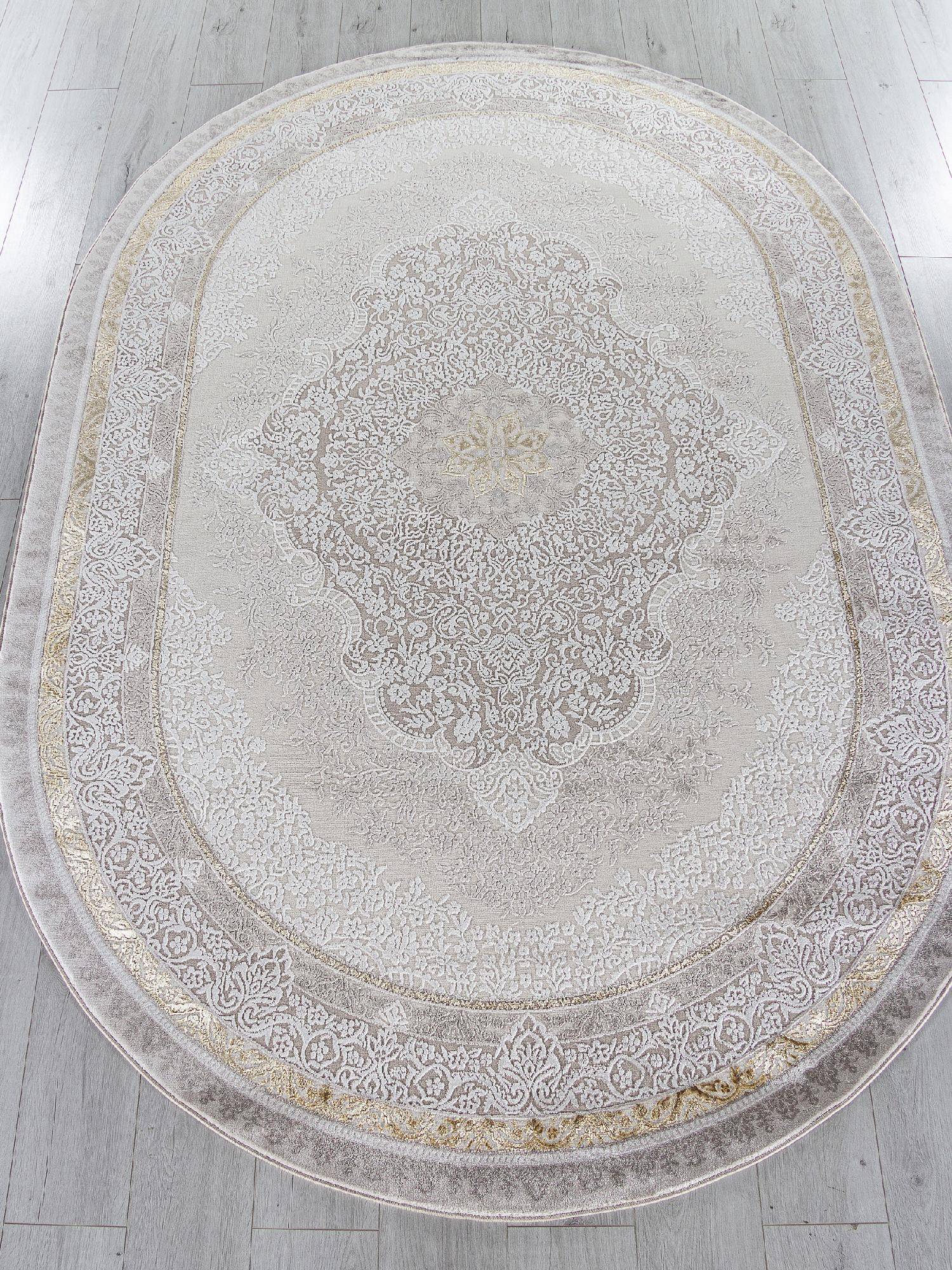 Спокойная расцветка, классический дизайн и модная овальная форма позволяют этому ковру украсить любой интерьер.