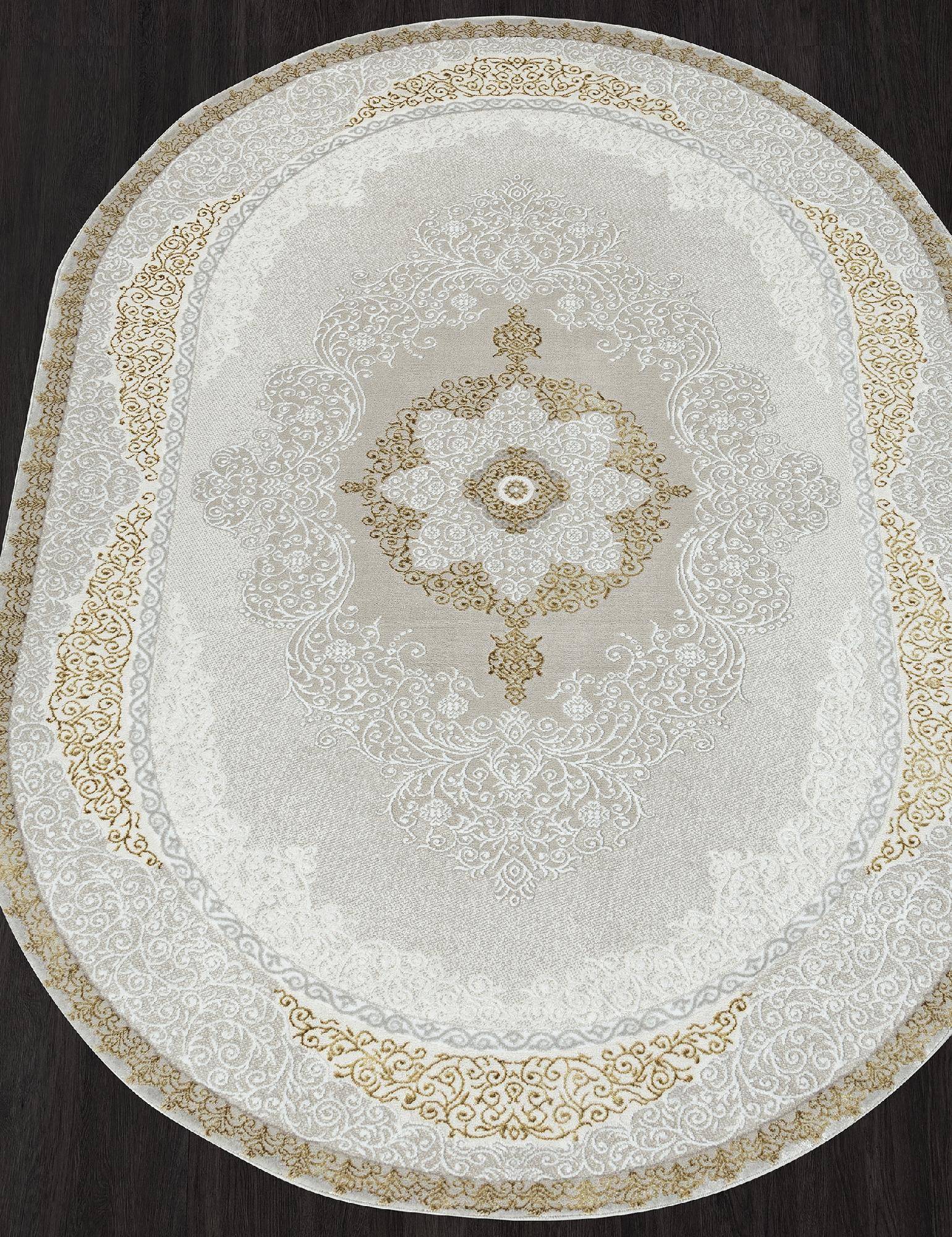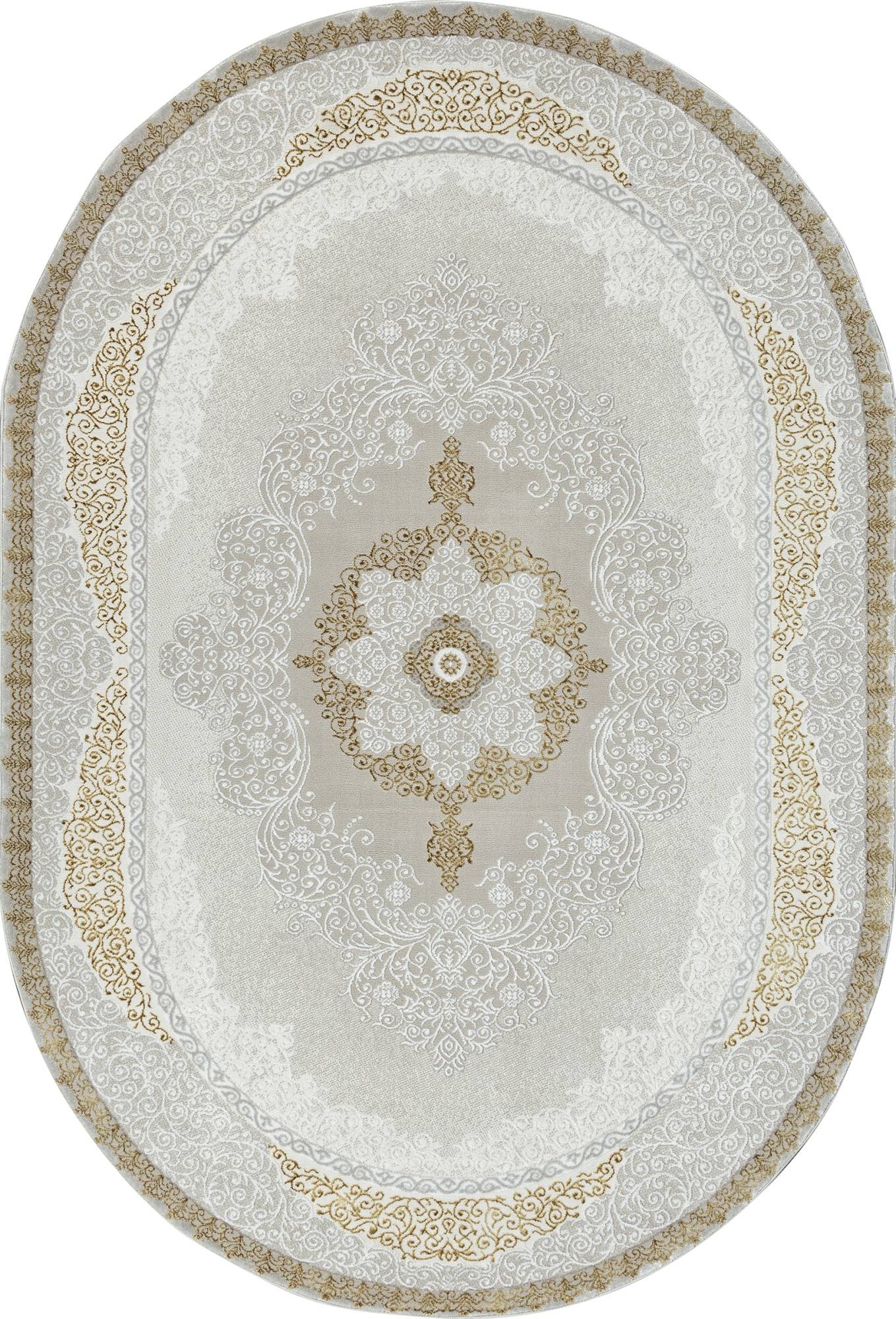 Красивый классический ковер овальной формы в светлой расцветке. Этот ковер будет интересным украшением для гостиной или зала.