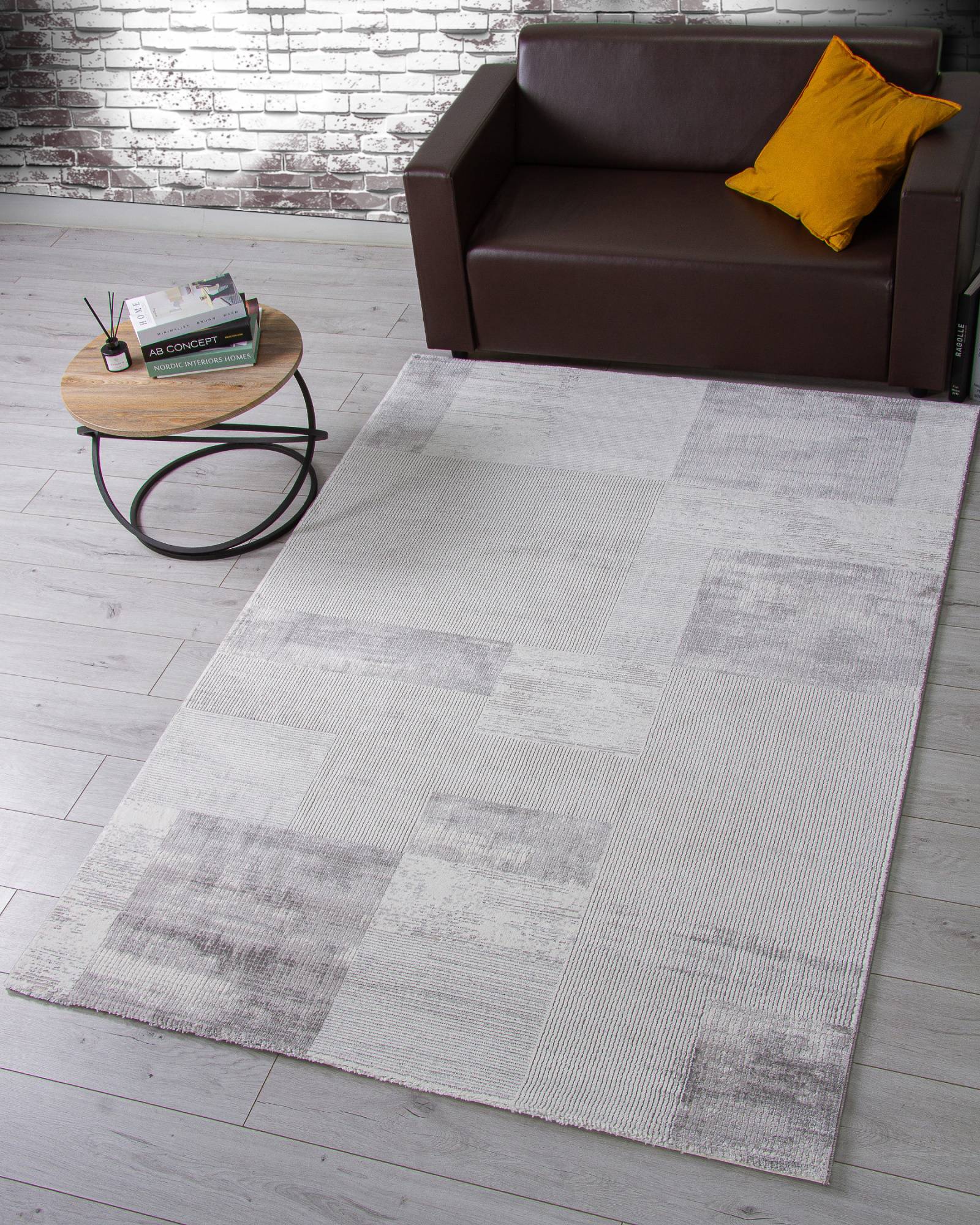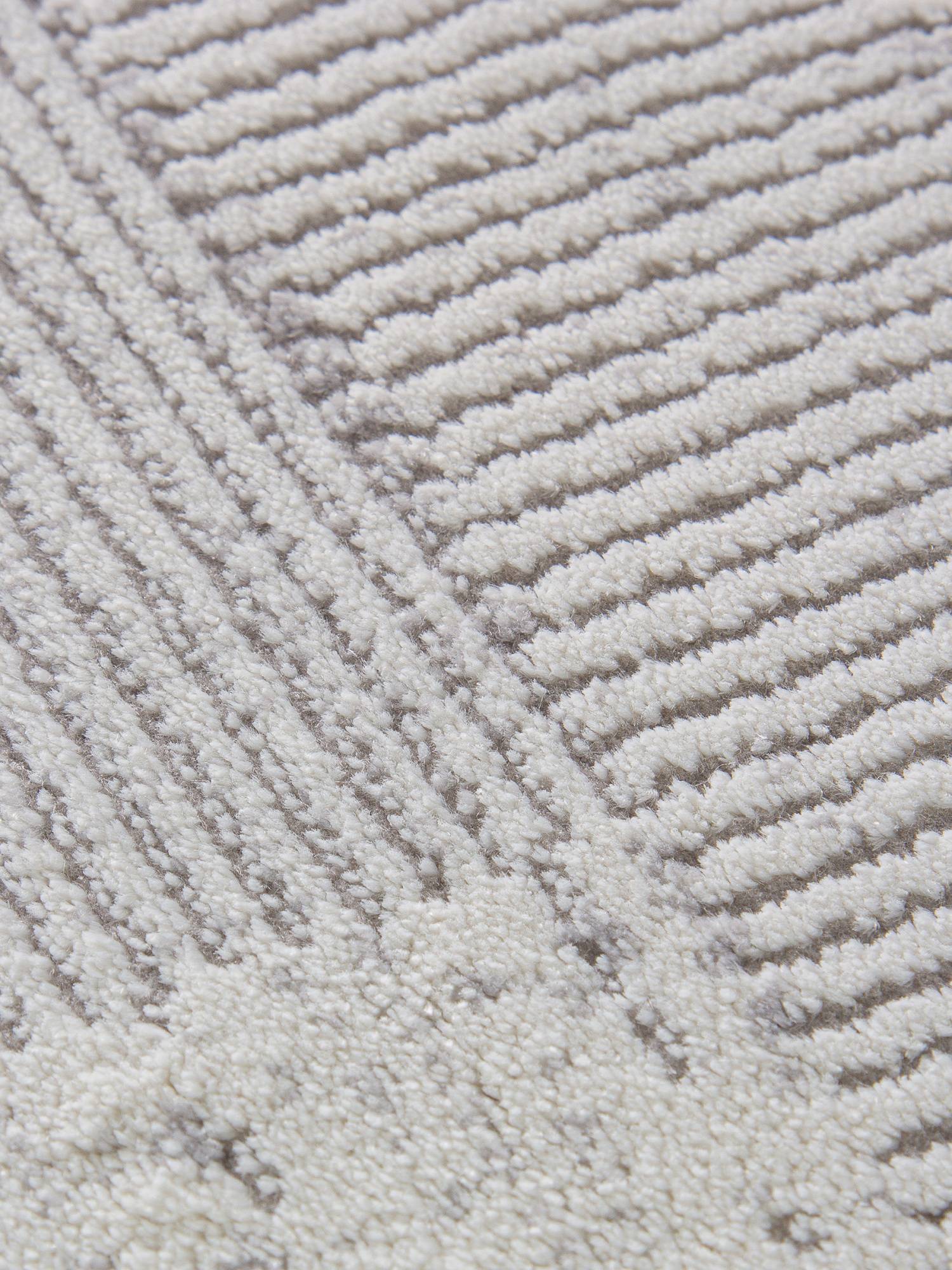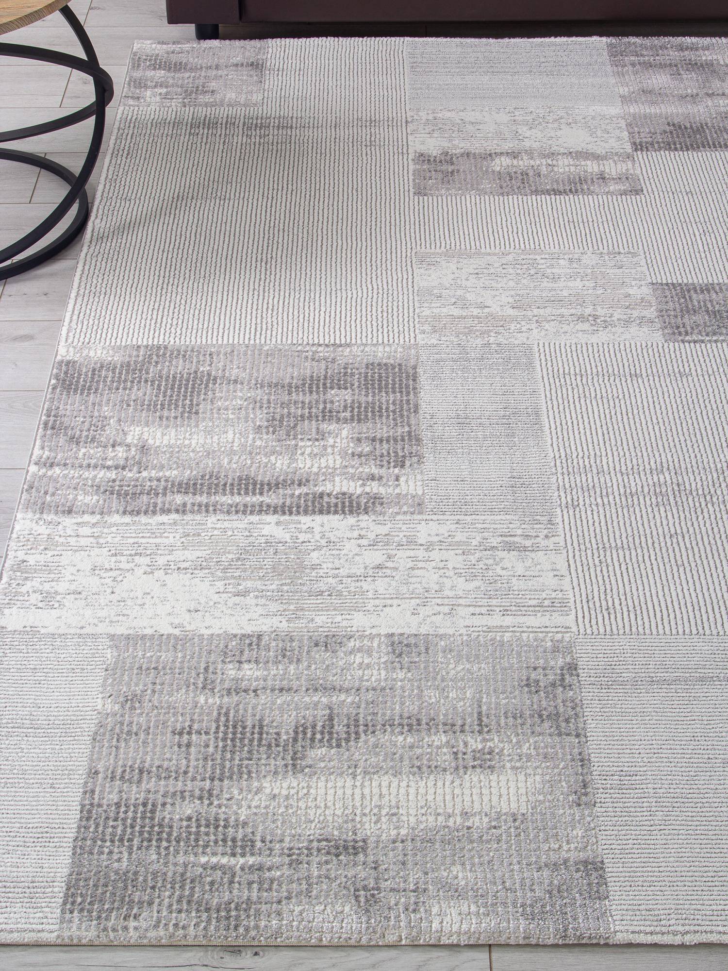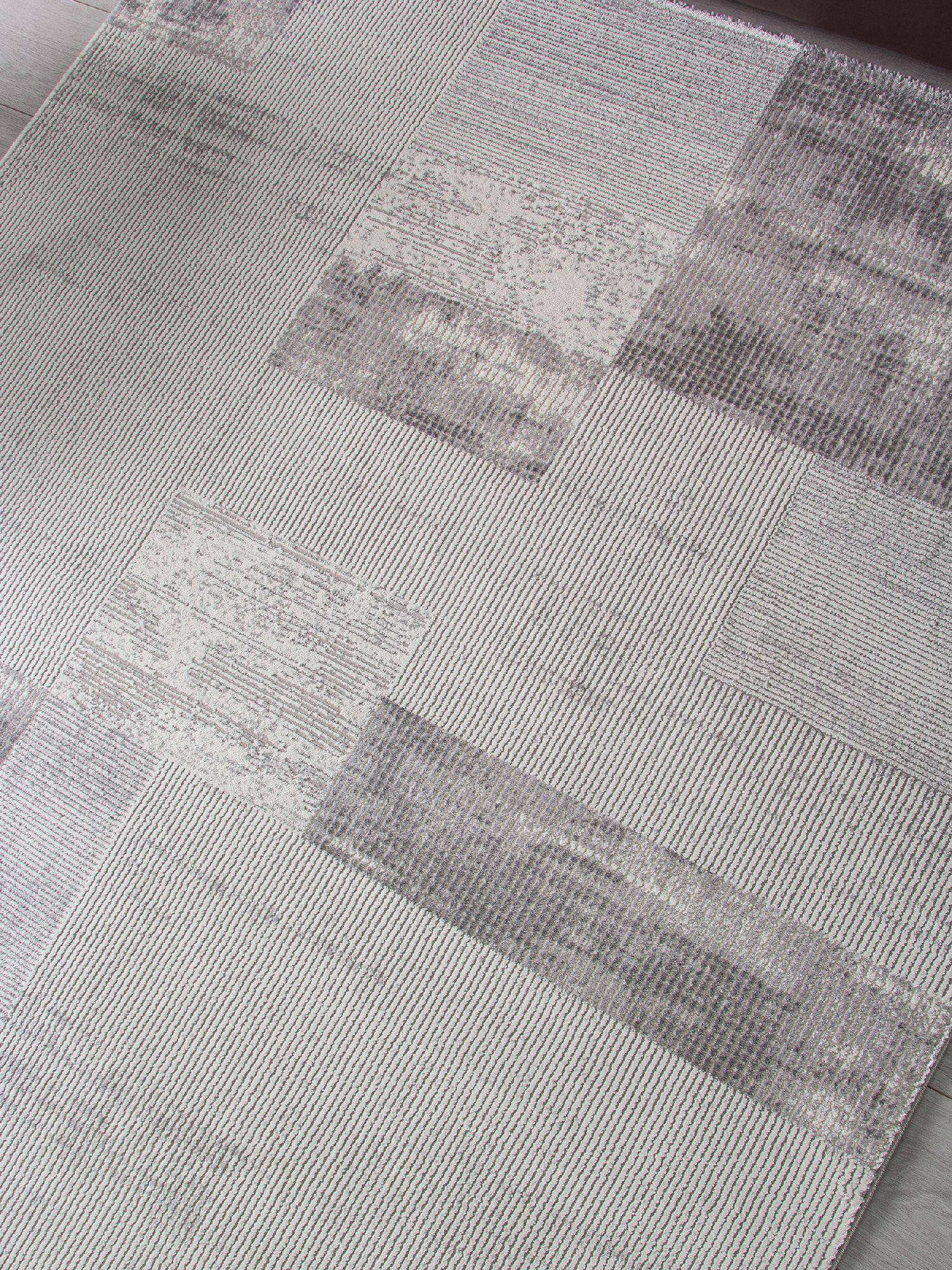 Геометрический рисунок, светлая расцветка в серых тонах, простота чистки и гипоаллергенность. Такой ковер будет интересным украшением для интерьера вашего дома.