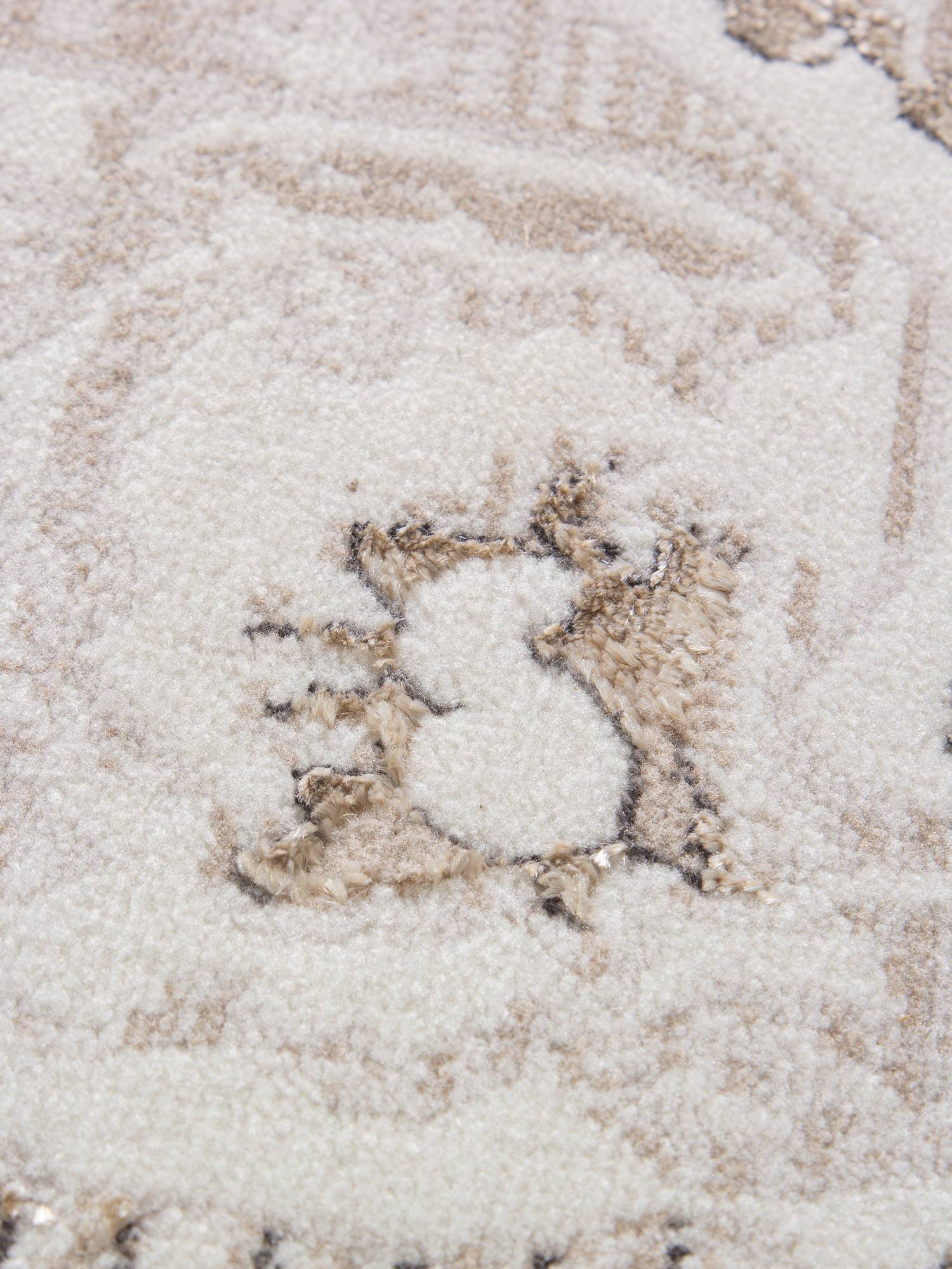 Красивый ковер в нейтральной кремово-бежевой расцветке, с классическим рисунком. Хорошо дополнит интерьер гостиной, зала или спальни.