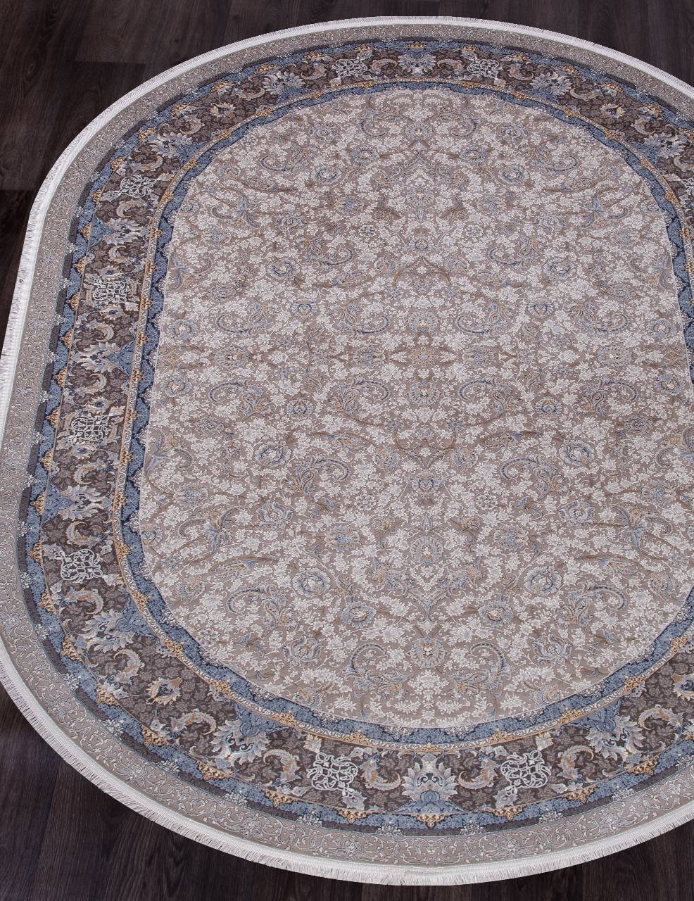 Приятный на ощупь, модный ковер в классическом стиле с интересным, оригинальным орнаментом. Такой овальный ковер будет хорошим украшением для гостиной или зала.