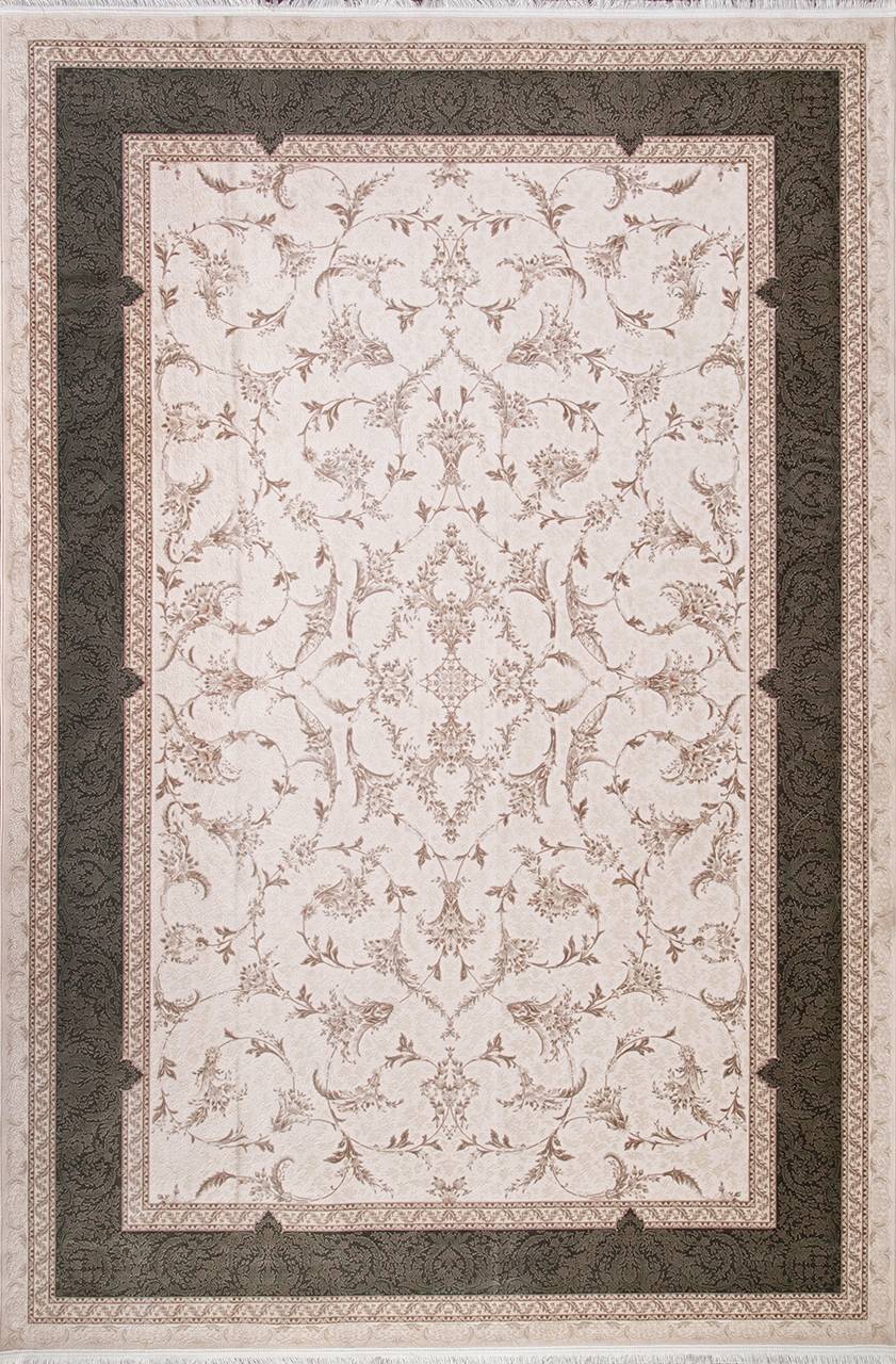 Красивый растительный орнамент и приятная кремовая расцветка с зеленым бордюром позволяют этому ковру стать оригинальным дополнение для любого современного инетрьера.
