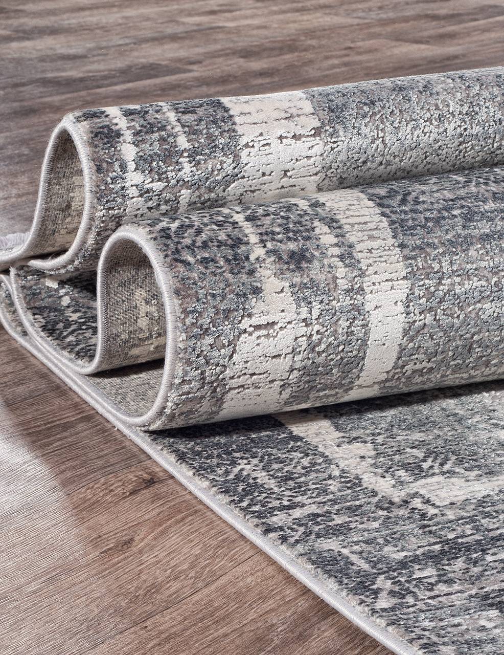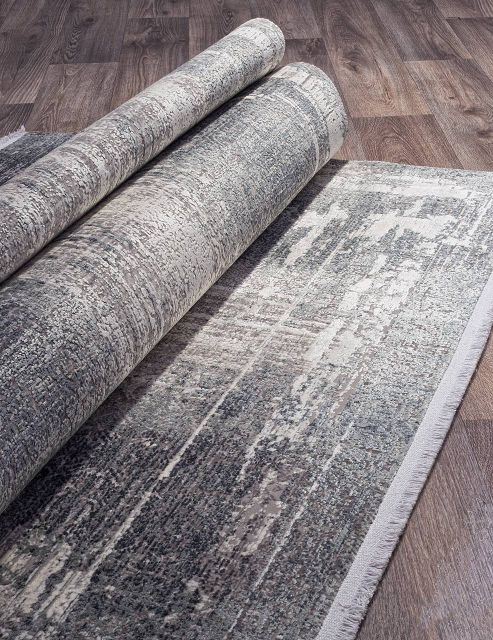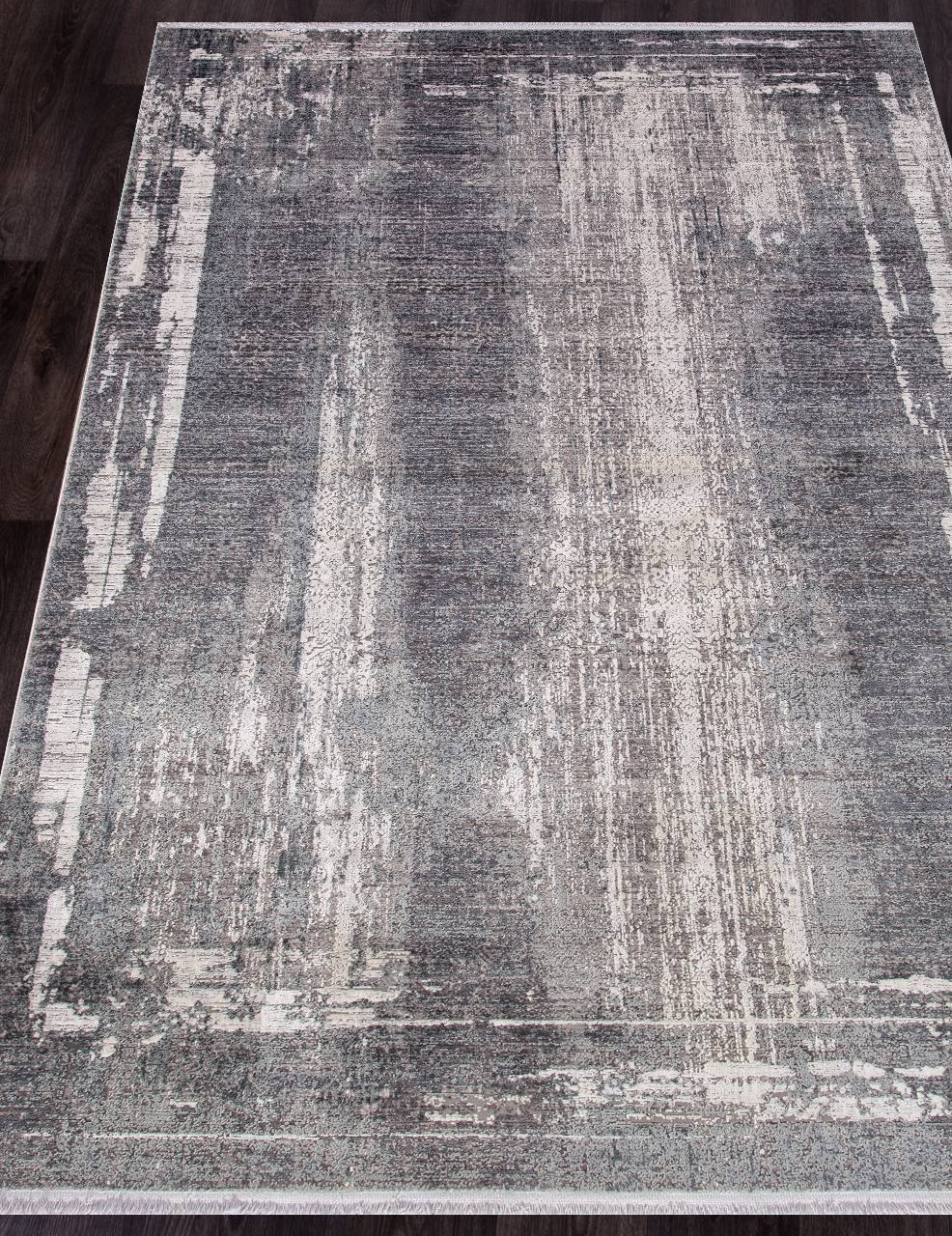 Строгая серая расцветка этого ковра имеет имитацию старинной потертости, что придает этому ковру лоска и благородства.