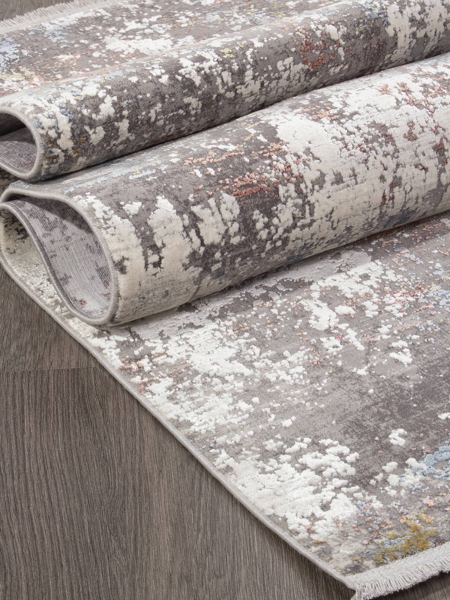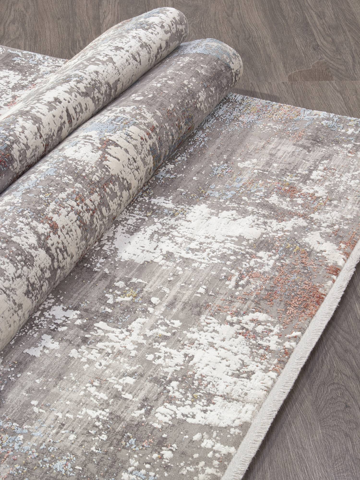 Оригинальное ковровое изделие в гранжевом стиле и оригинальной расцветке. Отлично подойдет для интерьера гостиной, зала или столовой.