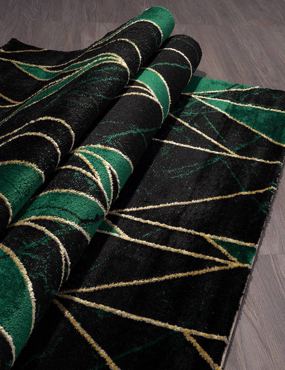 Стильный современный ковер с геометрическим рисунком и интересной зеленой расцветкой в двух оттенках. Отличное приобретение для украшения современного интерьера.