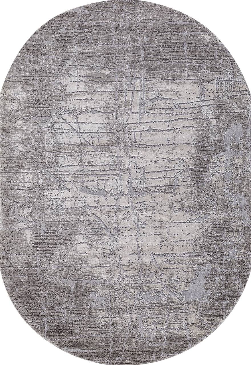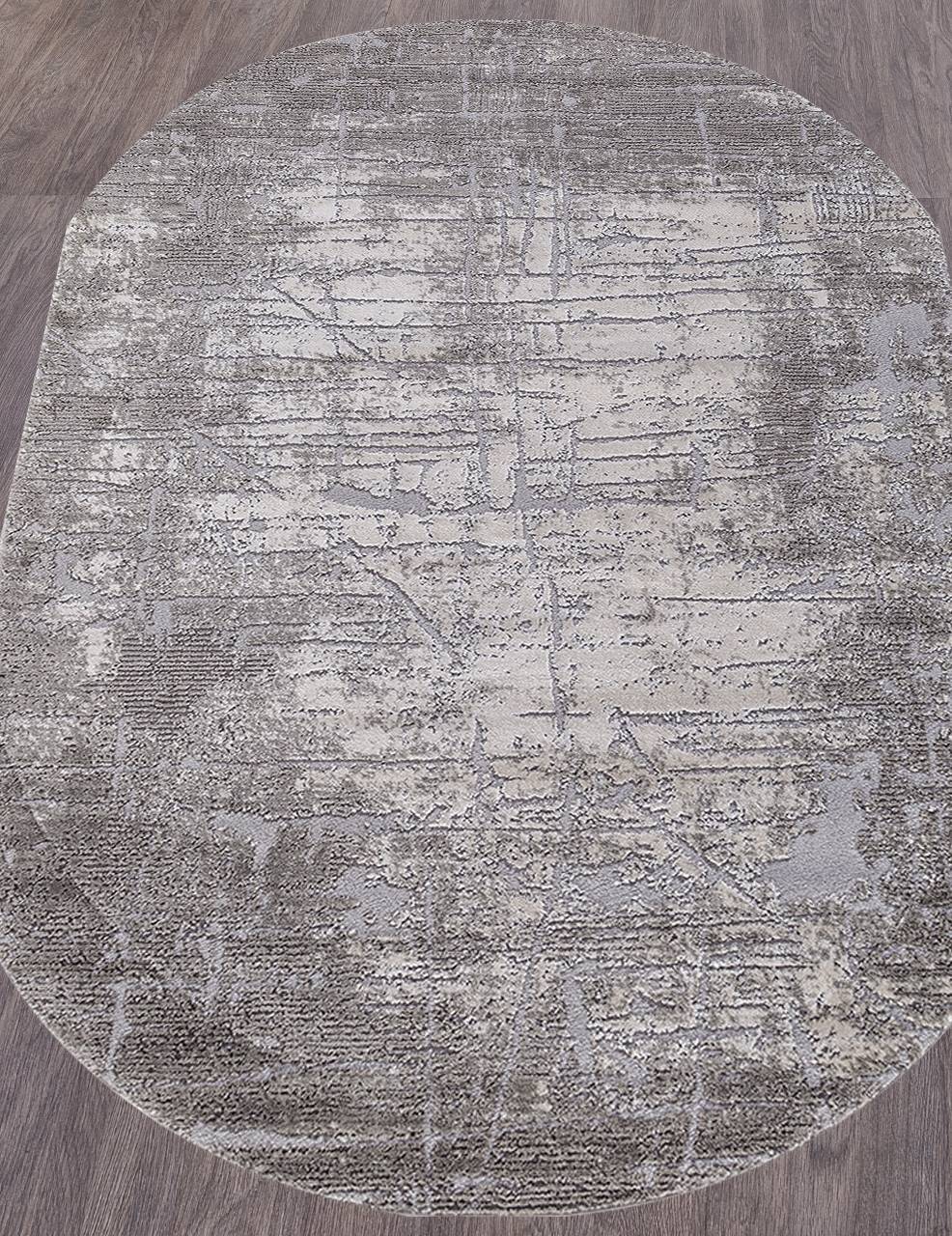 Стильный овальный ковер с рельефным орнаментом в нейтральной серой расцветке. Такой ковер станет ори...