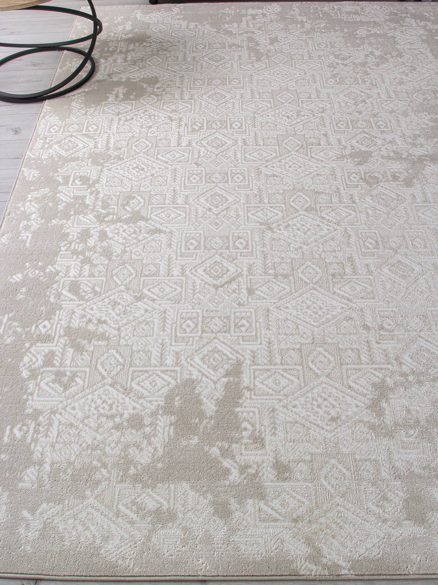 Оригинальный, светлый ковер с сочетанием геометрического и абстрактного рисунков станет стильным доп...