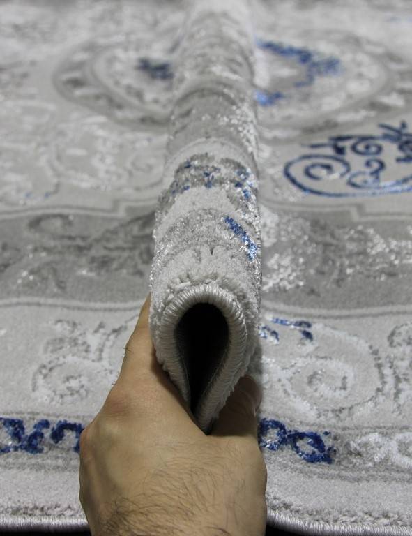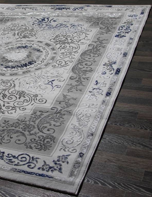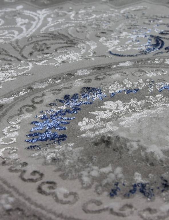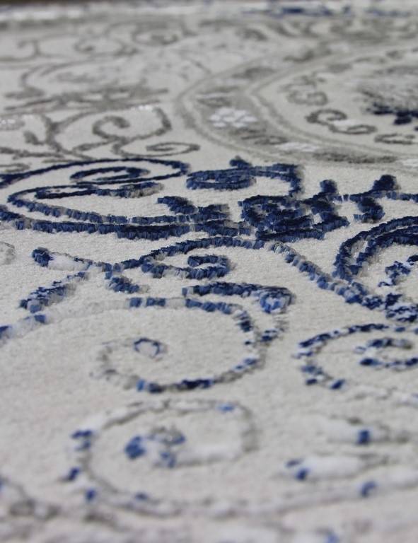 Абстрактный, рельефный рисунок с цветочными элементами в серо-синей палитре. Такое ковровое изделие станет хорошим дополнением к интерьеру гостиной или спальни.