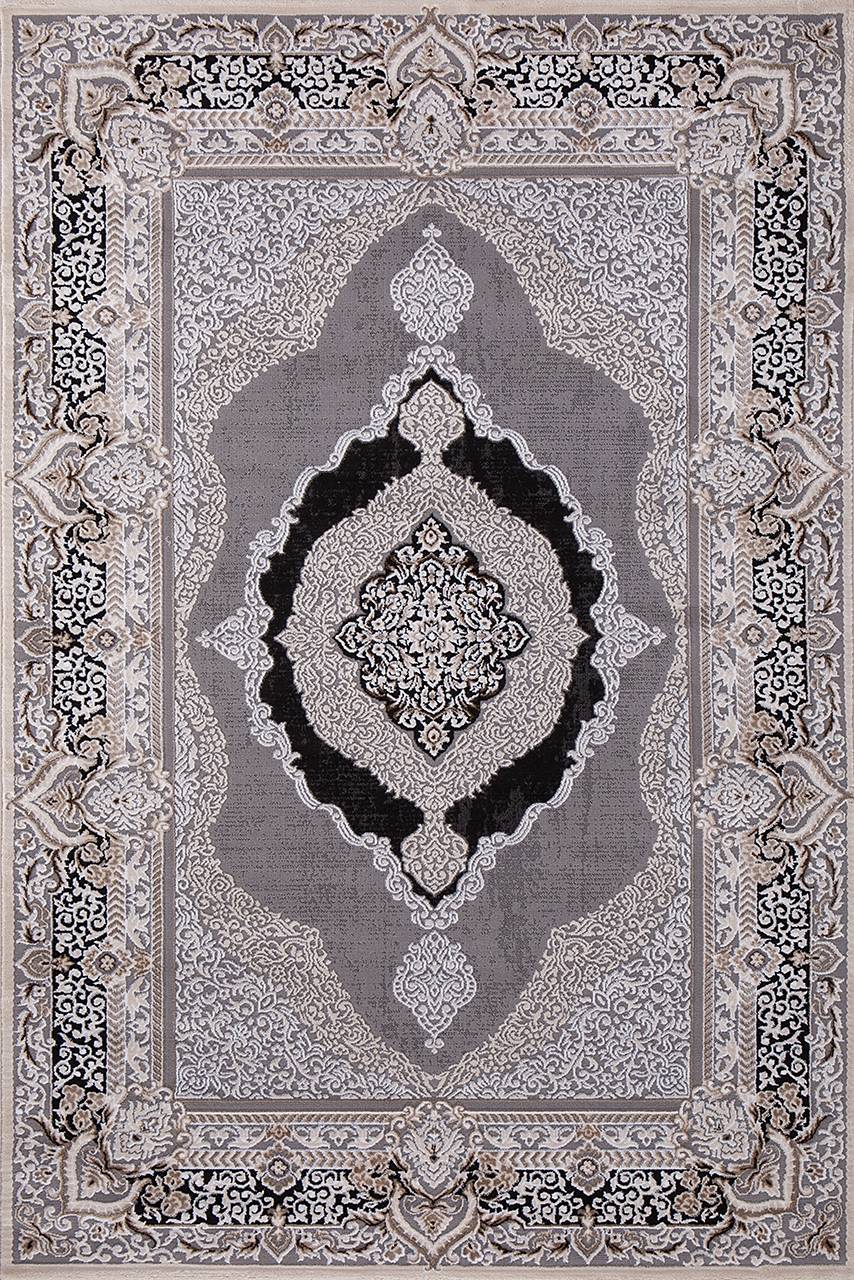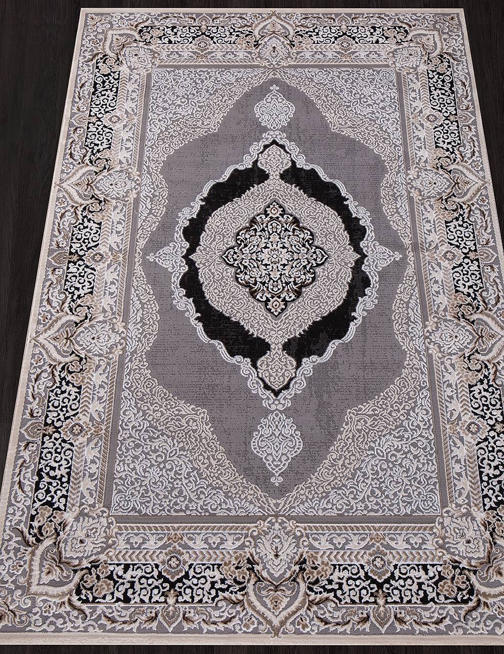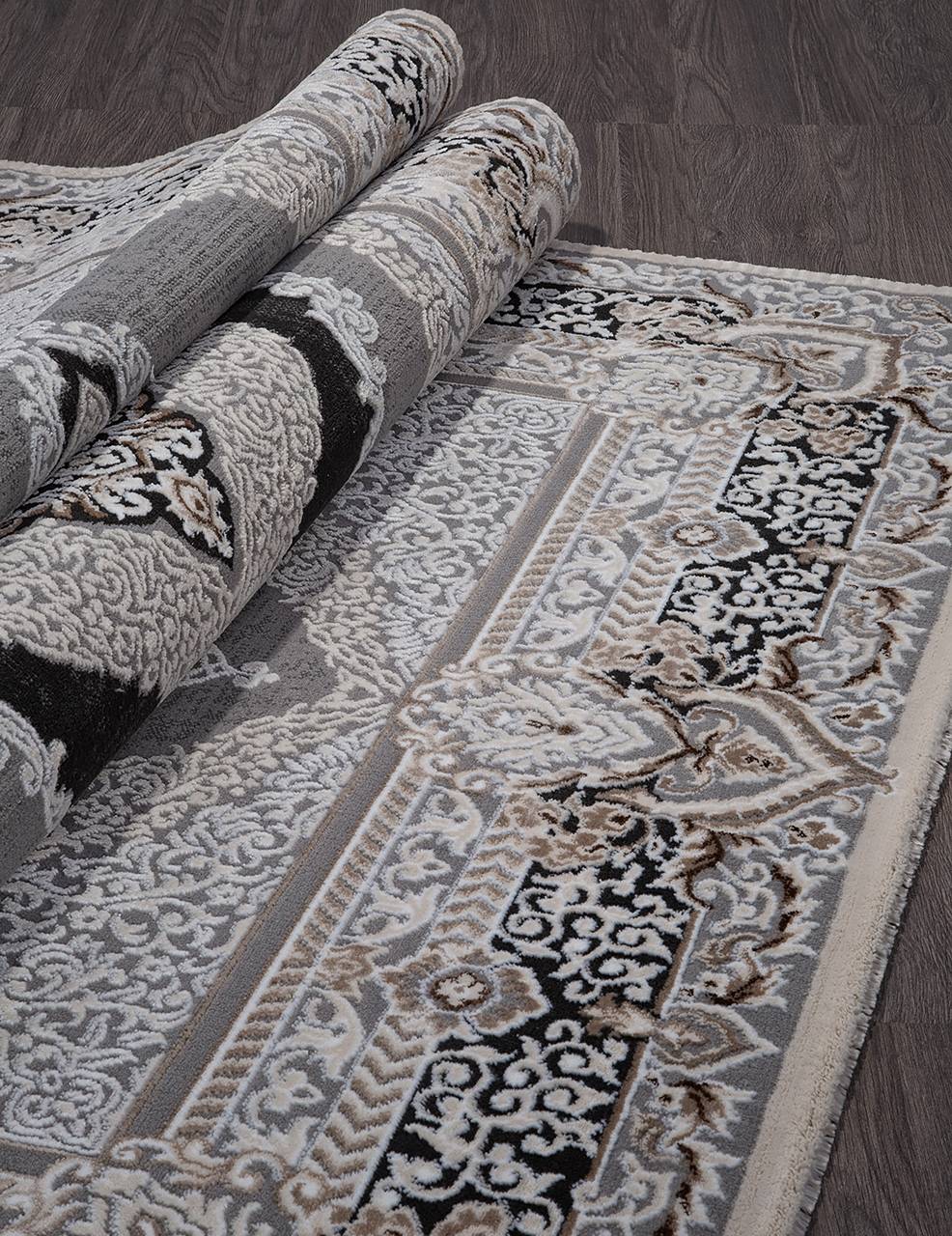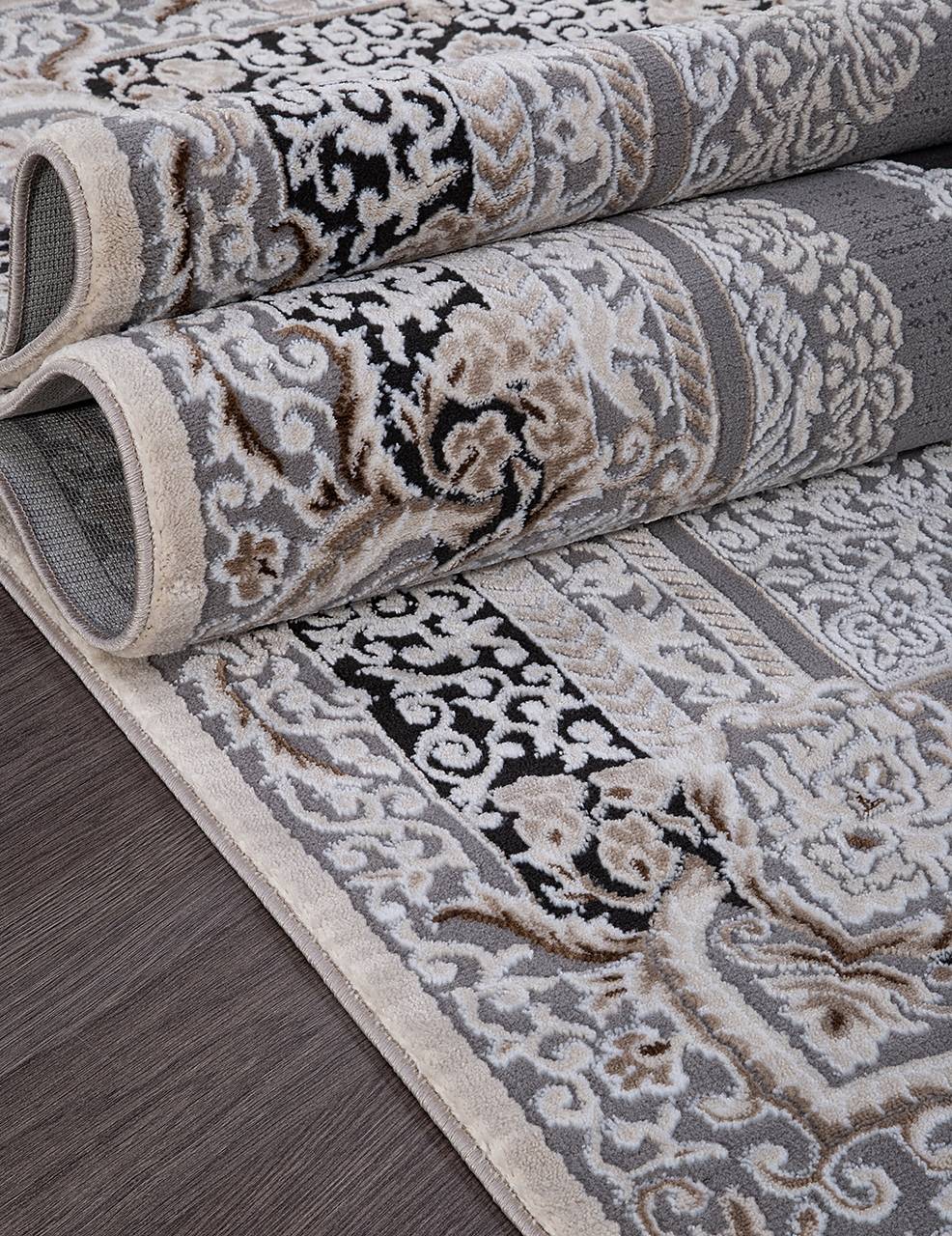 Ковер из полиэстера с классическим абстрактным рисунком в серо-бежевых тонах. Благодаря плотному син...