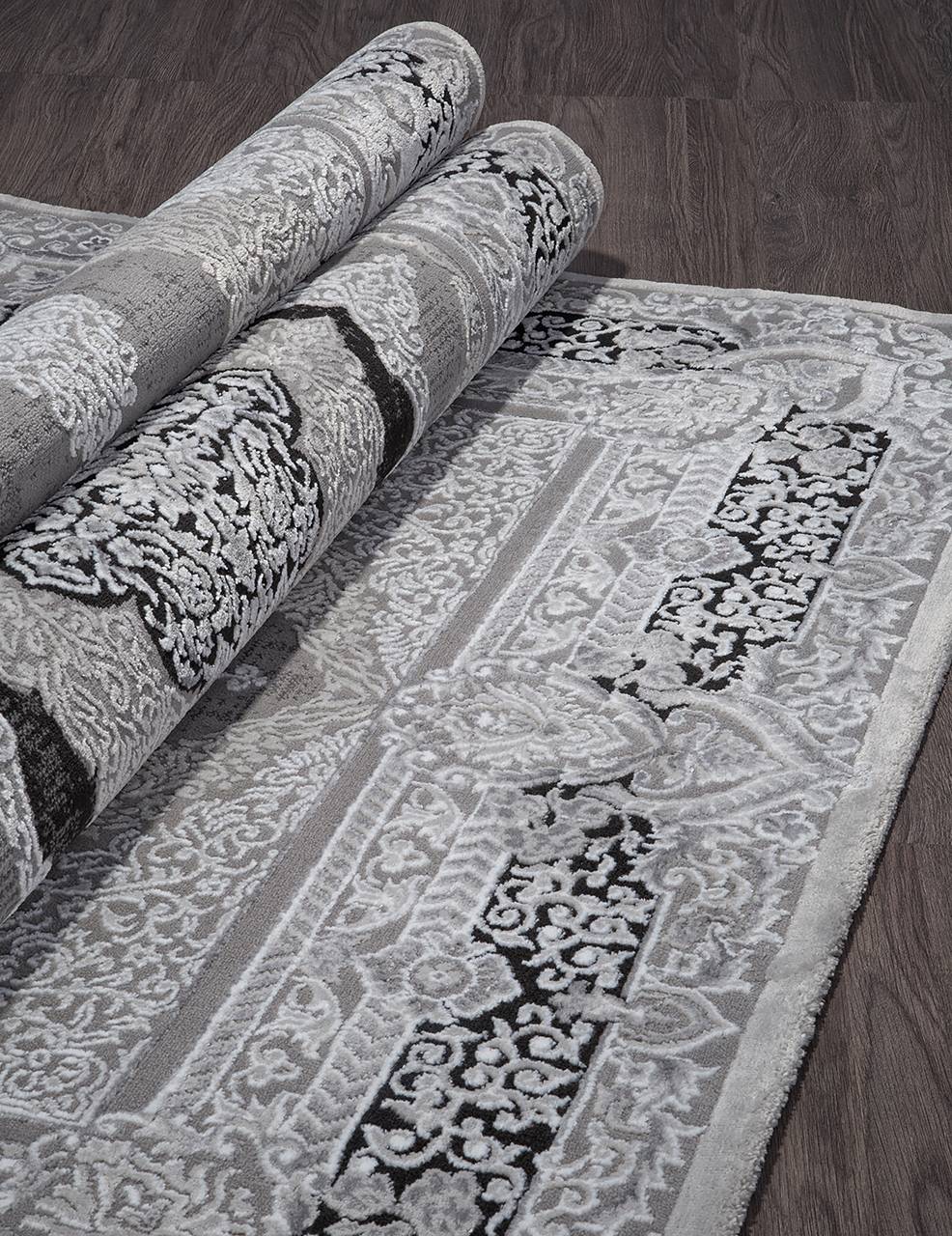 Красивый ковер в серой цветовой гамме и классическом стиле. Края обметаны плотной нитью, что не дает...