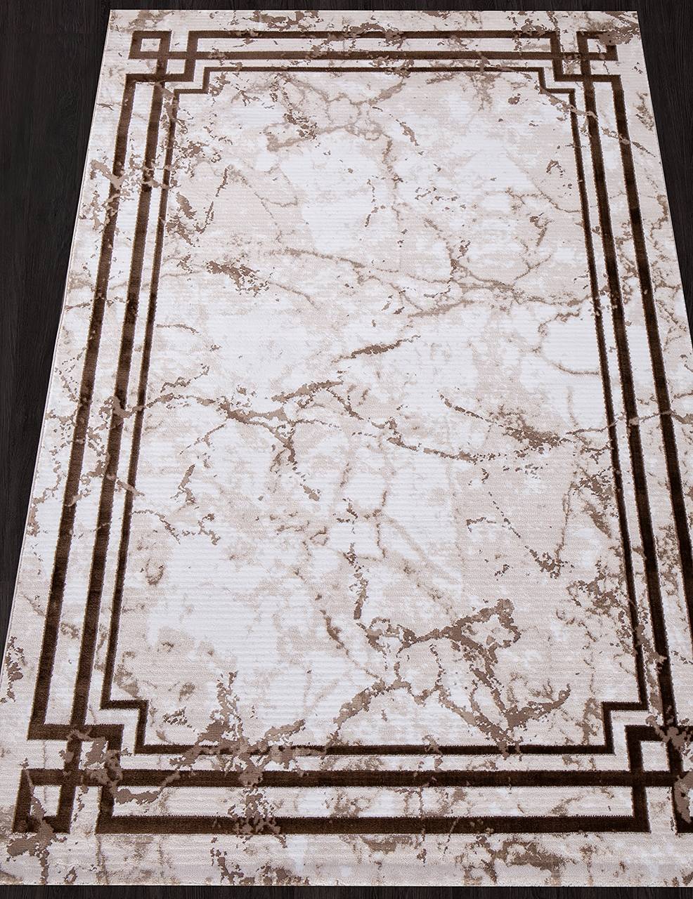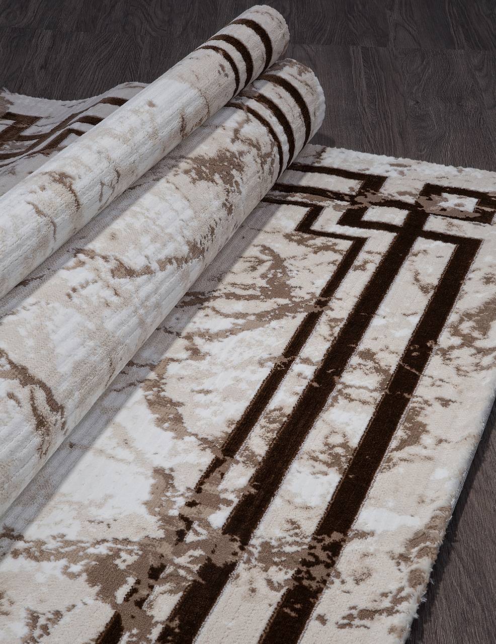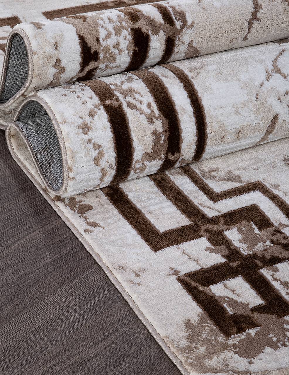 Красивый, стильный ковер в бежево-коричневых тонах. Небольшая рельефность ворса придаёт узорам динамичность и глубину. Отличный вариант для зала, спальни или детской.