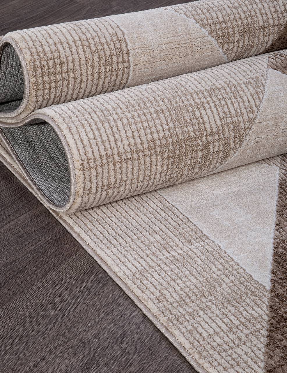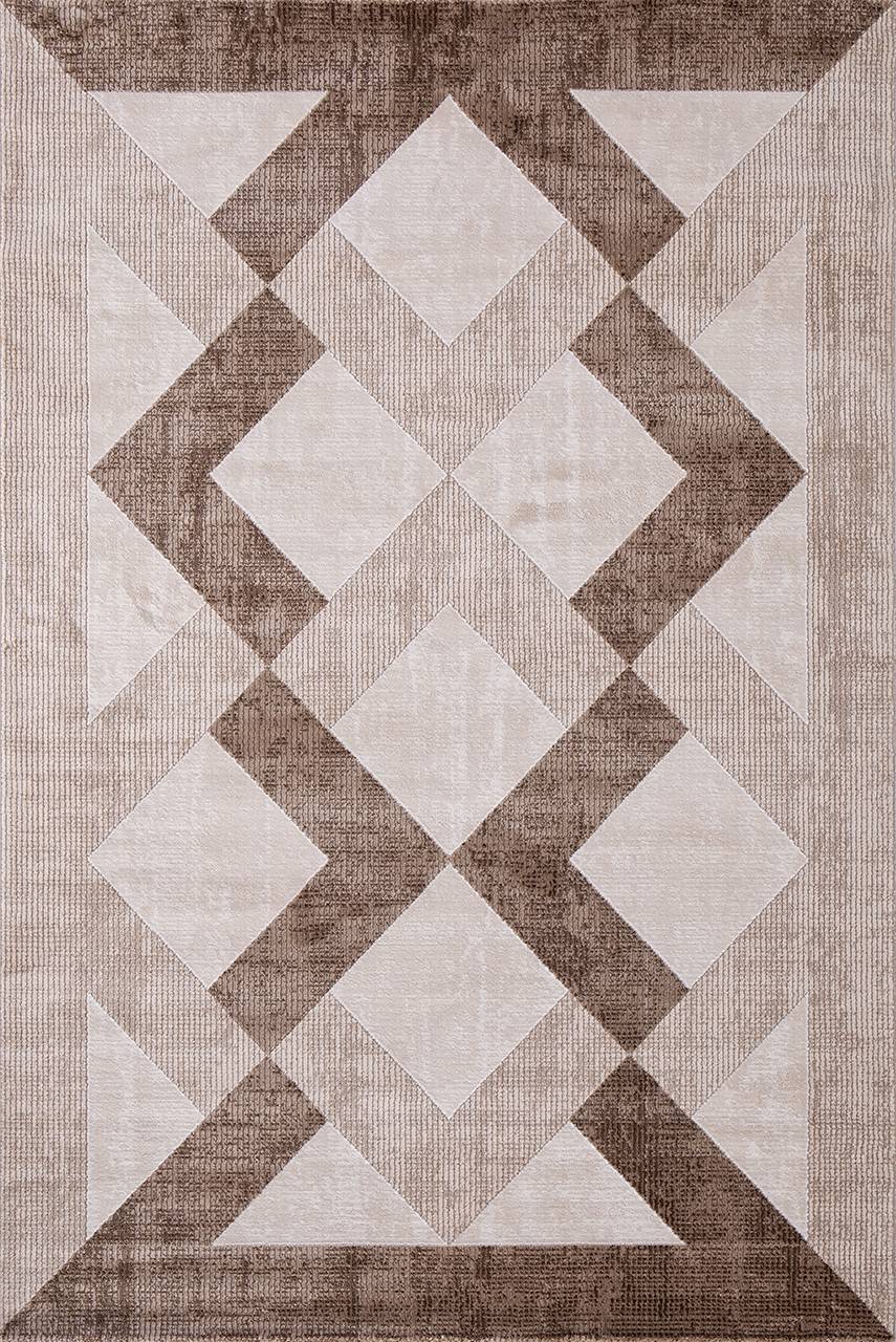 Стильный, современный ковер с геометрическим рисунком, который отлично подойдет для спальни в бежевых тонах или для зала. Небольшая высота ворса 9 мм делает его простым в уходе.