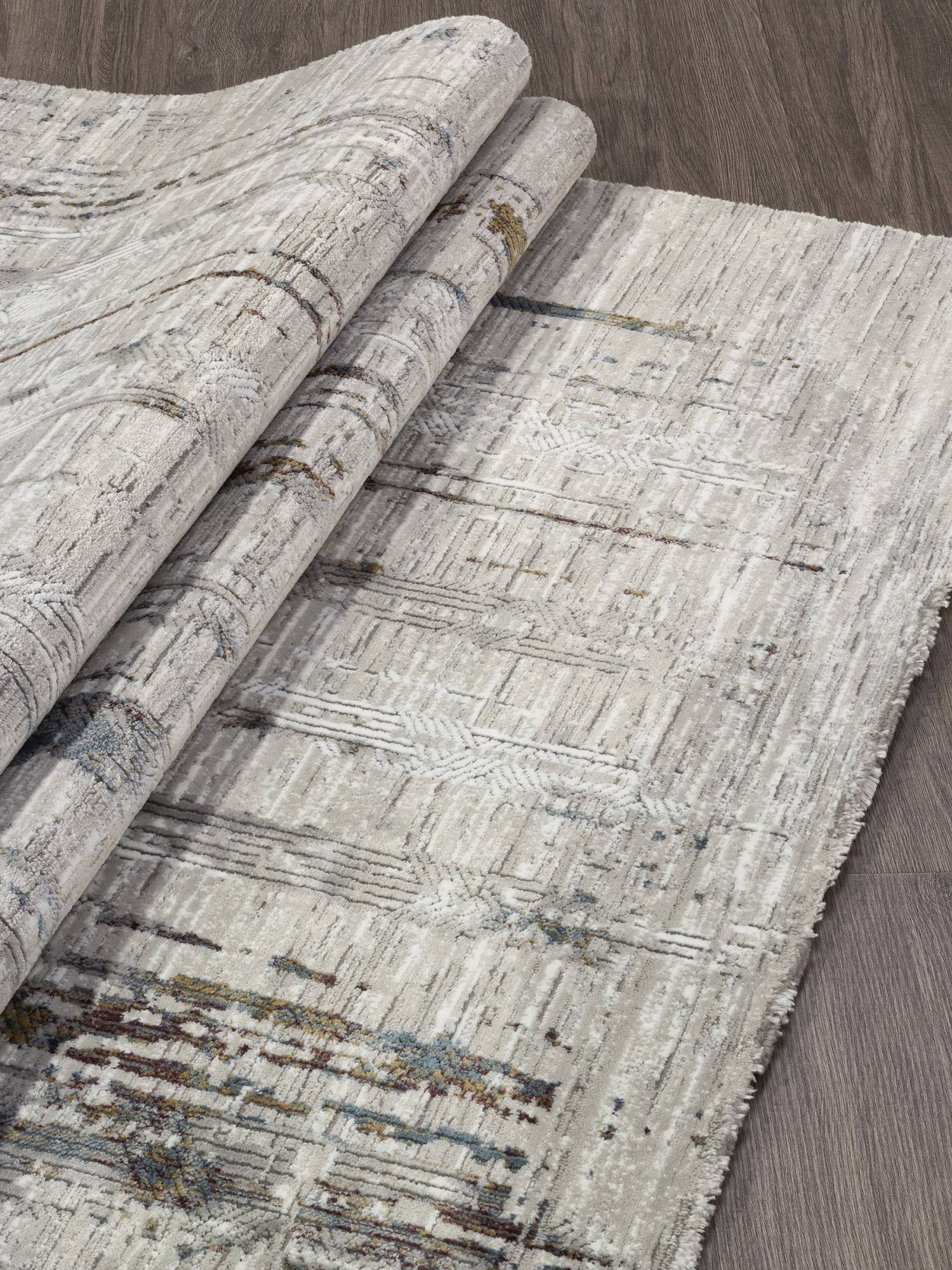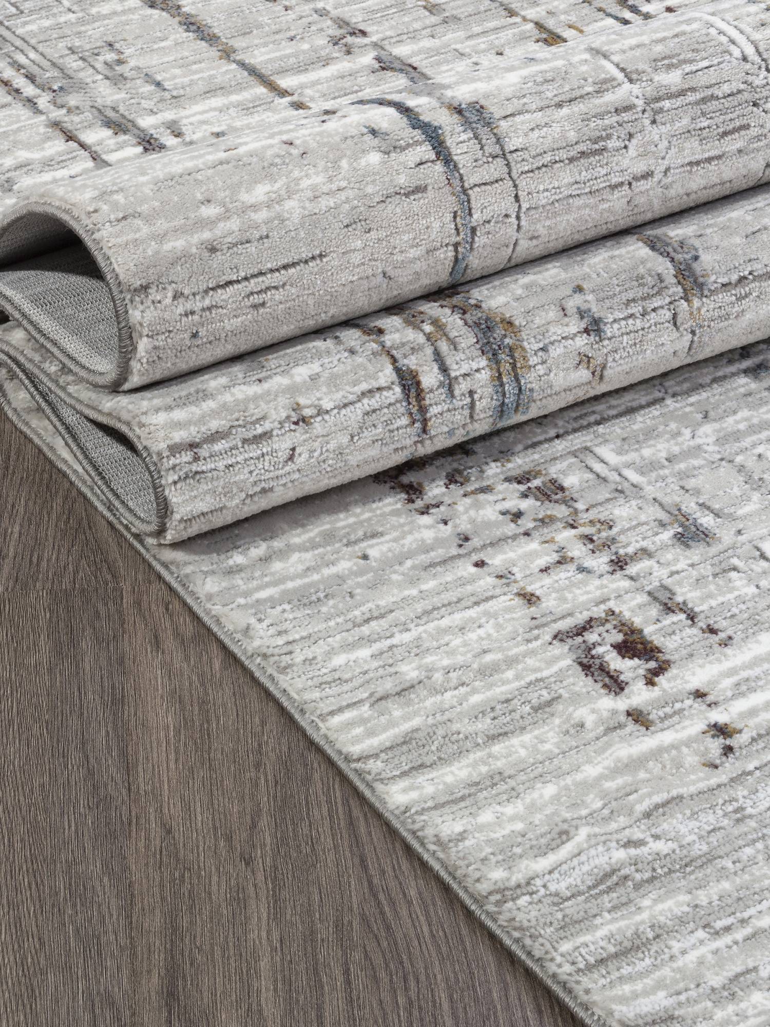 Светлая расцветка в серых тонах, абстрактный рисунок и приятный ворс. Это ковровое изделие будет стильным украшением дял ниетреьар вашего дома.