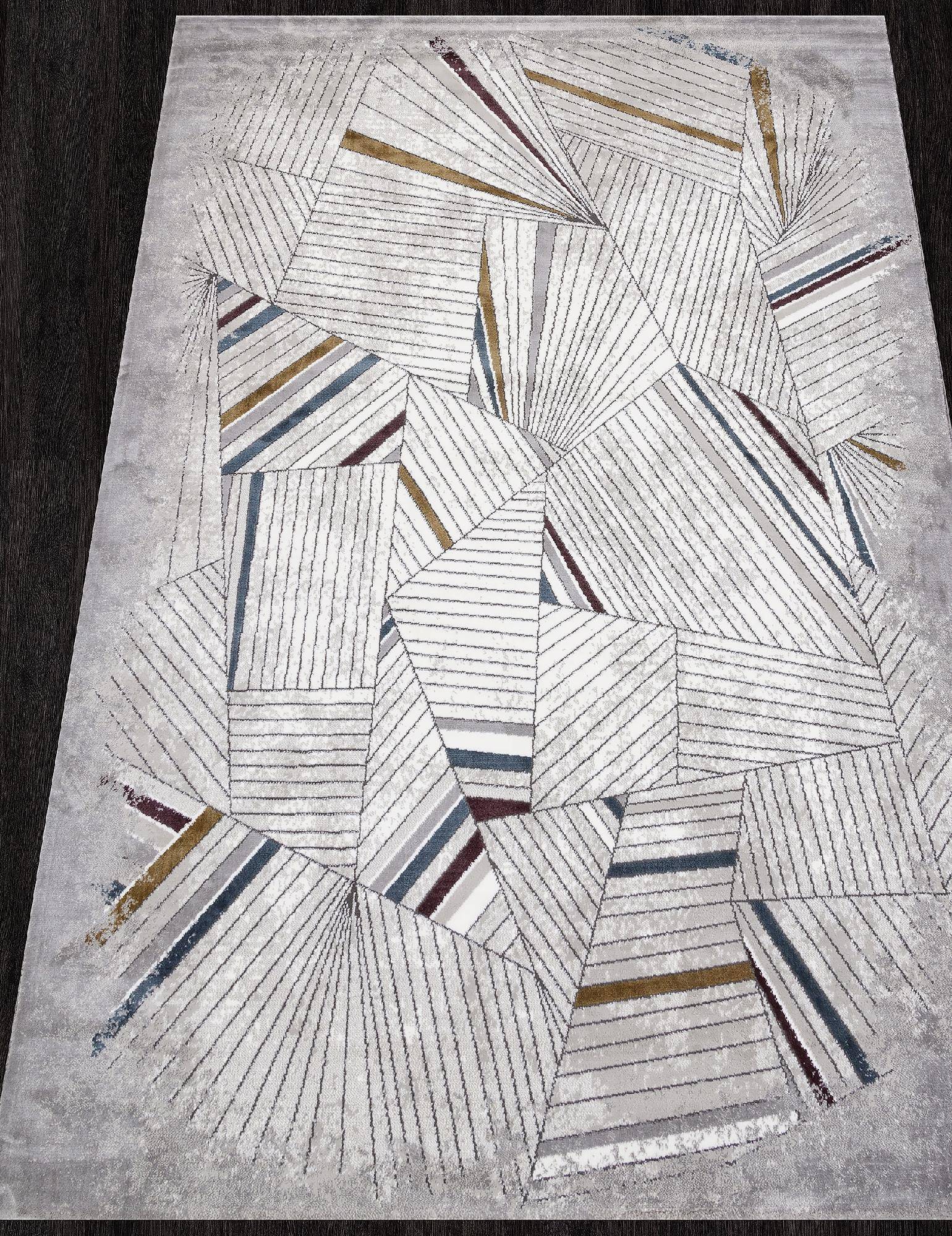 Оригинальный геометрический рисунок, светлая расцветка и высокое качество изготовления позволяют этому ковру стать красивым украшением для интерьера гостиной, зала или столовой.
