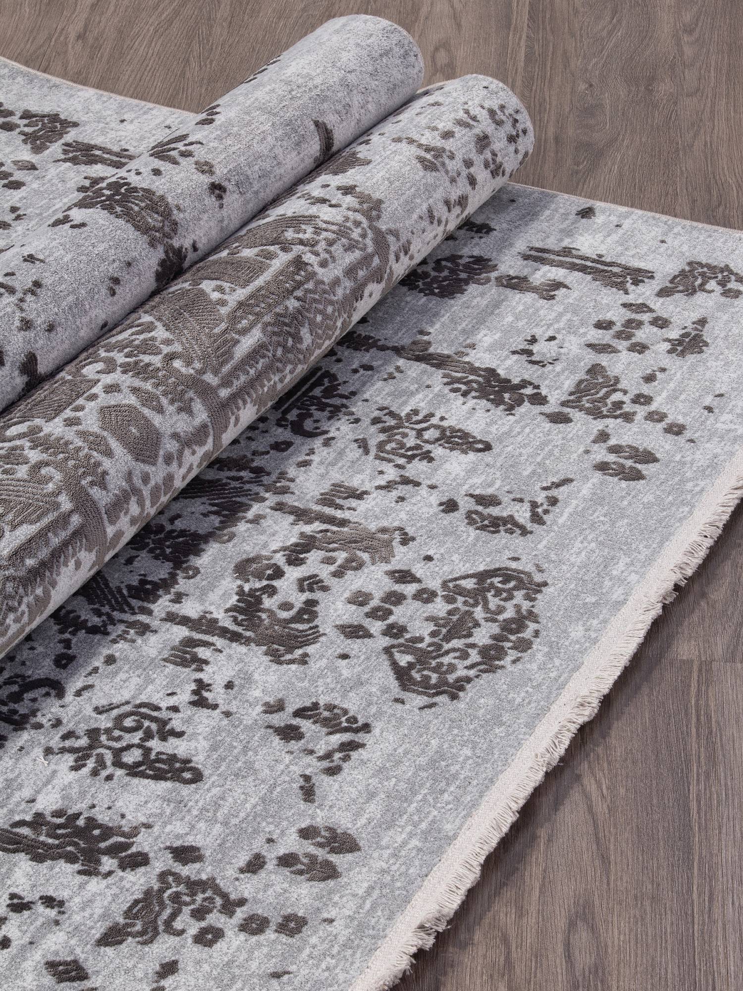 Модный серый ковер с стильным орнаментом станет отличным украшением для интерьера вашего дома.