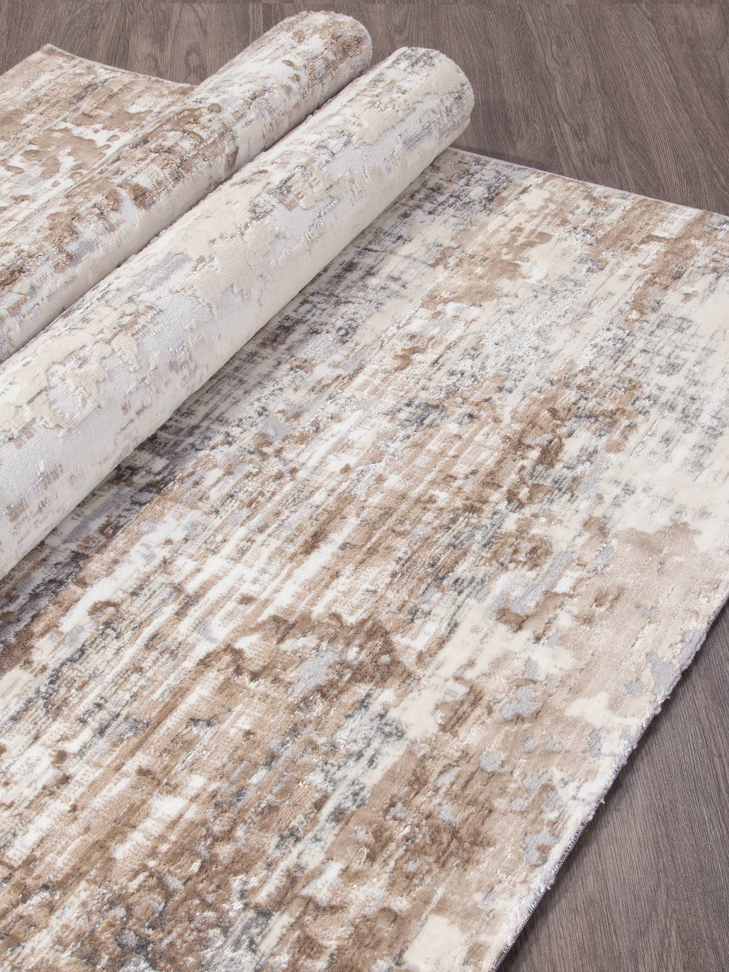 Интересный рисунок в абстрактном стиле и серо-бежевой расцветке. Отличное ковровое изделие для украшения гостиной или зала.