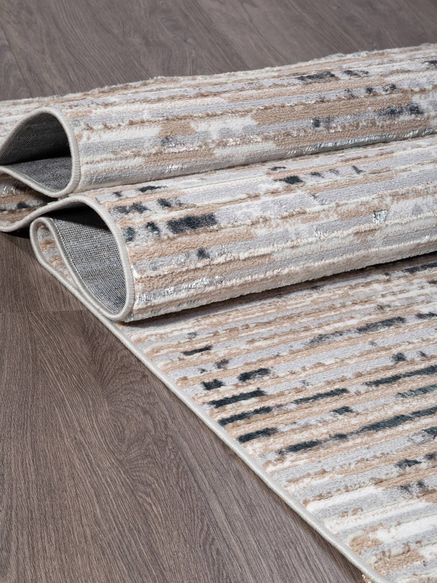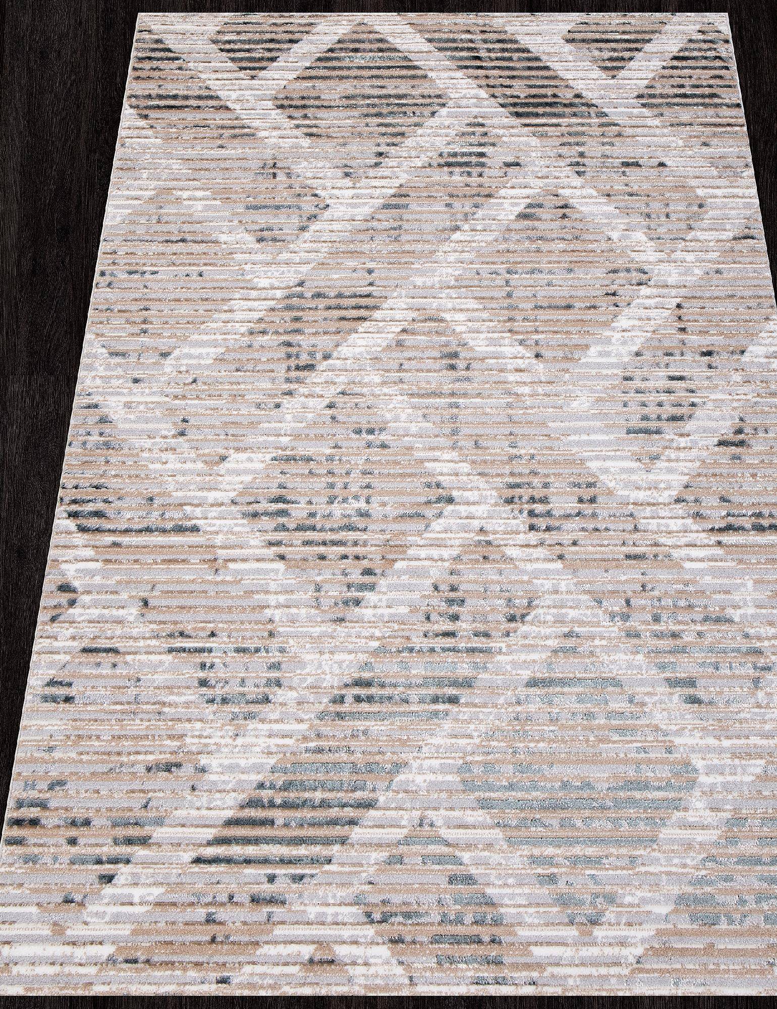Стильный, модный и современный рельефный ковер в нейтральной расцветке. Такое ковровое изделие будет хорошим дополнением к интерьеру гостиной, хала или спальни.