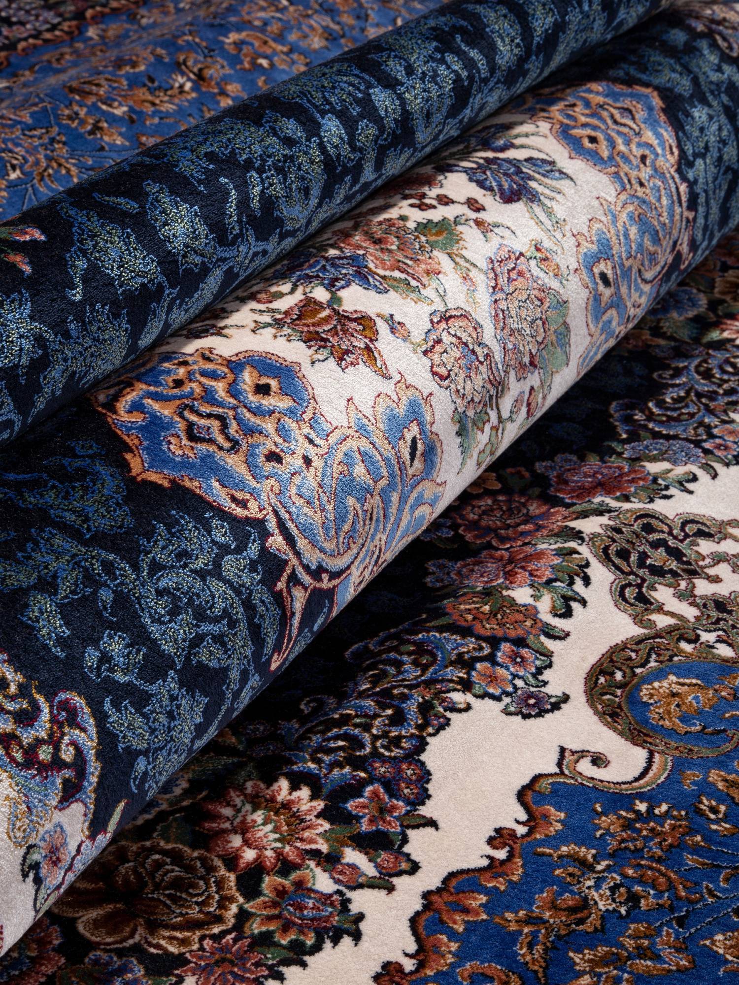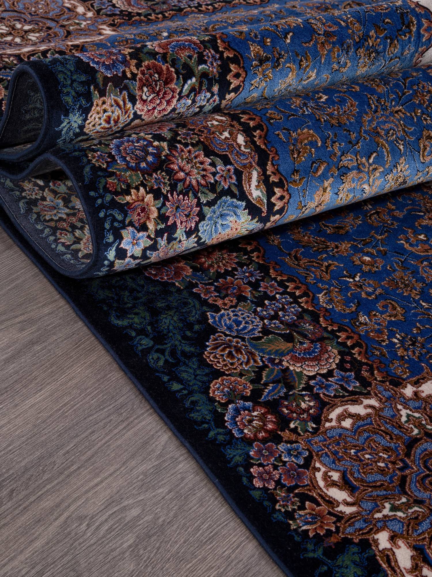 Так что если вам требуется стильное, простое в уходе и функциональное украшение интерьера, стоит обратить внимание на ковер QUM 633 NAVY из коллекции QUM. Страна производства - Иран, и это означает проверенное качество и модный актуальный дизайн, в котором гармонично сочетаются форма (прямоугольный) и рисунок (классический) коврового изделия.