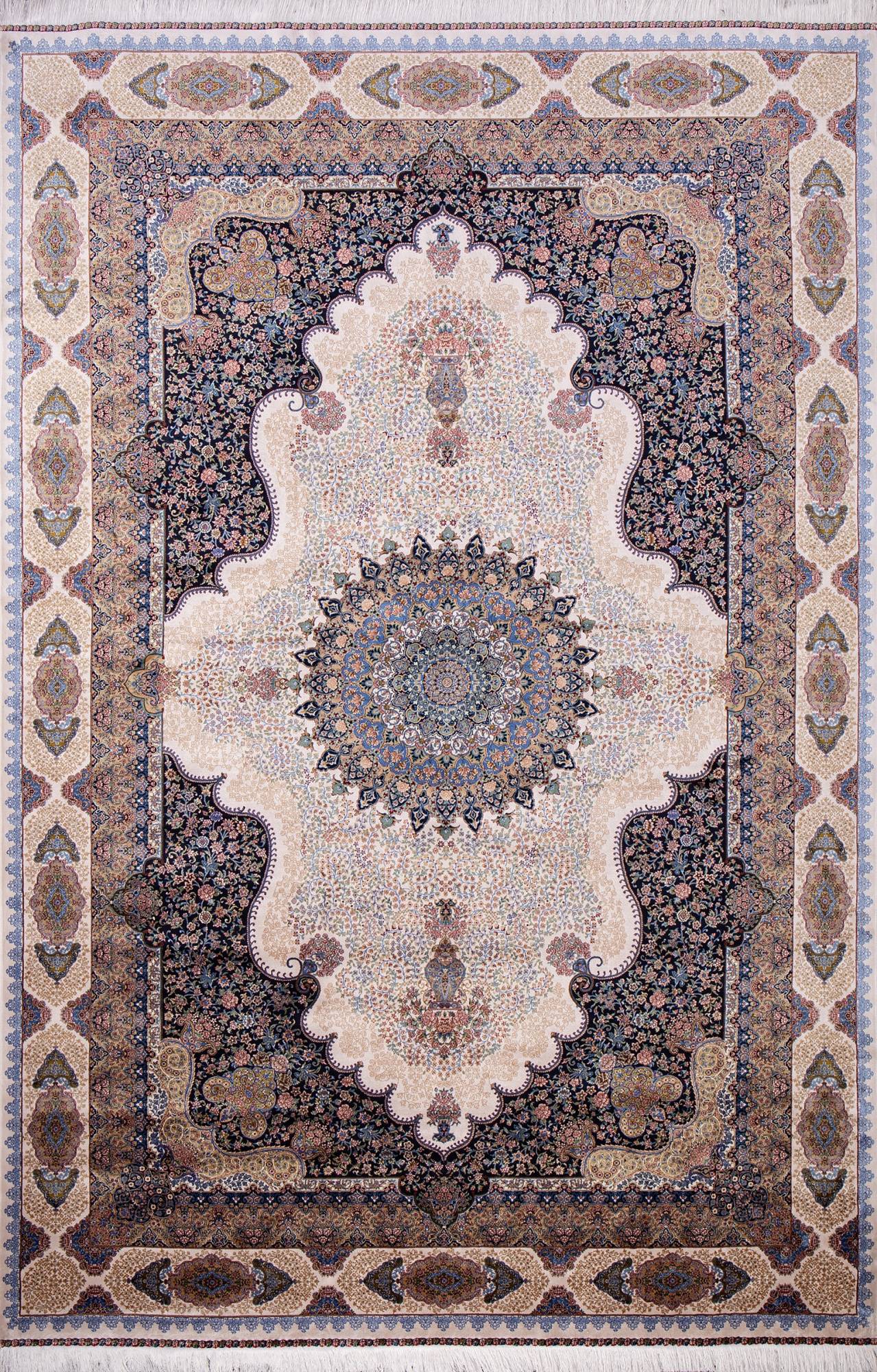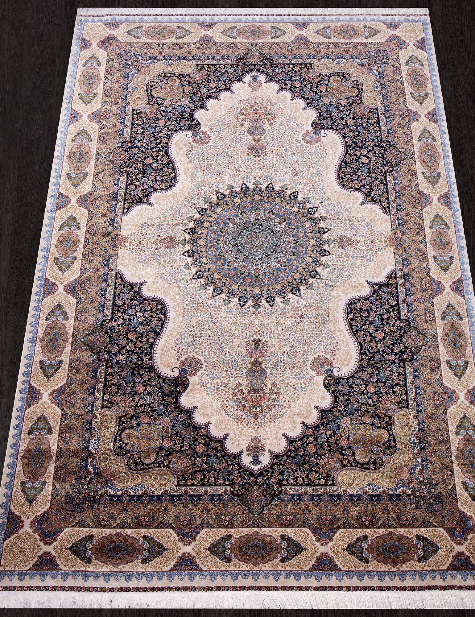 Стильный и приятный ковер в классическом дизайне. Материал изготовления - бамбуковый шелк что делает этот ковер красивым и элегантным украшением.