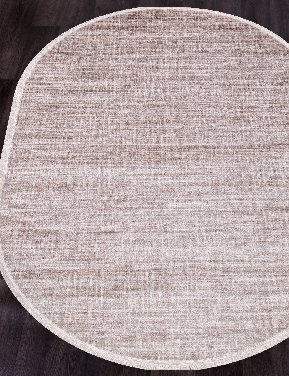 Нейтральный акриловый ковер в серо-коричневой расцветке и овальной форме. Такой ковер станет хорошим украшением для любого современного интерьера.