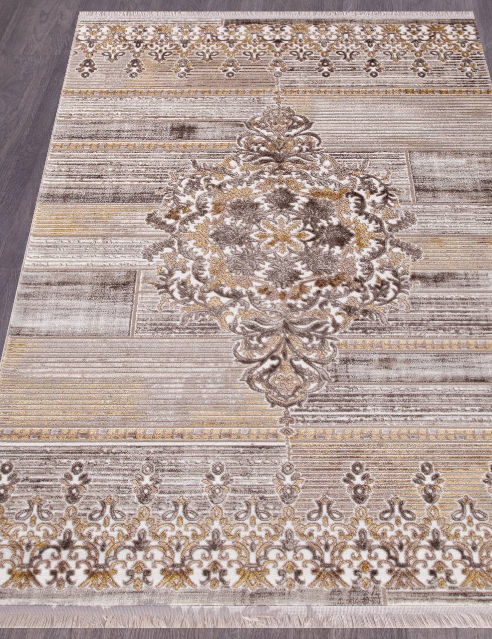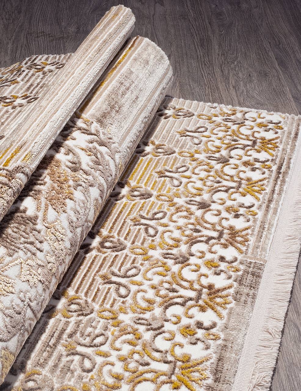 Так что если вам нужно стильное, практичное и функциональное украшение интерьера, стоит выбрать ковер REGINA O0277 075 ЗОЛОТО из коллекции REGINA. Страна компании-производителя - Турция, и это означает прекрасное качество изготовления и стильный современный дизайн, в котором гармонично сочетаются форма (прямоугольный) и рисунок коврового изделия.
