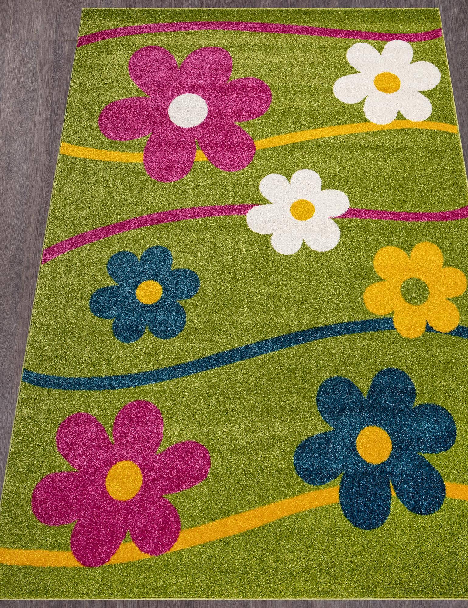 Яркая и позитивная цветовая палитра и оригинальный рисунок в виде цветов позволяют этому ковру стать отличным дополнением к любому современному интерьеру.