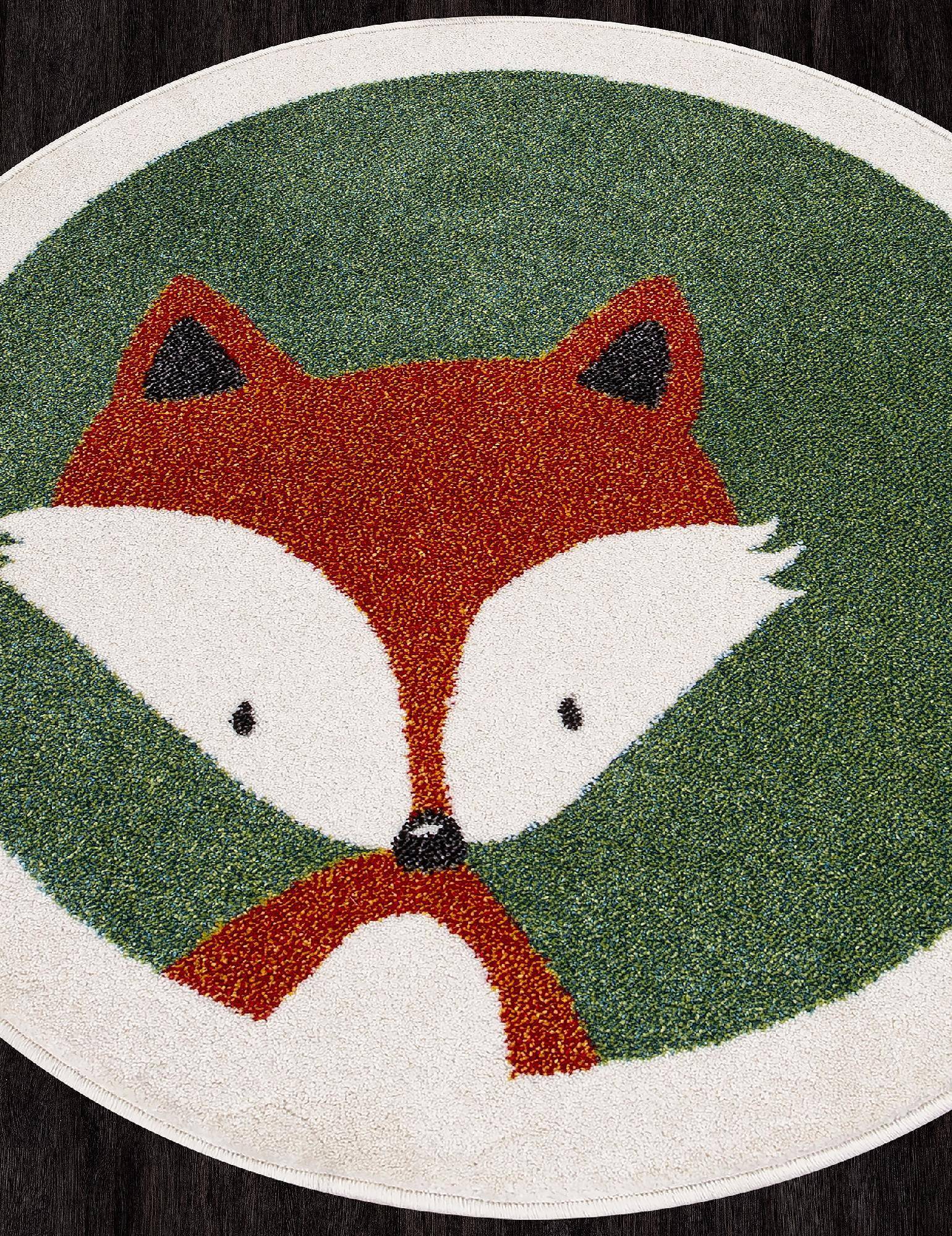 Оригинальный детский ковер с лисенком. Это круглое ковровое изделие станет хорошим утеплением места для игр в комнате вашего ребенка.