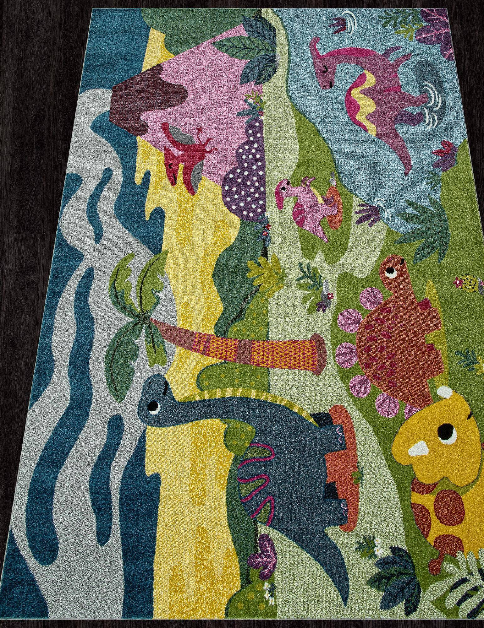 Оригинальный детский ковер с динозаврами. отлично подойдет в любую детскую комнату.