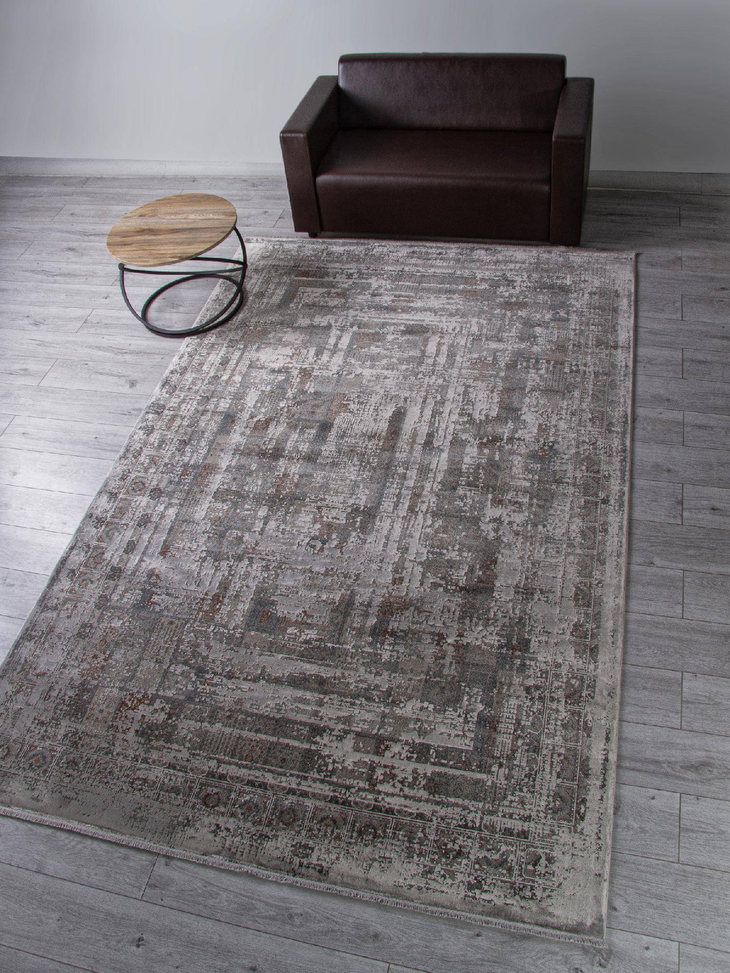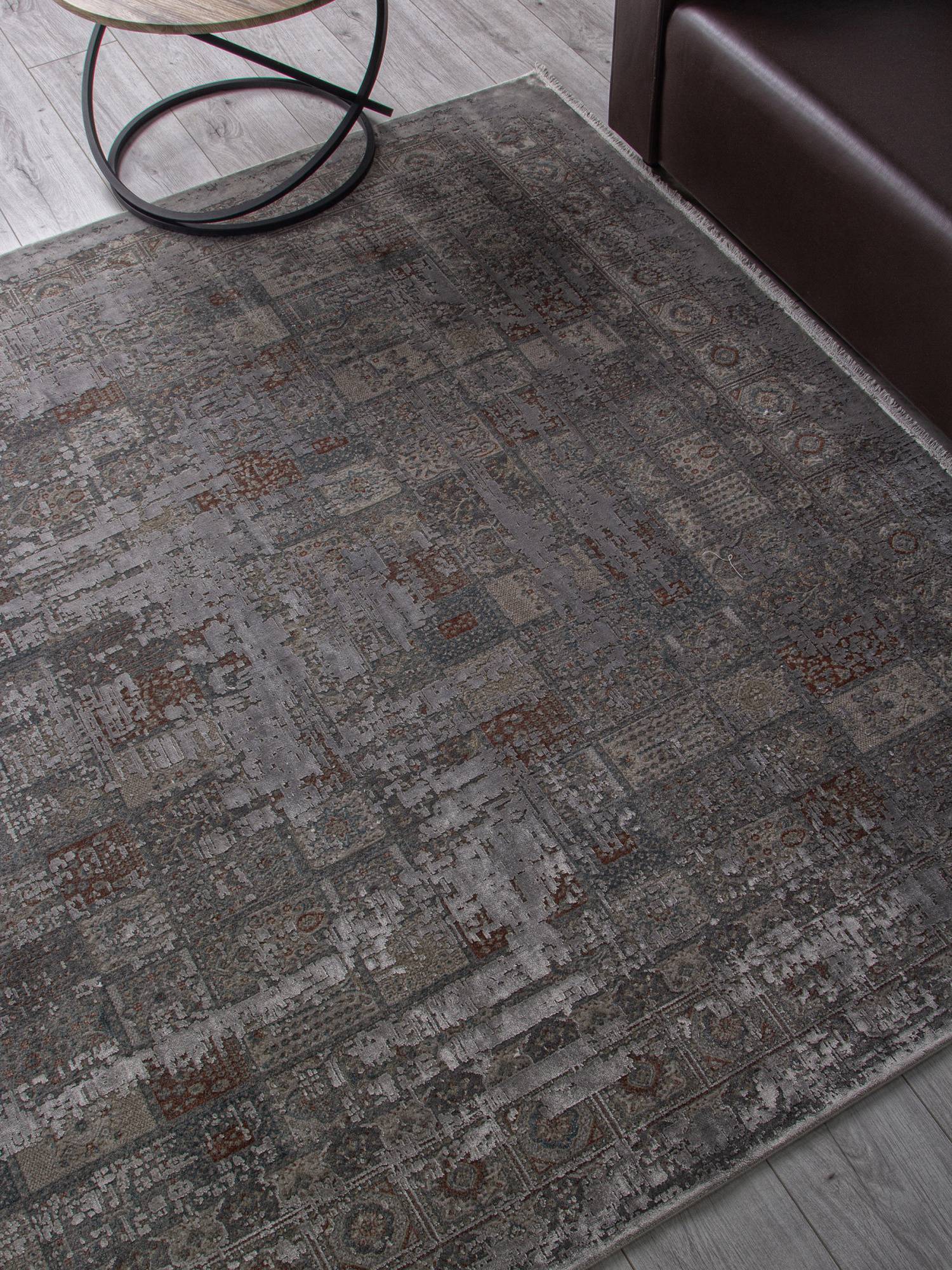 Интересный ковер с гранжевым рисунком в серо-бежевых тонах. Этот ковер станет отличным украшением для интерьера в стиле лофт.