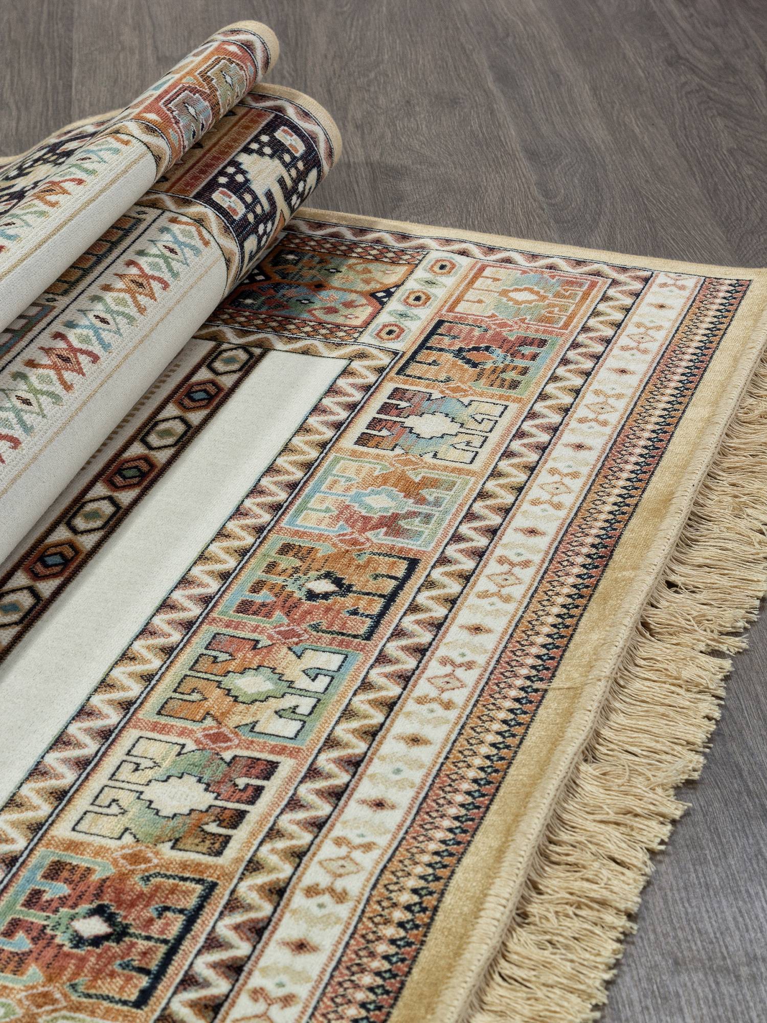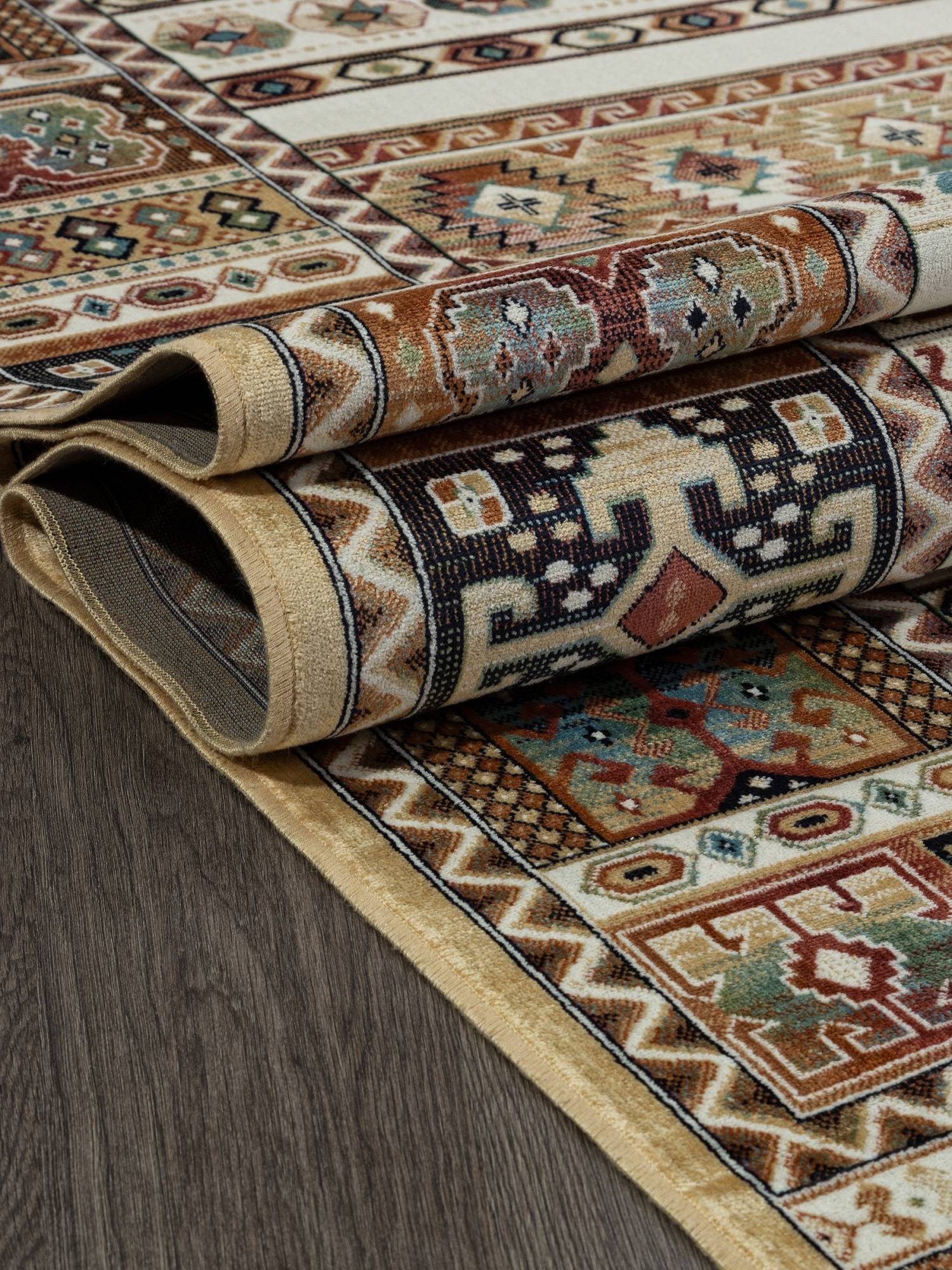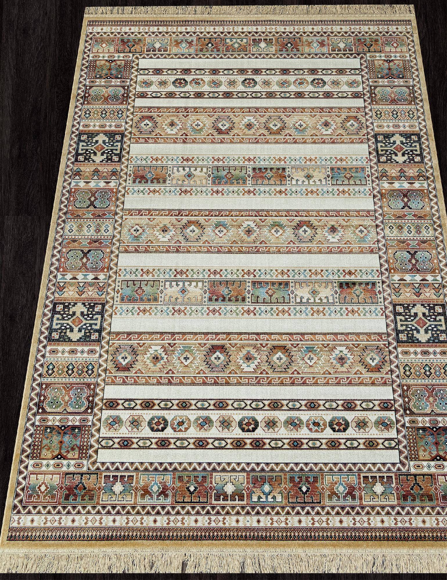 Оригинальный ковер в стиле этно. Лучше всего будет смотреться в гостиной, зале или столовой.