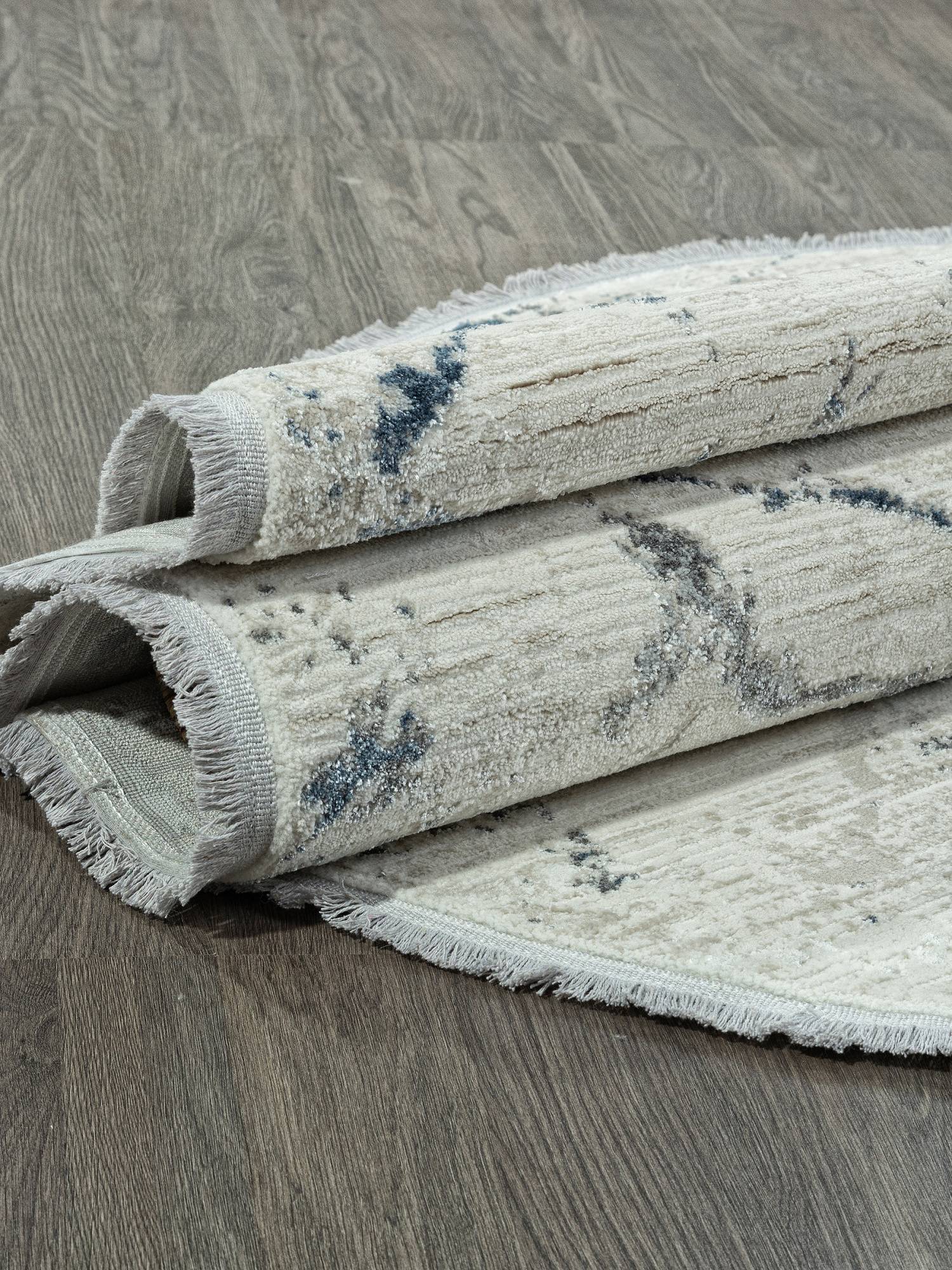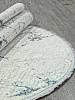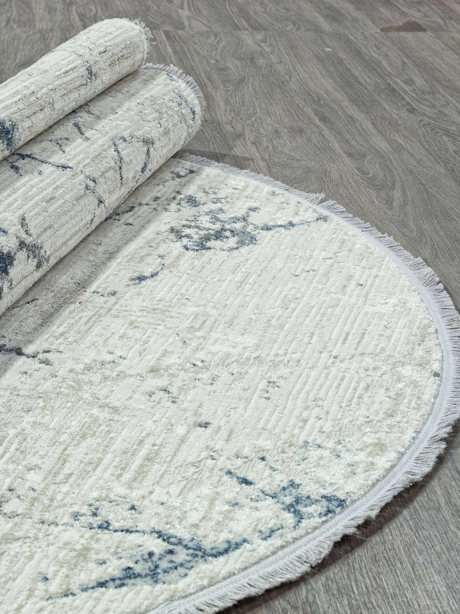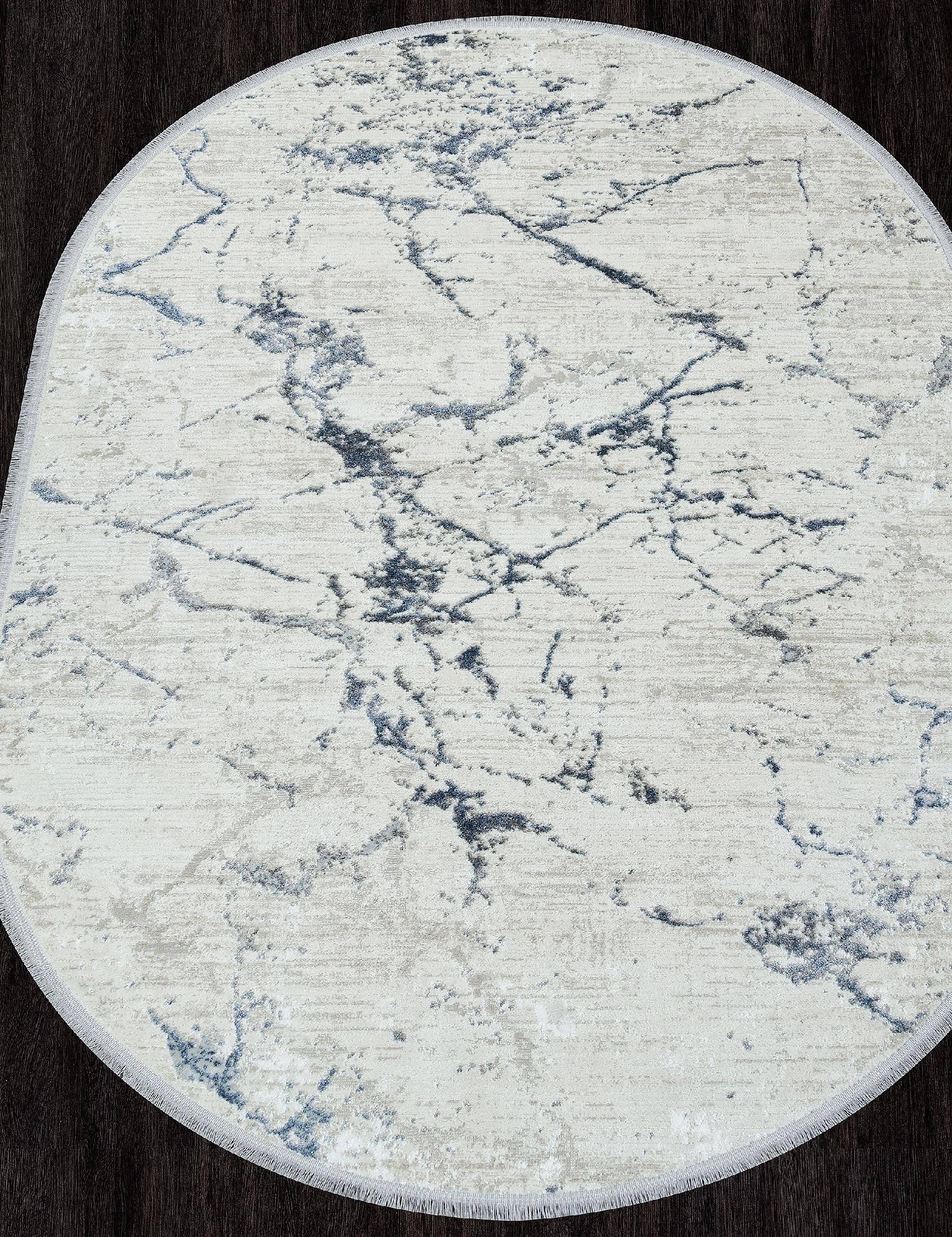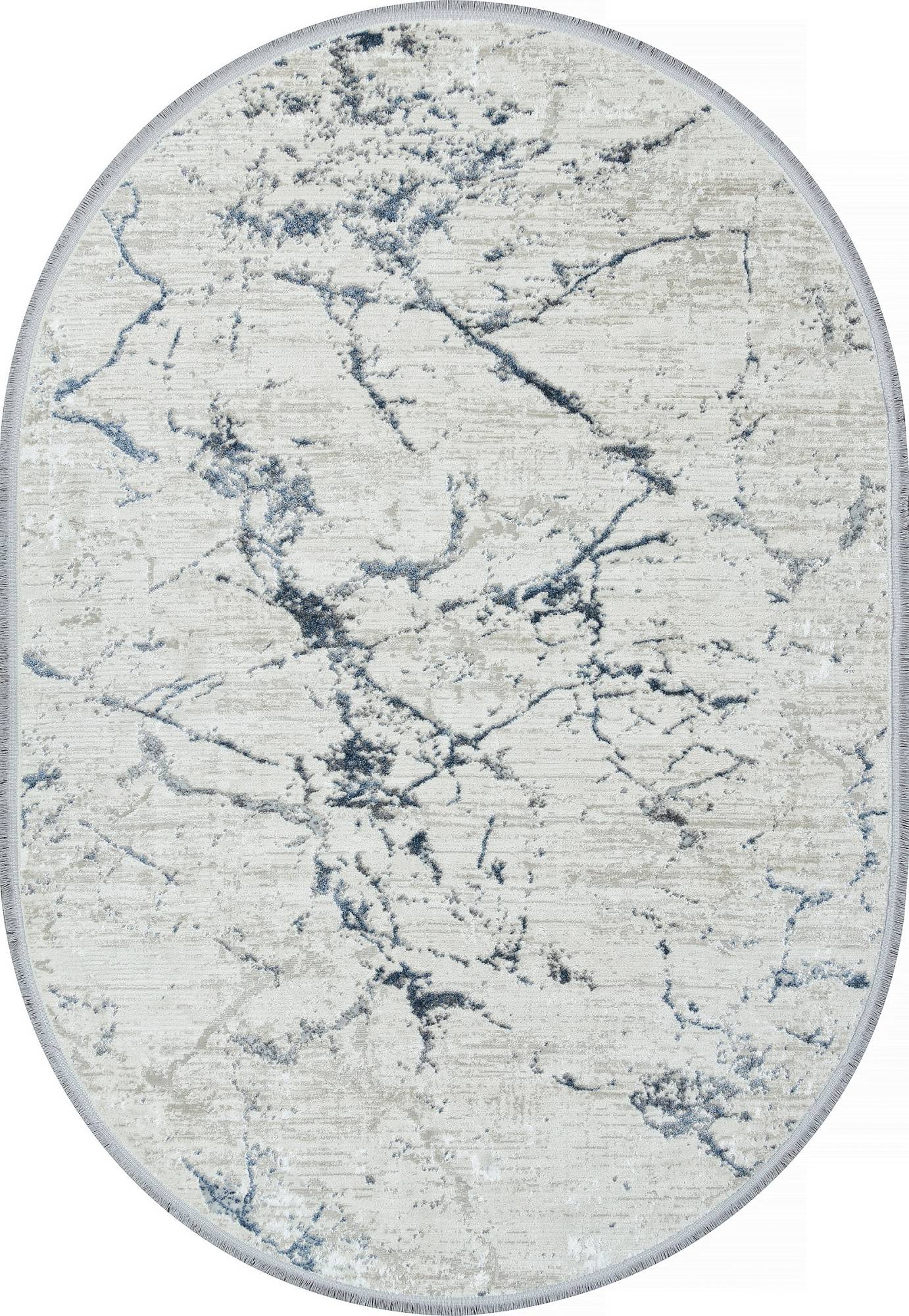 Оригинальная кремово-синяя расцветка и абстрактный рисунок этого овального ковра позволяют ему украсить любой современный интерьер.