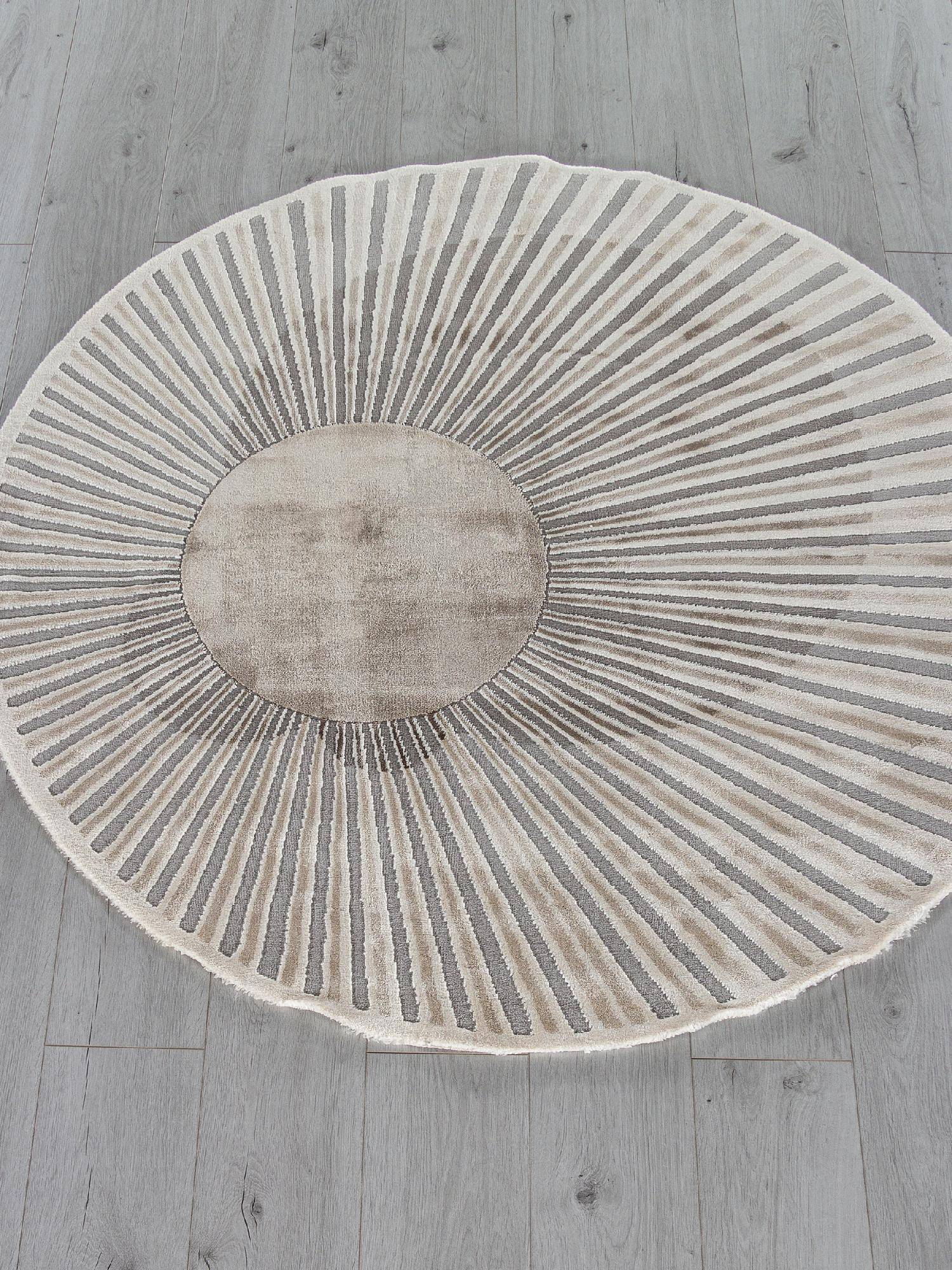 Круглый ковер в оригинальном дизайне с использованием геометрических элементов. отлично подойдет для гостиной или зала.