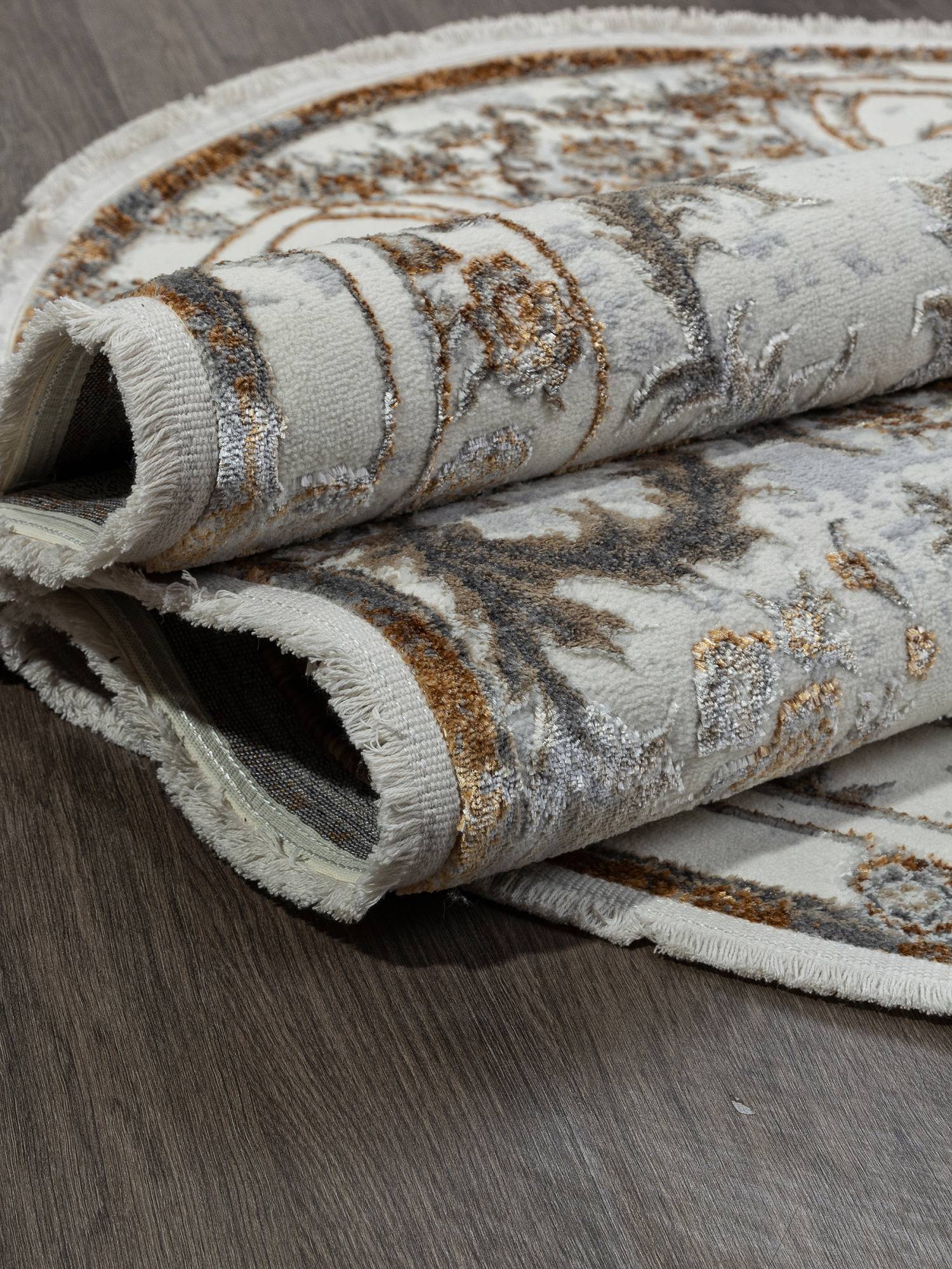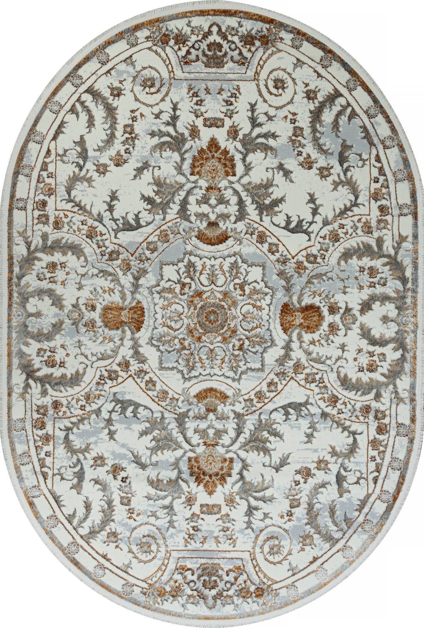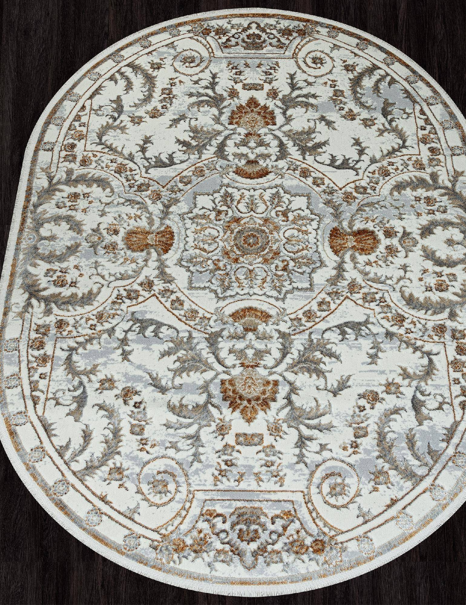 Детализированный орнамент этого овального ковра отлично сочетается с его светлой расцветкой что позволяет ему дополнять любой современный интерьер.