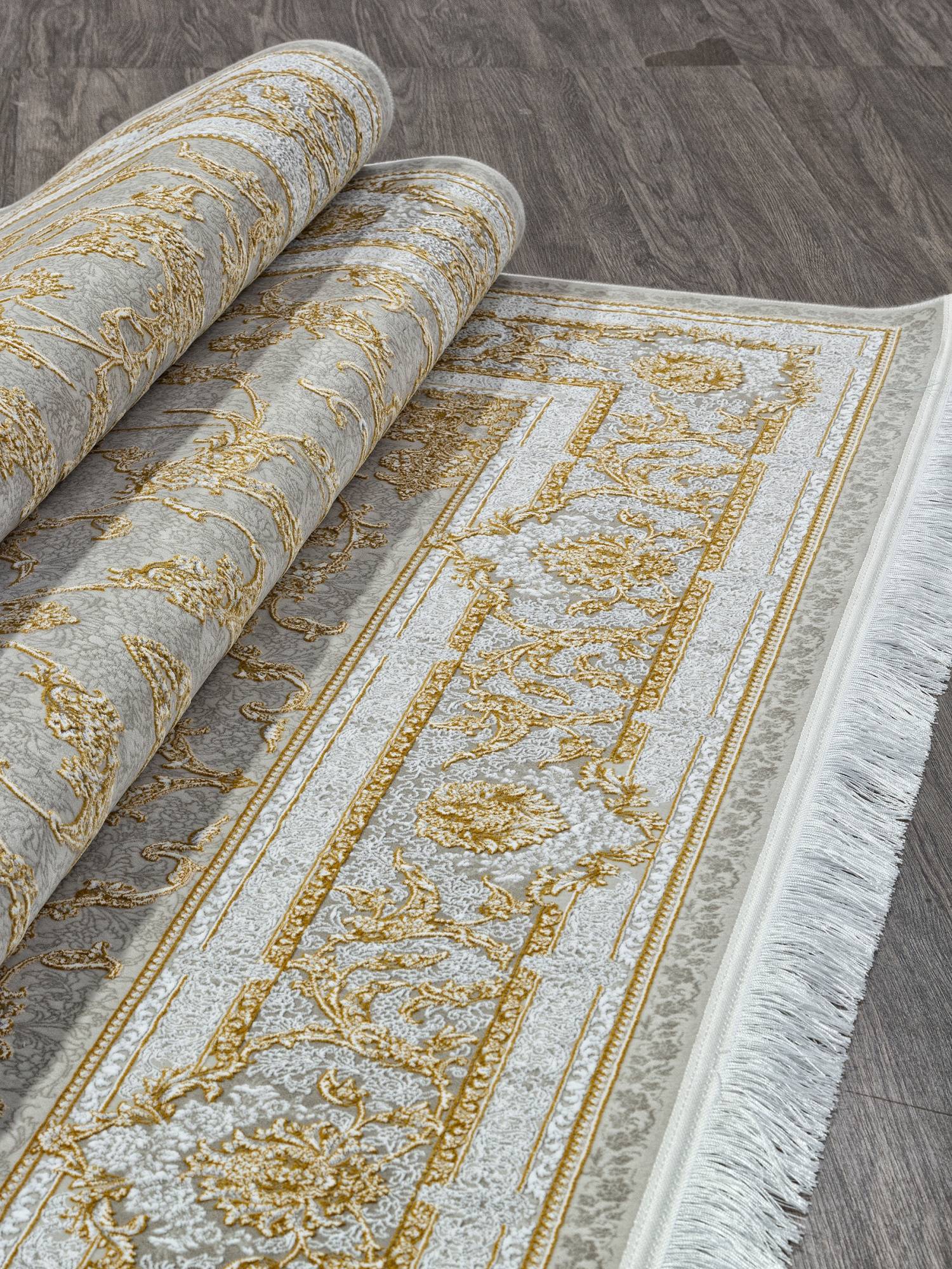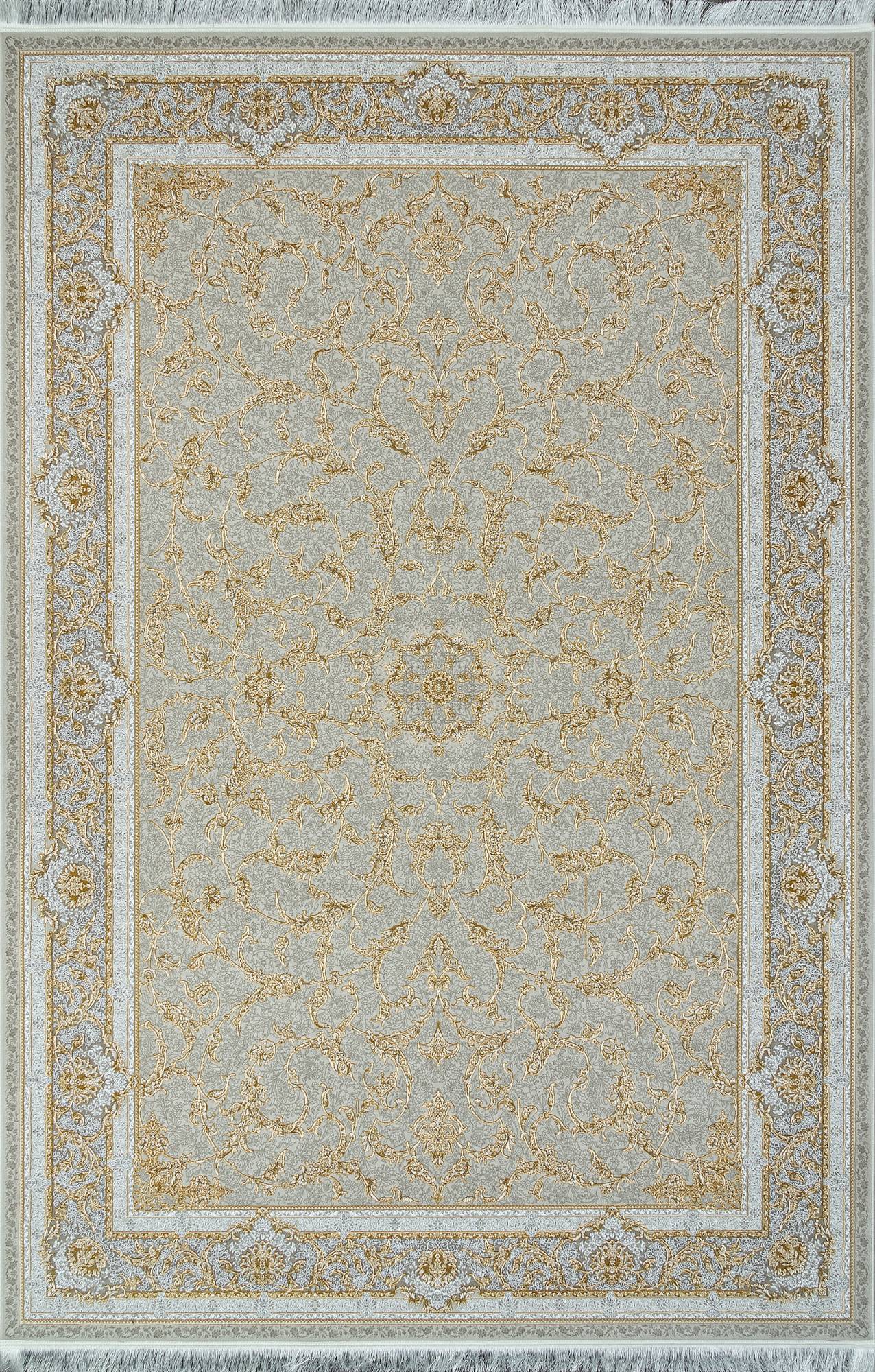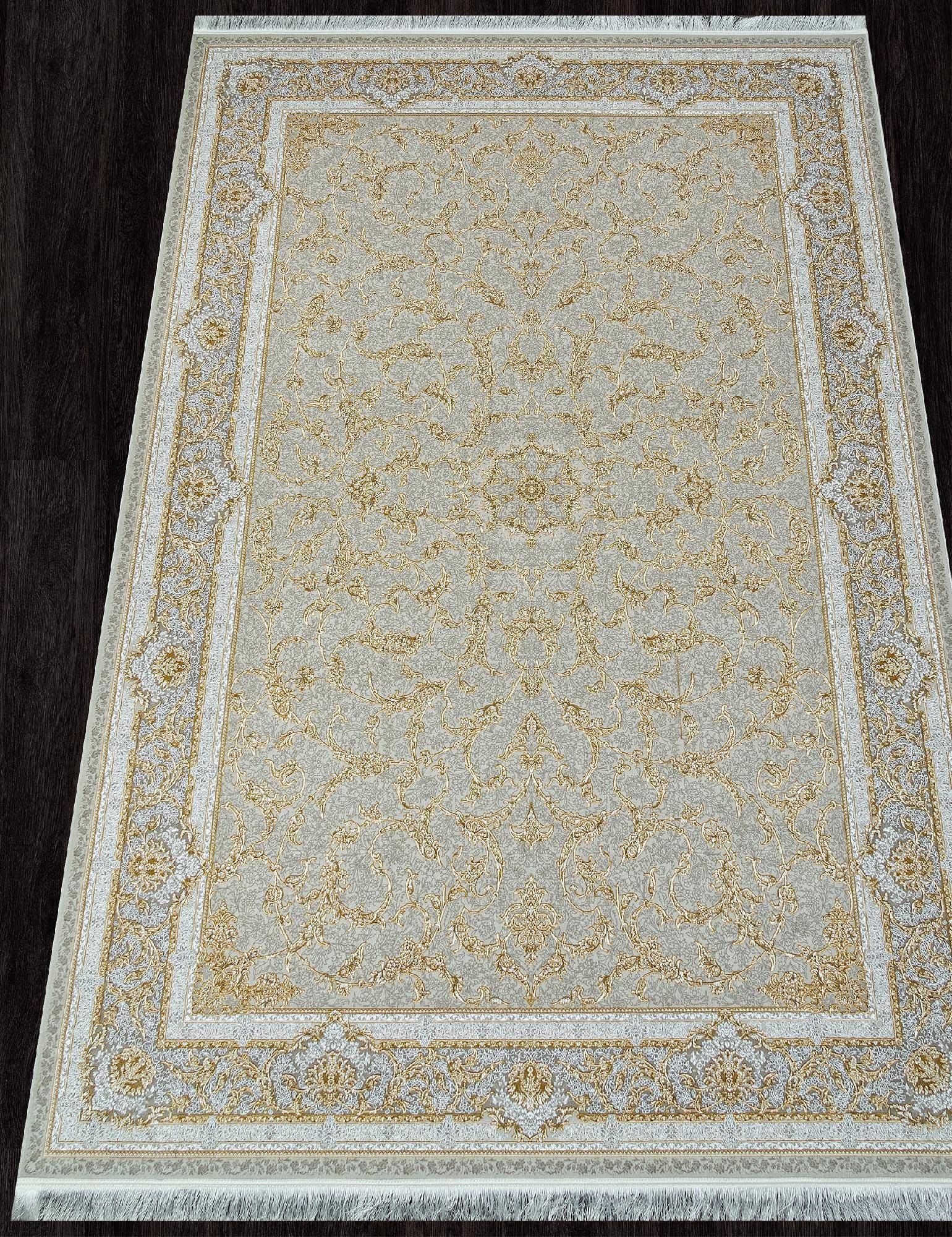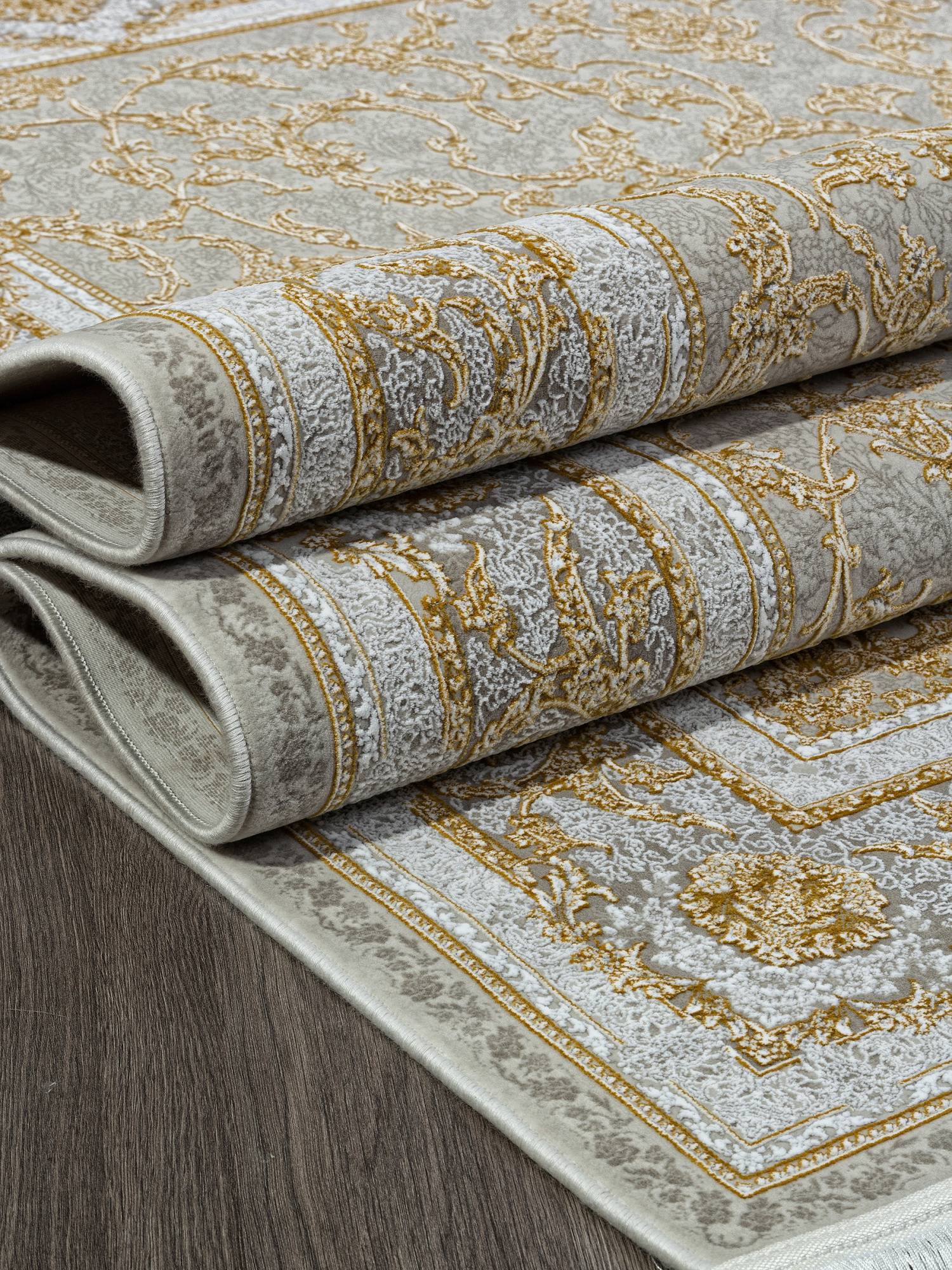 Светлый ковер в серо-бежевой расцветке и причудливый, детализированный орнамент позволяют этому ковру стать хорошим дополнением для интерьера вашего дома.