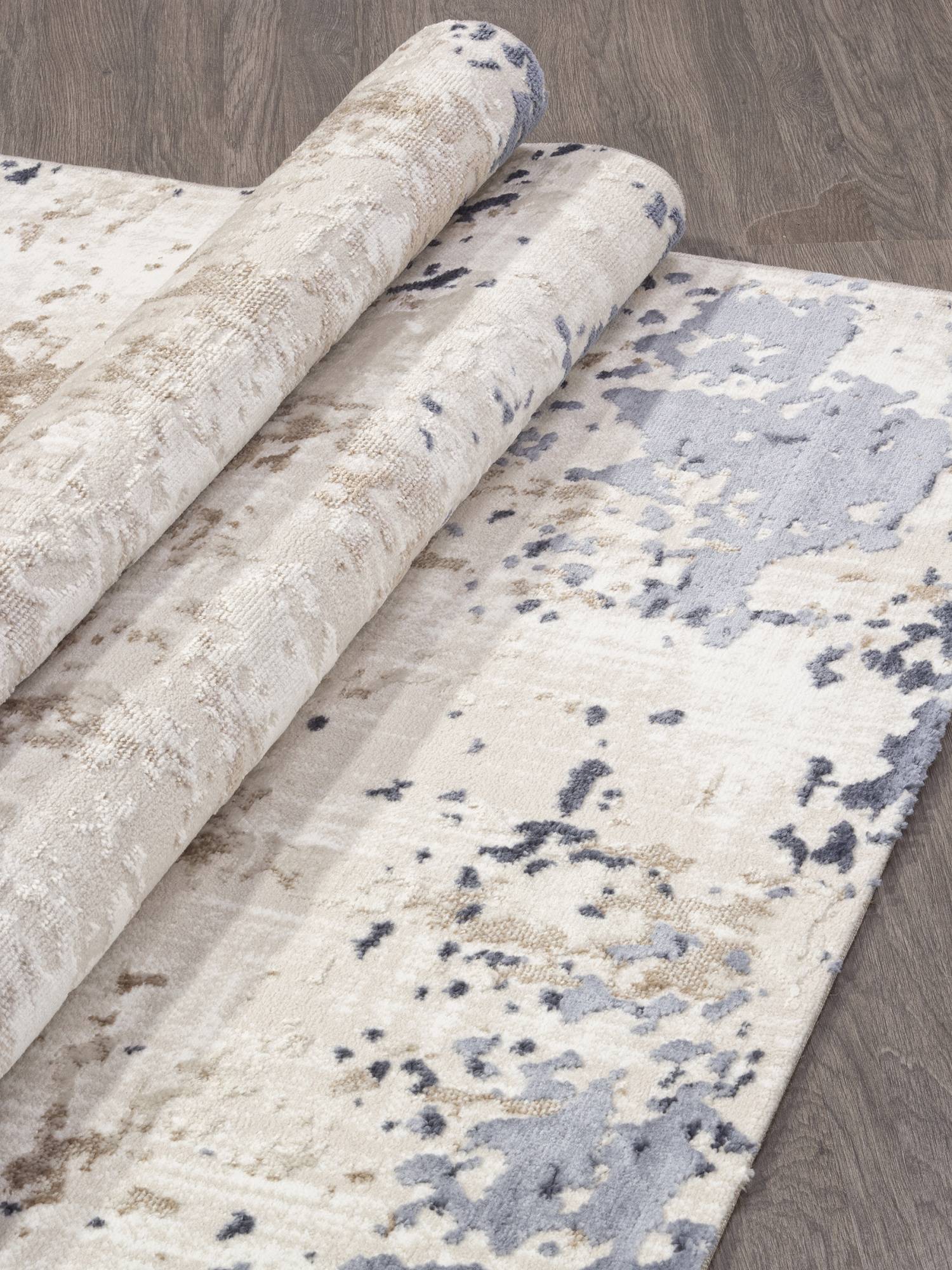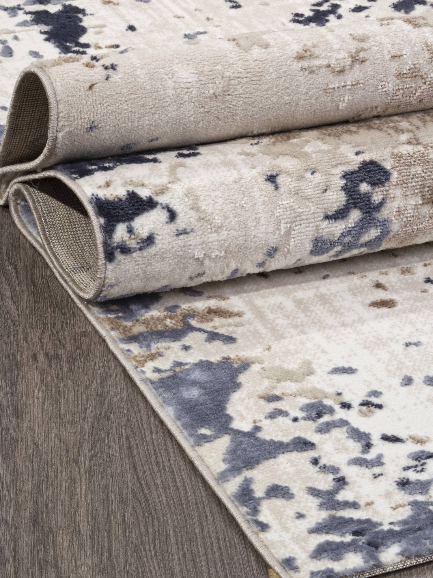 Кремово-синяя расцветка и оригинальной дизайн позволяют этому ковровому изделию стать оригинальным дополнением к любому современному интерьеру.