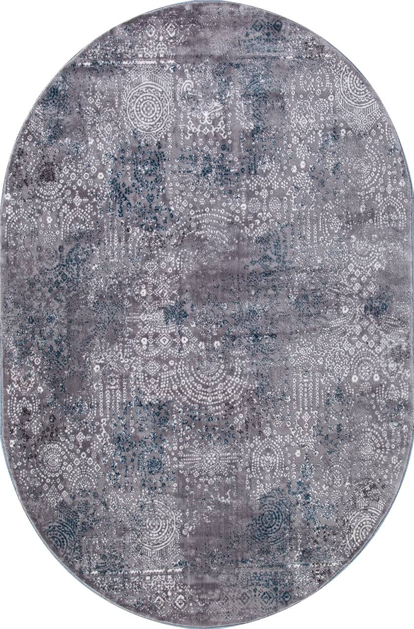 Серо-синий овальный ковер который станет шикарным украшением для гостиной, зала или спальни.