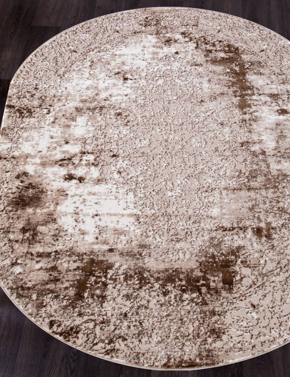 Овальный ковер в бежевой и коричневой расцветке станет хорошим украшением для любого современного ин...