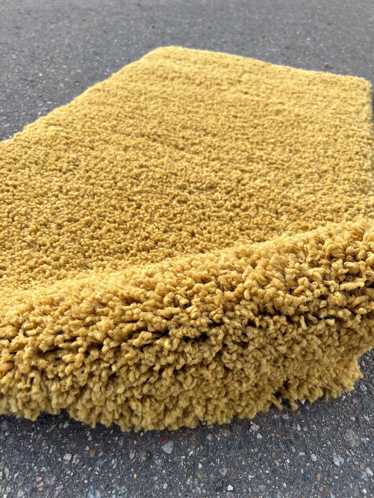 Приятный, однотонный шегги ковер в желтом тоне. Такое ковровое изделие украсит и сделает уютным любой интерьер.