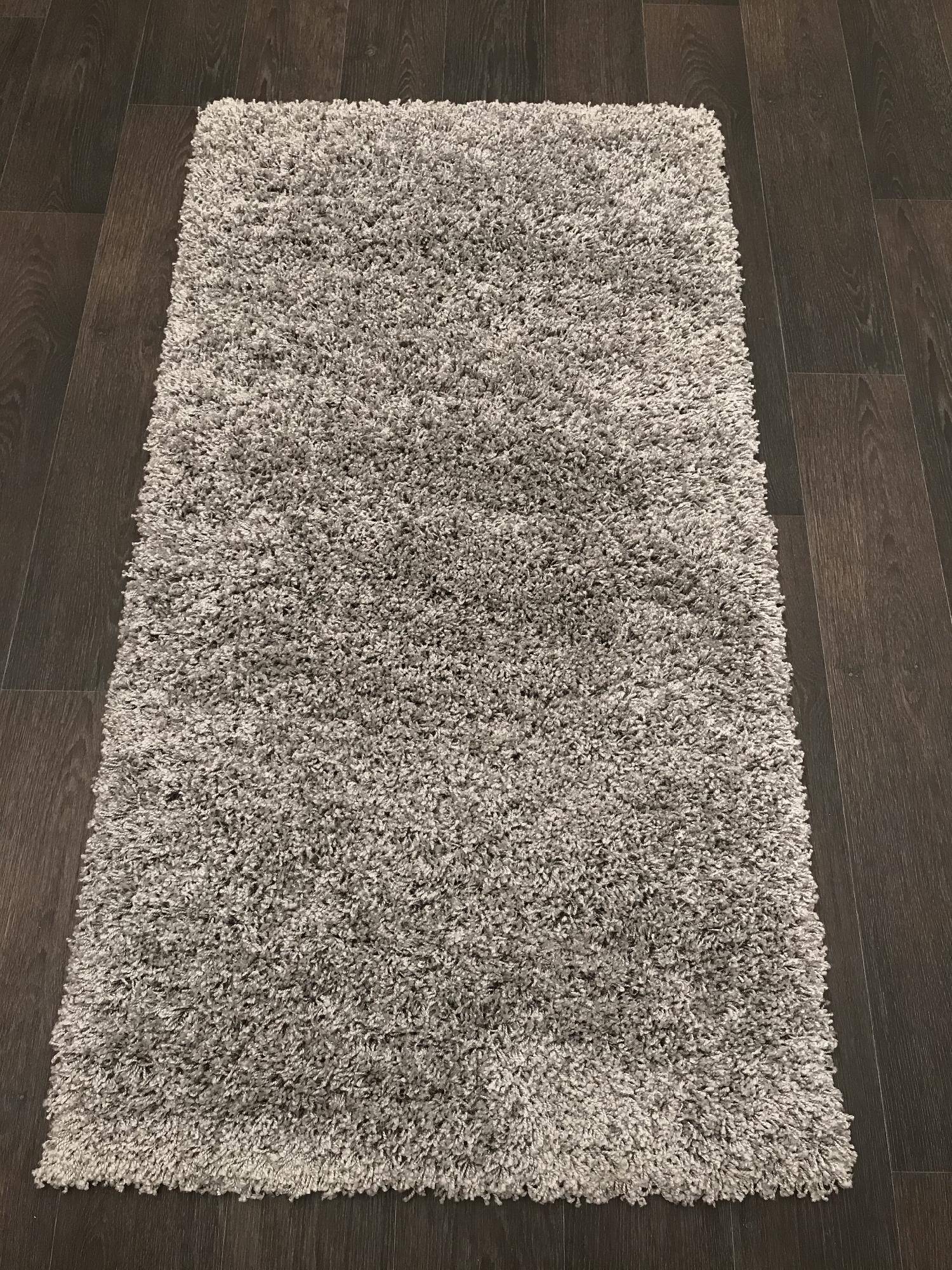 Серый, однотонный ковер с длинным ворсом. Отлично подойдет для спальни или гостиной.