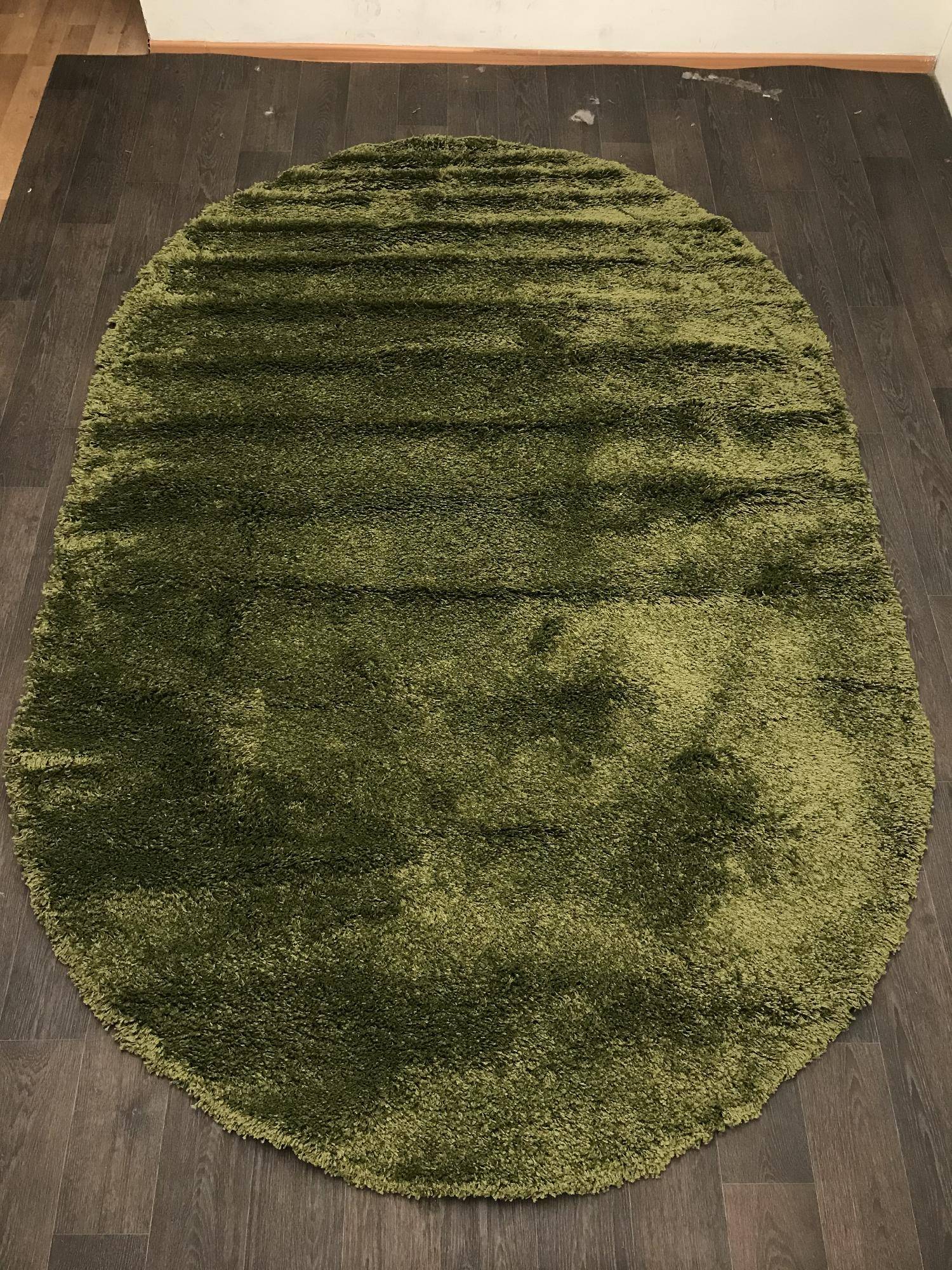 Интересный шегги-ковер в зеленой расцветке и овальной форме. Приятный и мягкий ворс помогает сделать уютным любой интерьер.