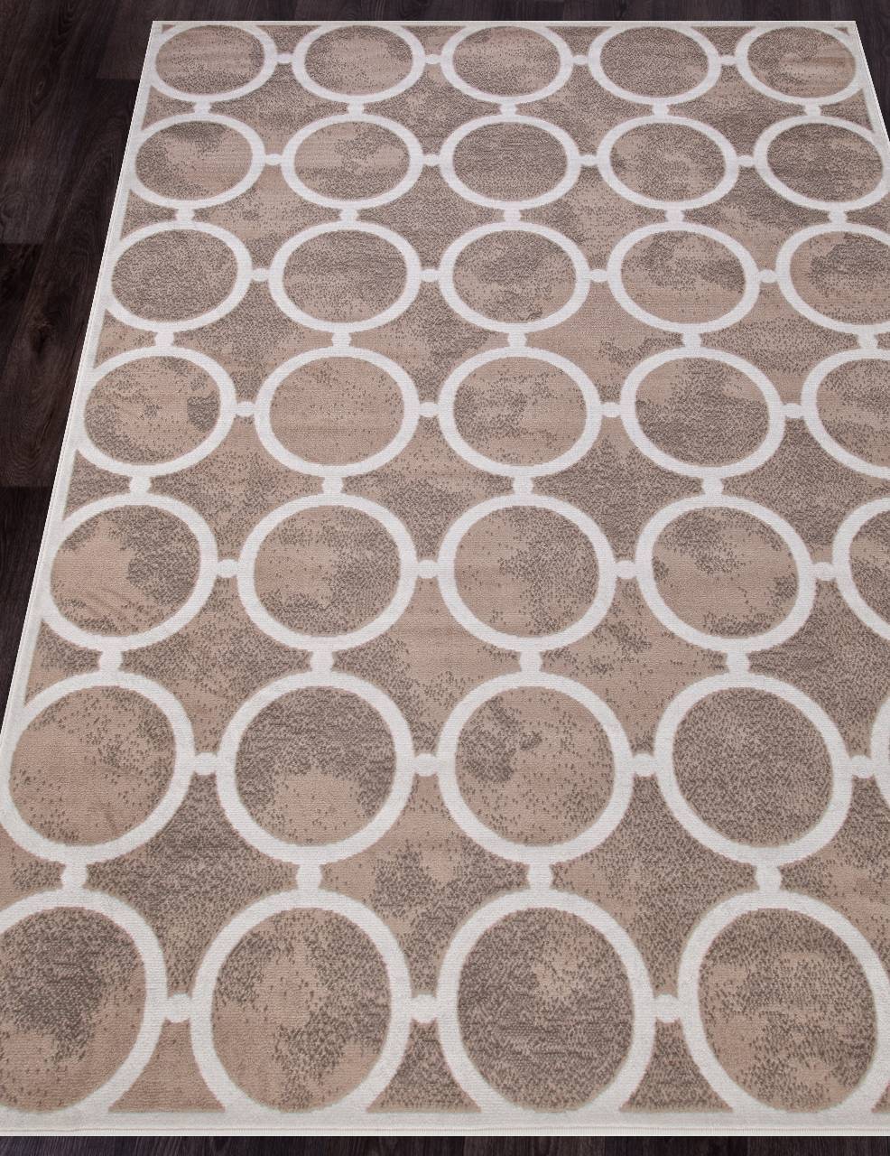 Недорогой, но стильный и качественный ковер в приятной бежевой расцветке с интересным геометрическим орнаментом. Такое ковровое изделие станет хорошим дополнением к интерьеру зала или гостиной.